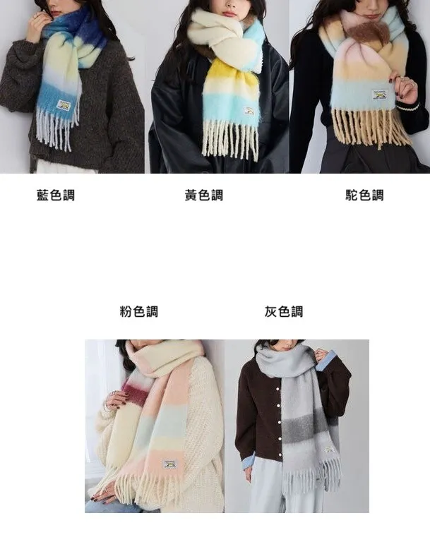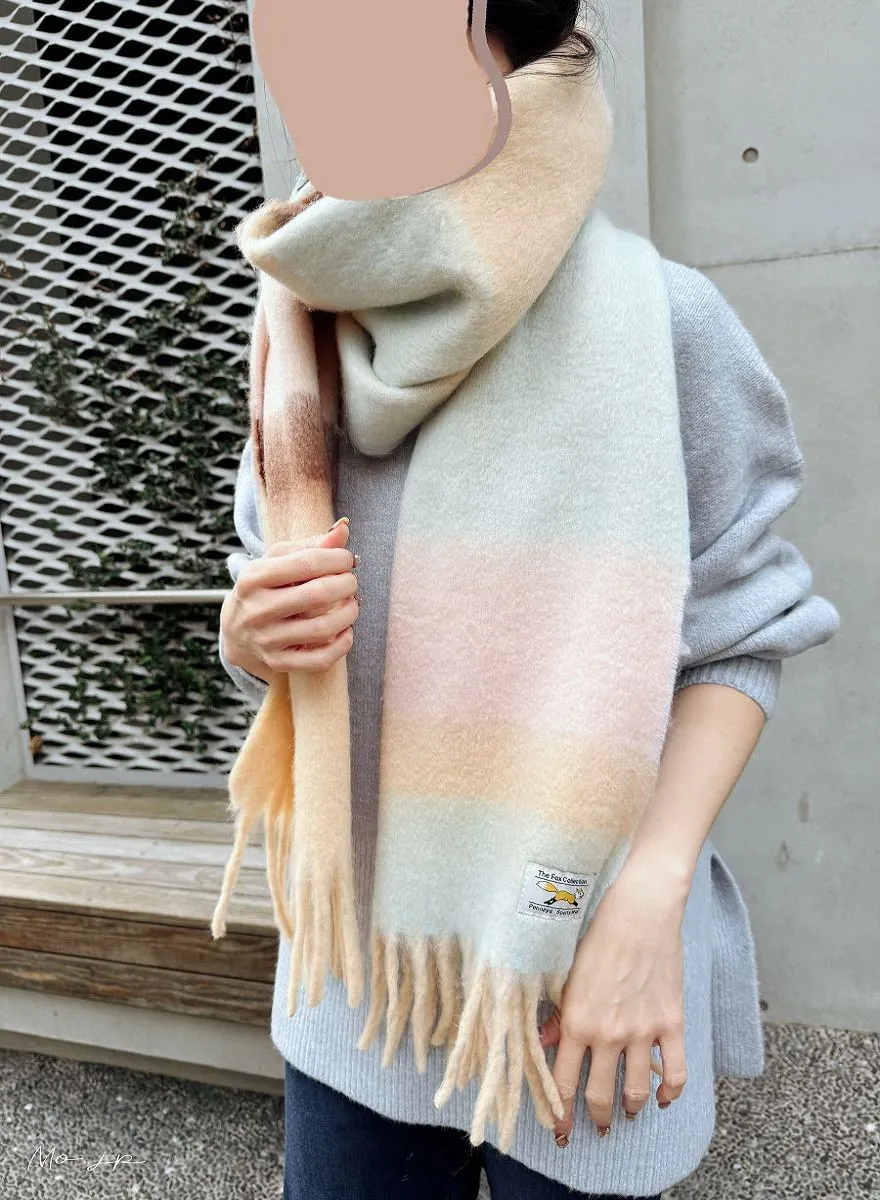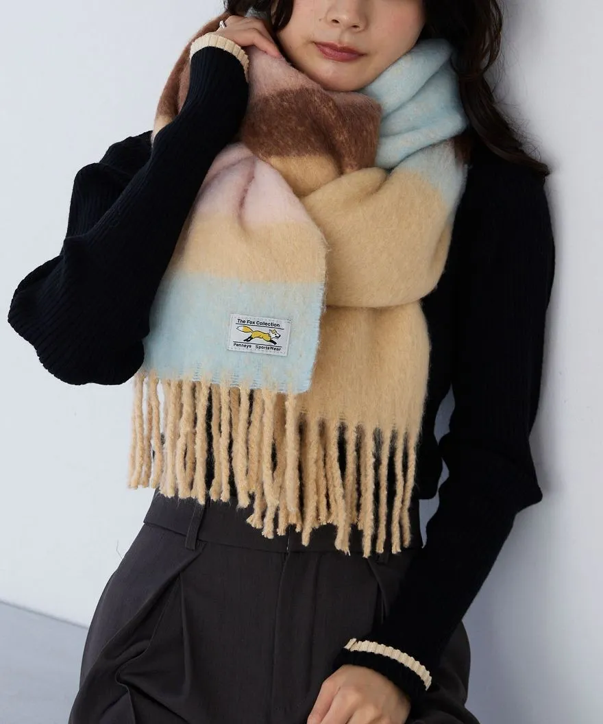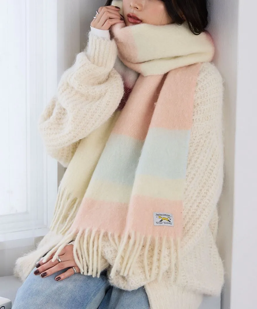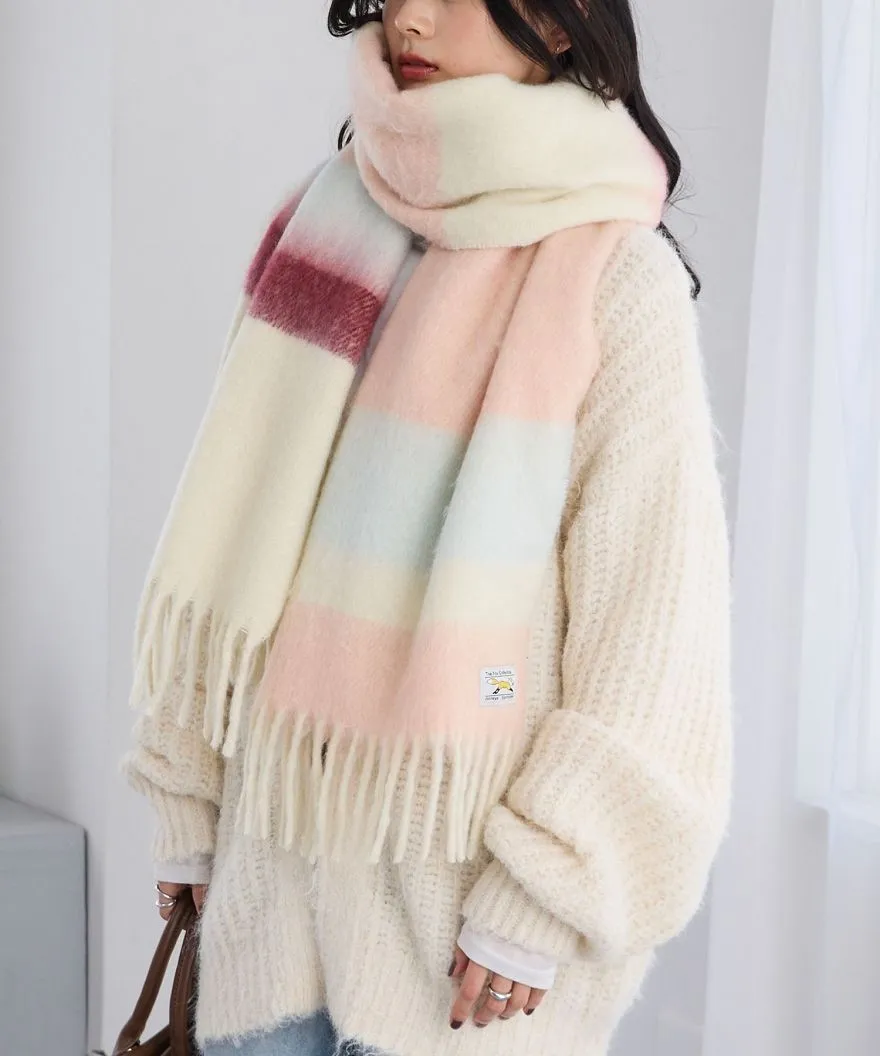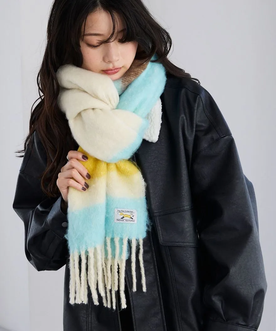 1212限定-品牌聯名PENNEYS軟綿綿溫暖撞色寬條紋圍巾