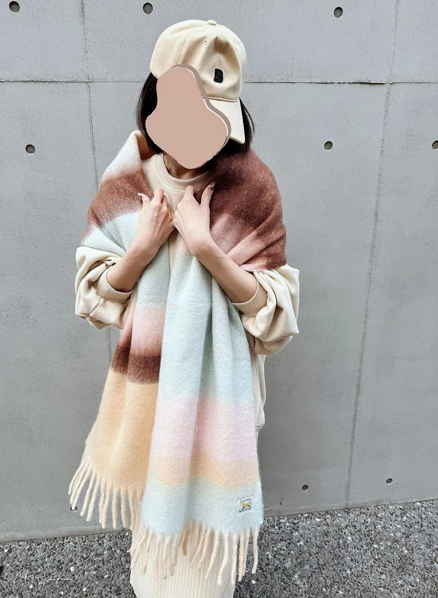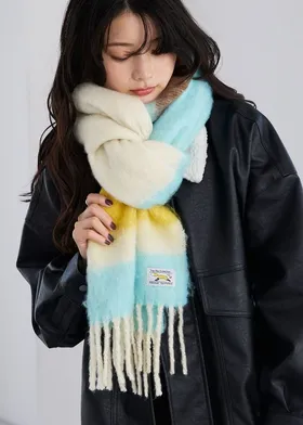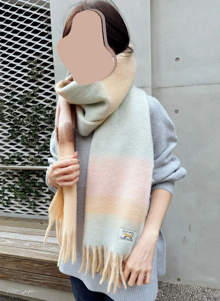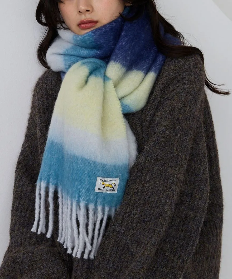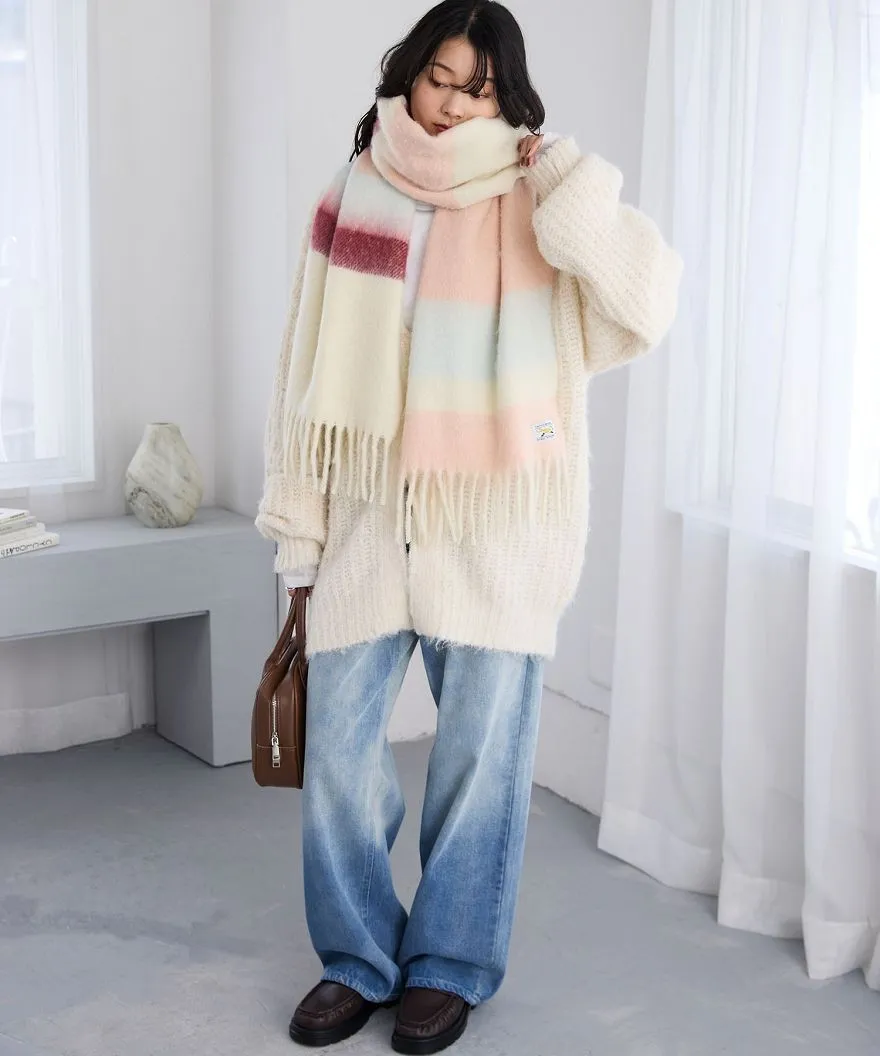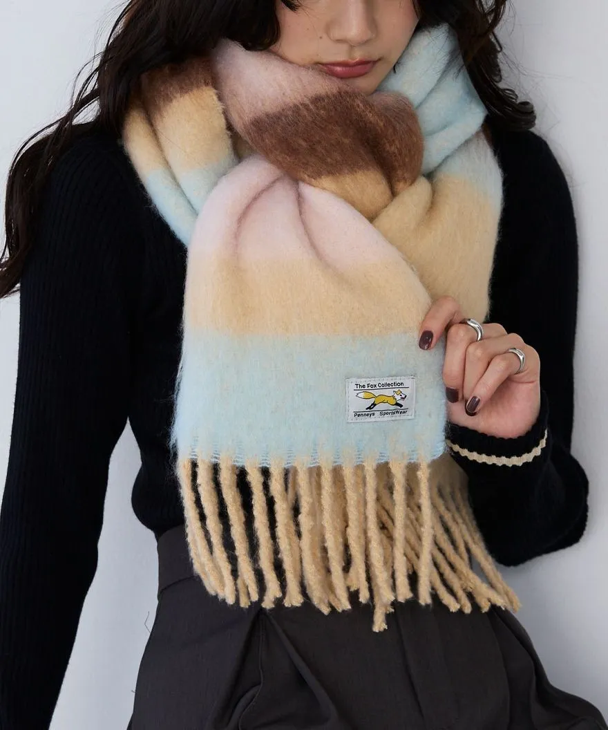 1212限定-品牌聯名PENNEYS軟綿綿溫暖撞色寬條紋圍巾