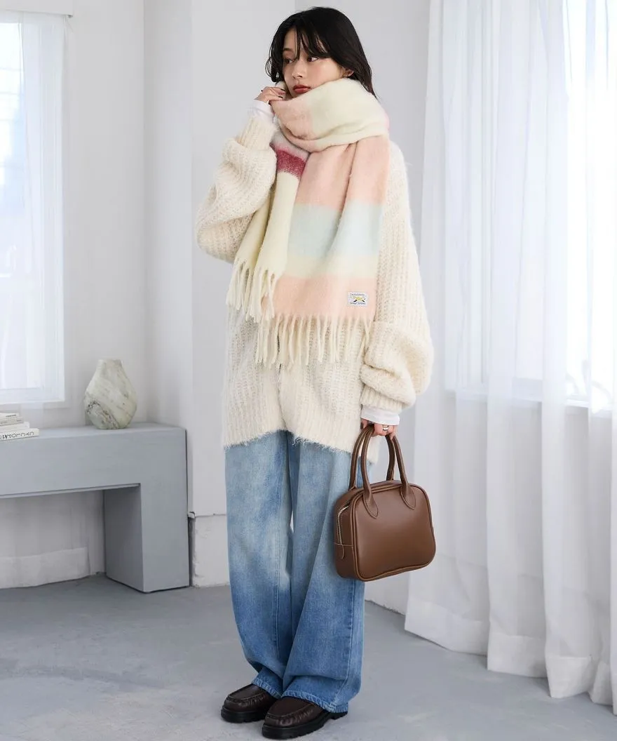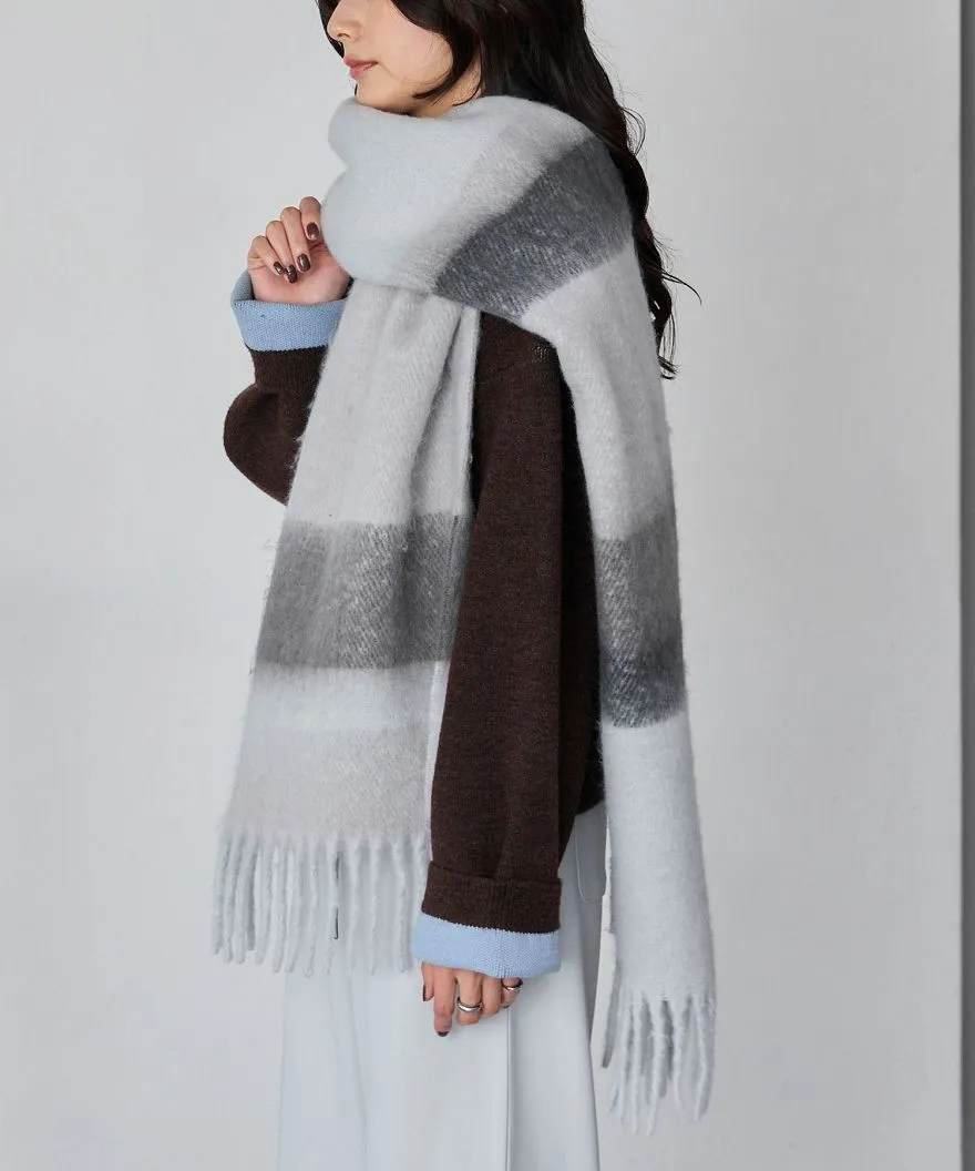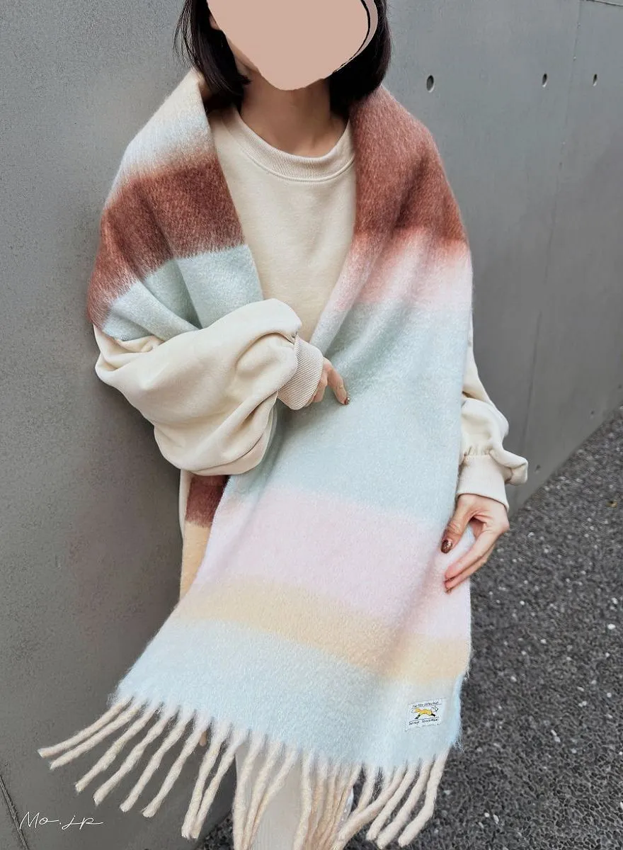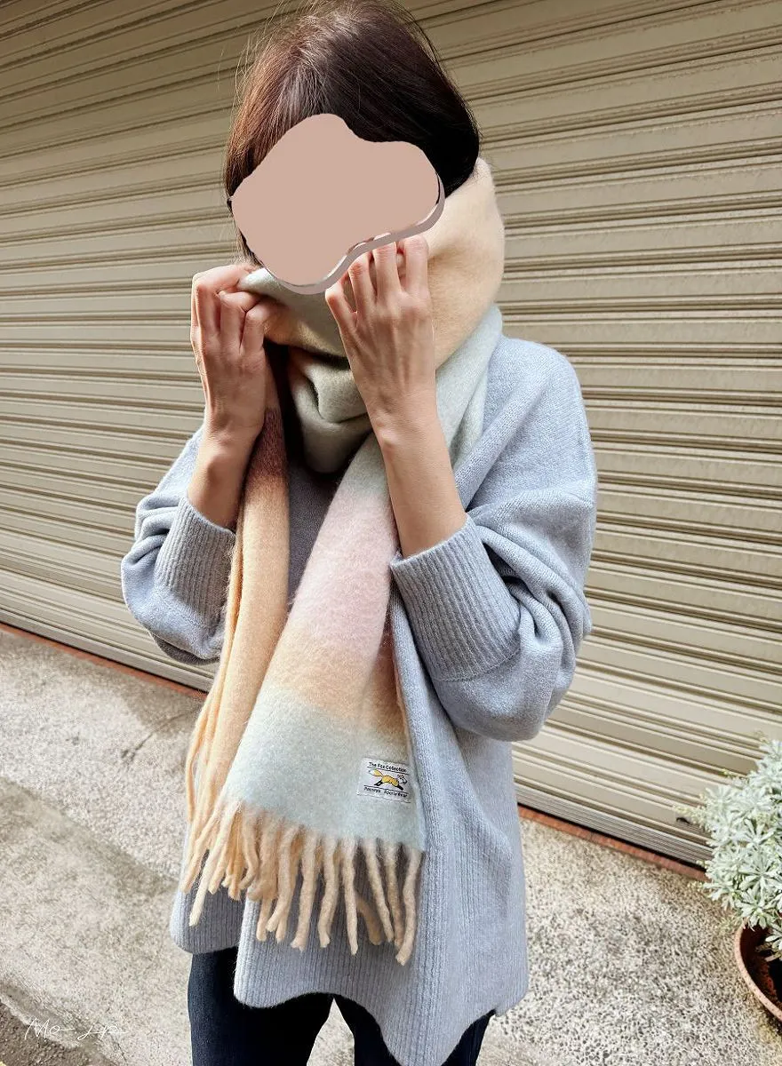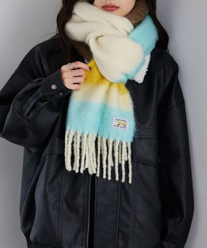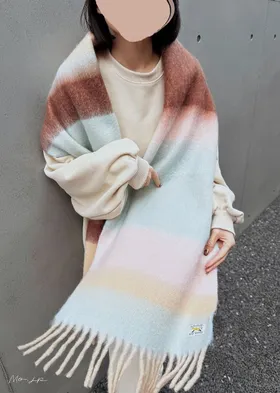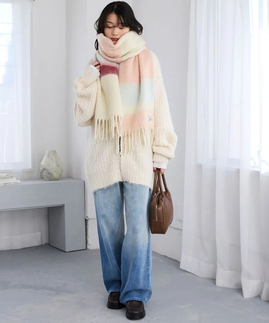 1212限定-品牌聯名PENNEYS軟綿綿溫暖撞色寬條紋圍巾