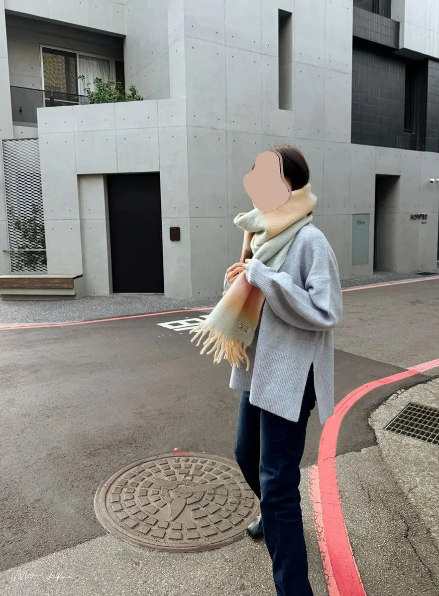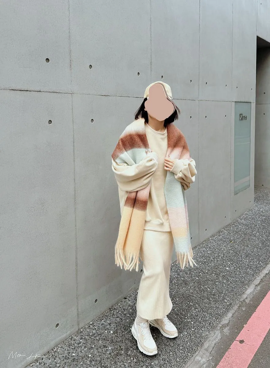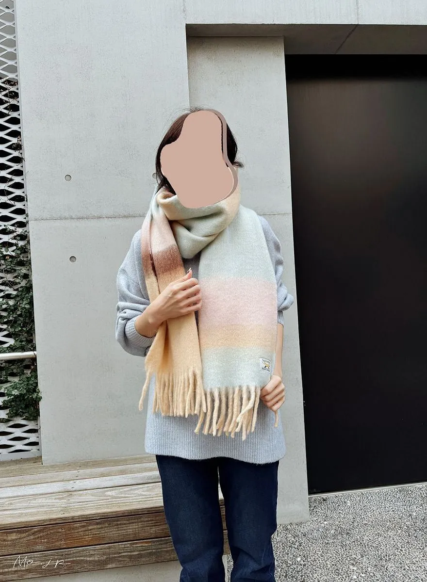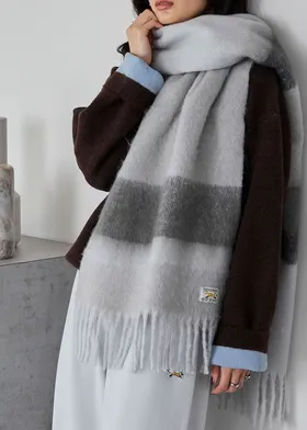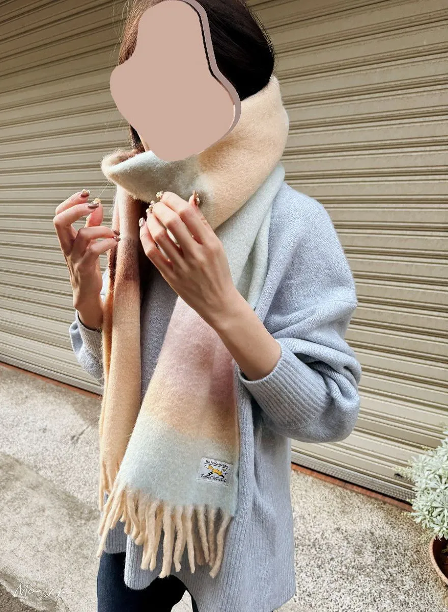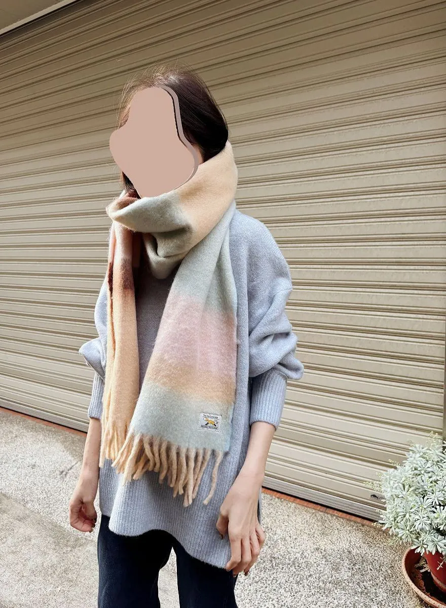 1212限定-品牌聯名PENNEYS軟綿綿溫暖撞色寬條紋圍巾