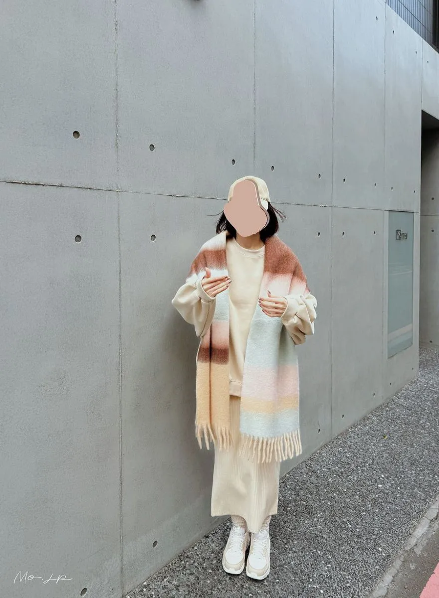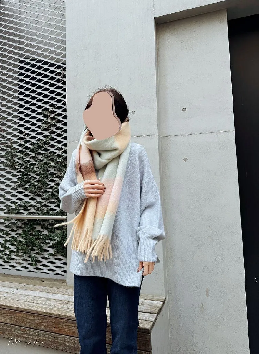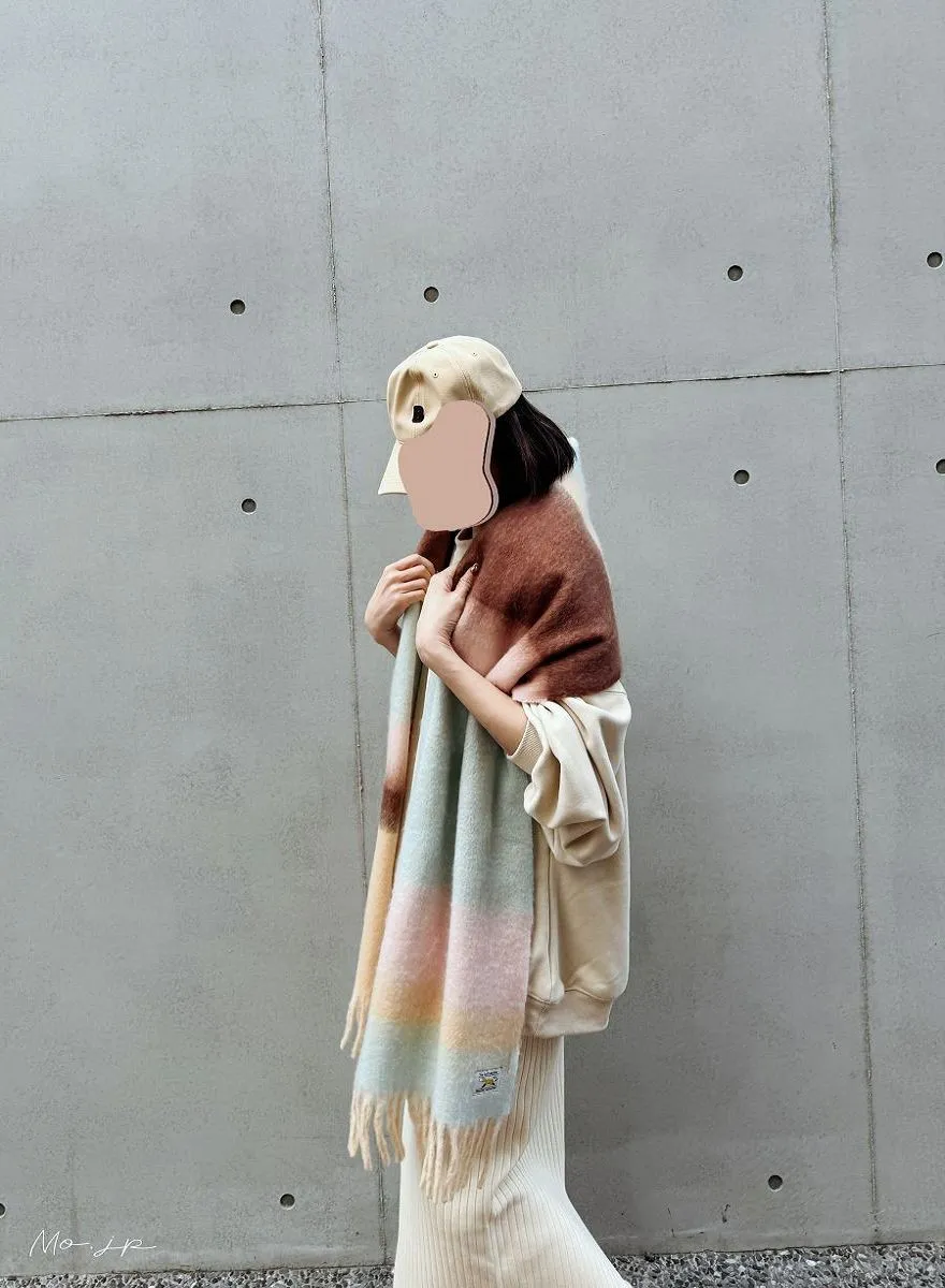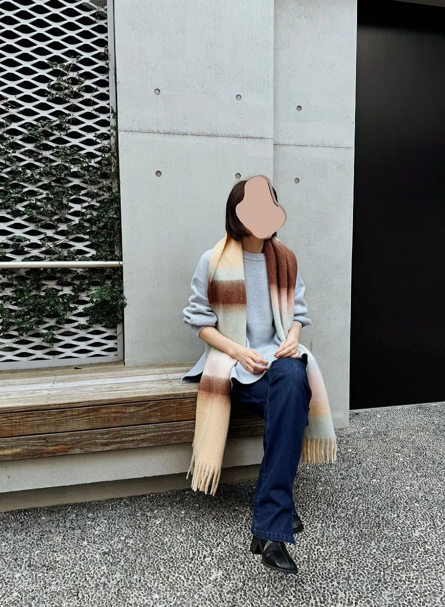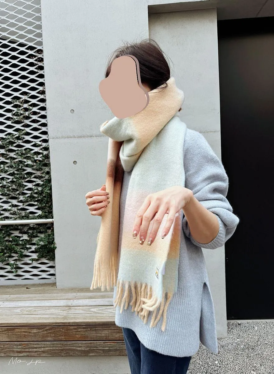 1212限定-品牌聯名PENNEYS軟綿綿溫暖撞色寬條紋圍巾