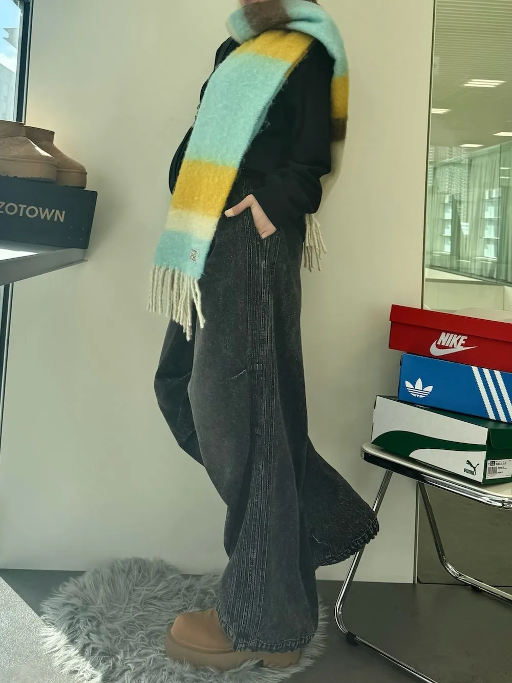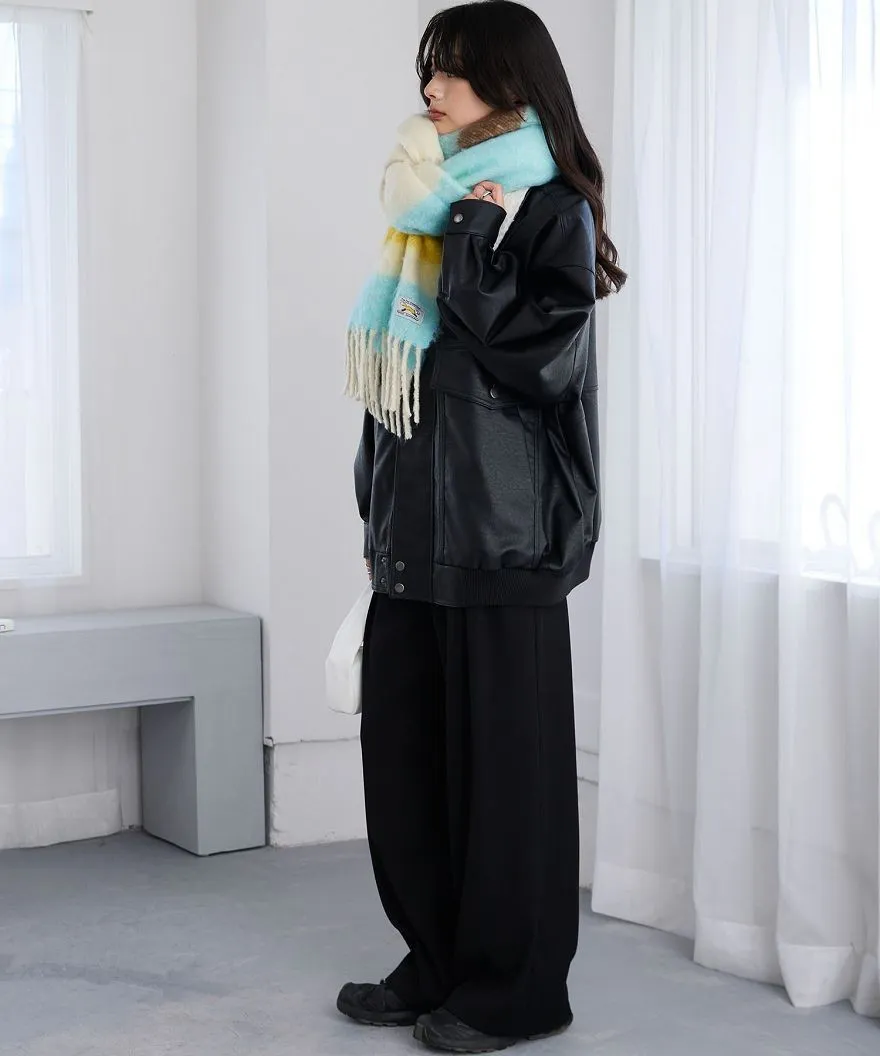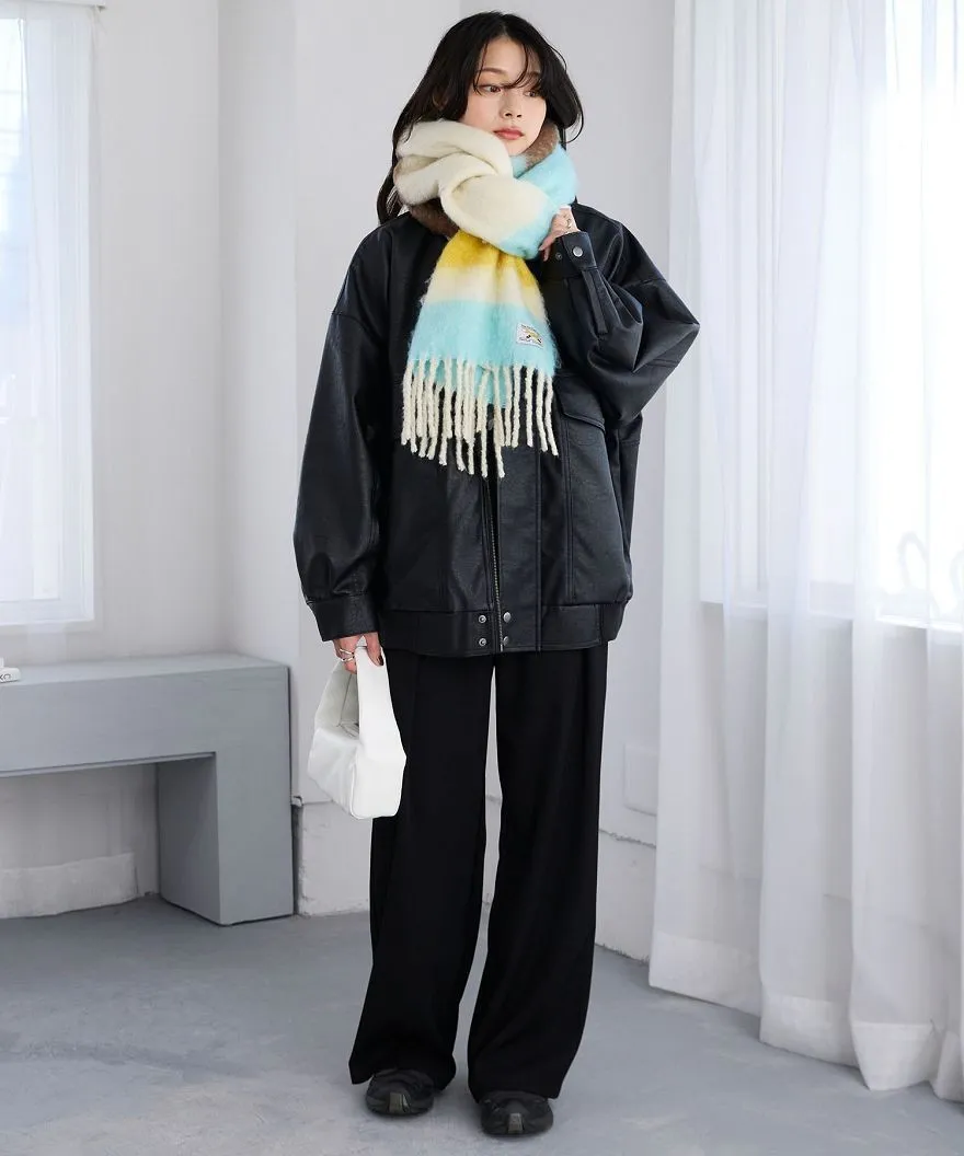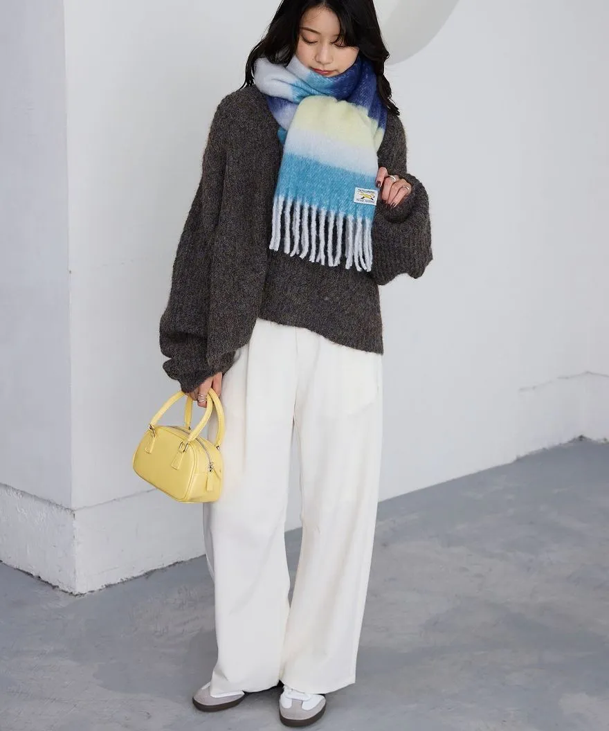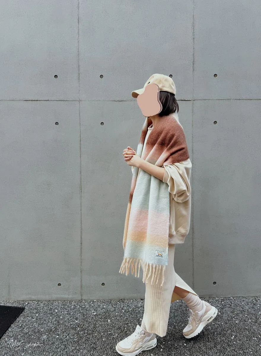 1212限定-品牌聯名PENNEYS軟綿綿溫暖撞色寬條紋圍巾