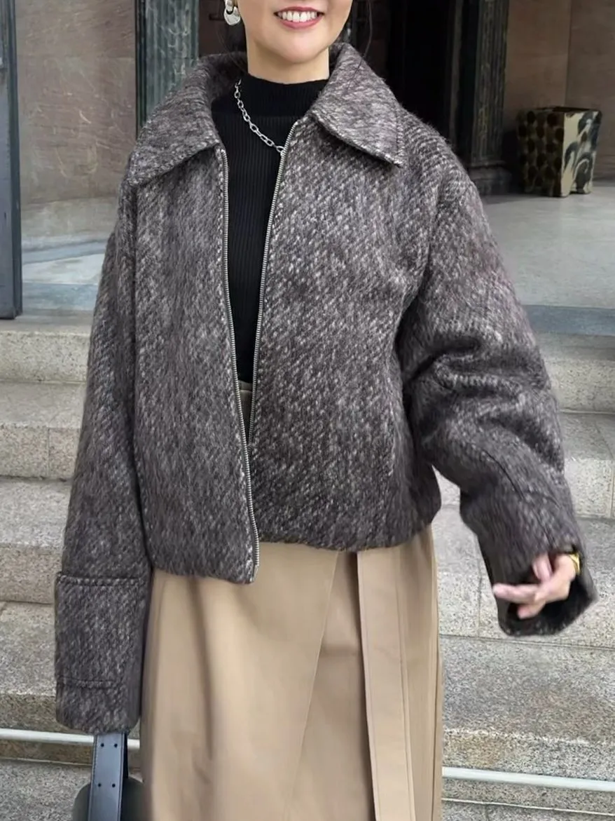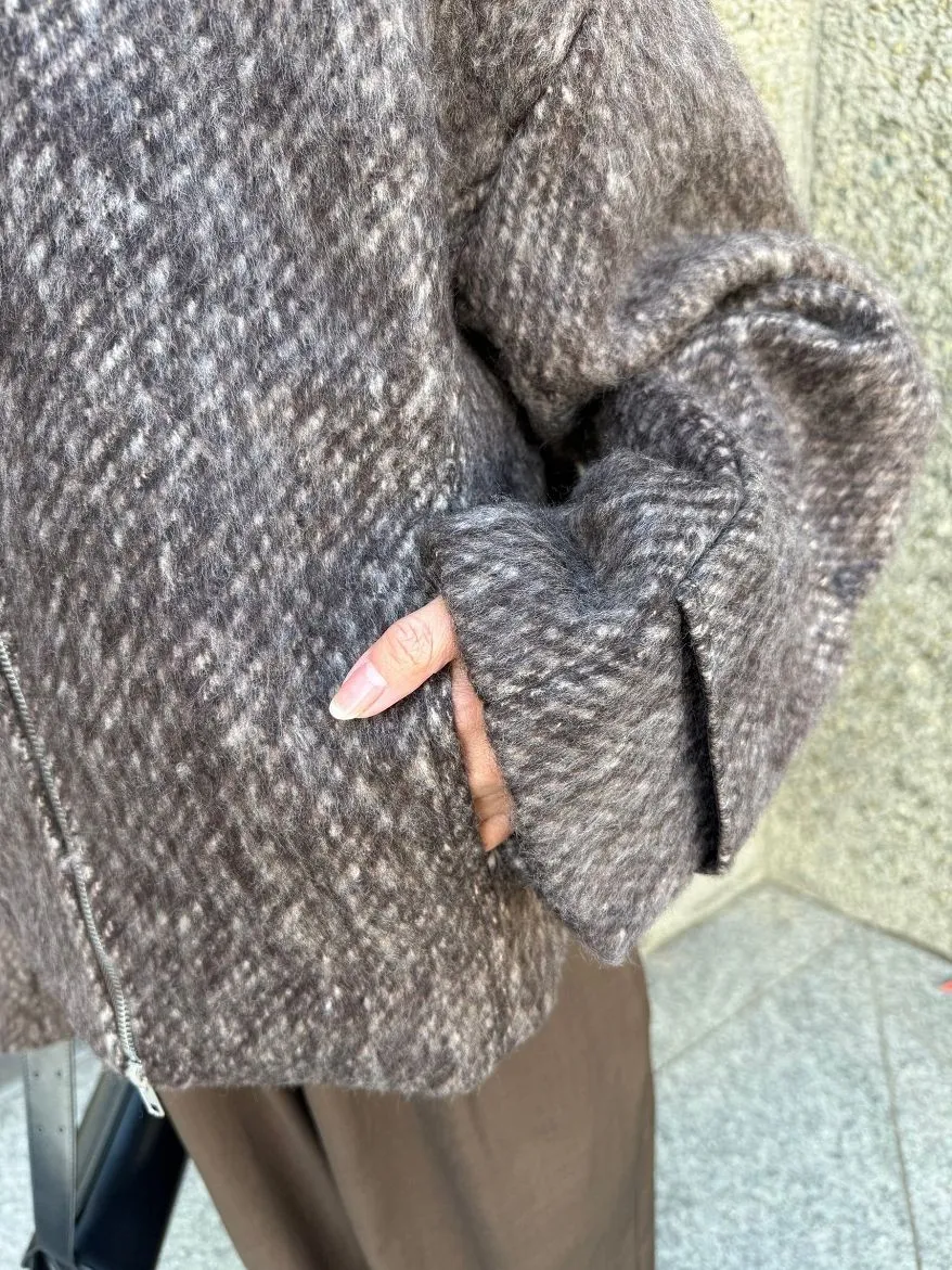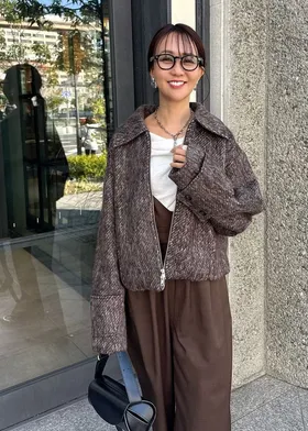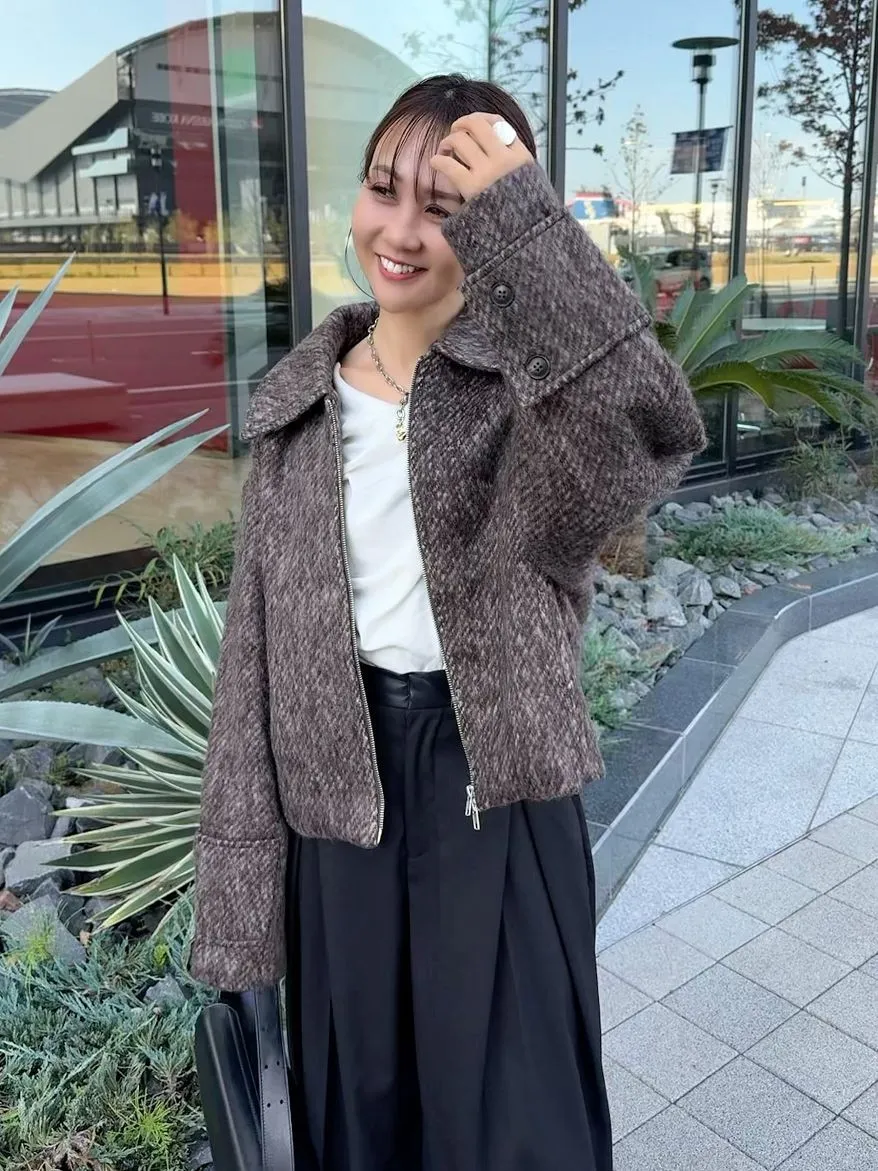 大人氣的混色感刷毛短夾克大衣