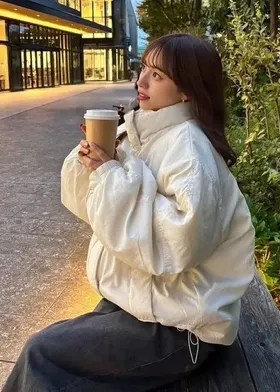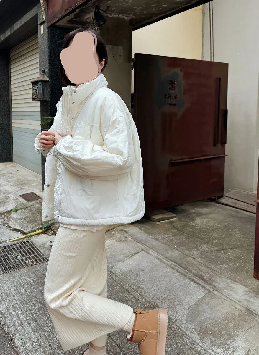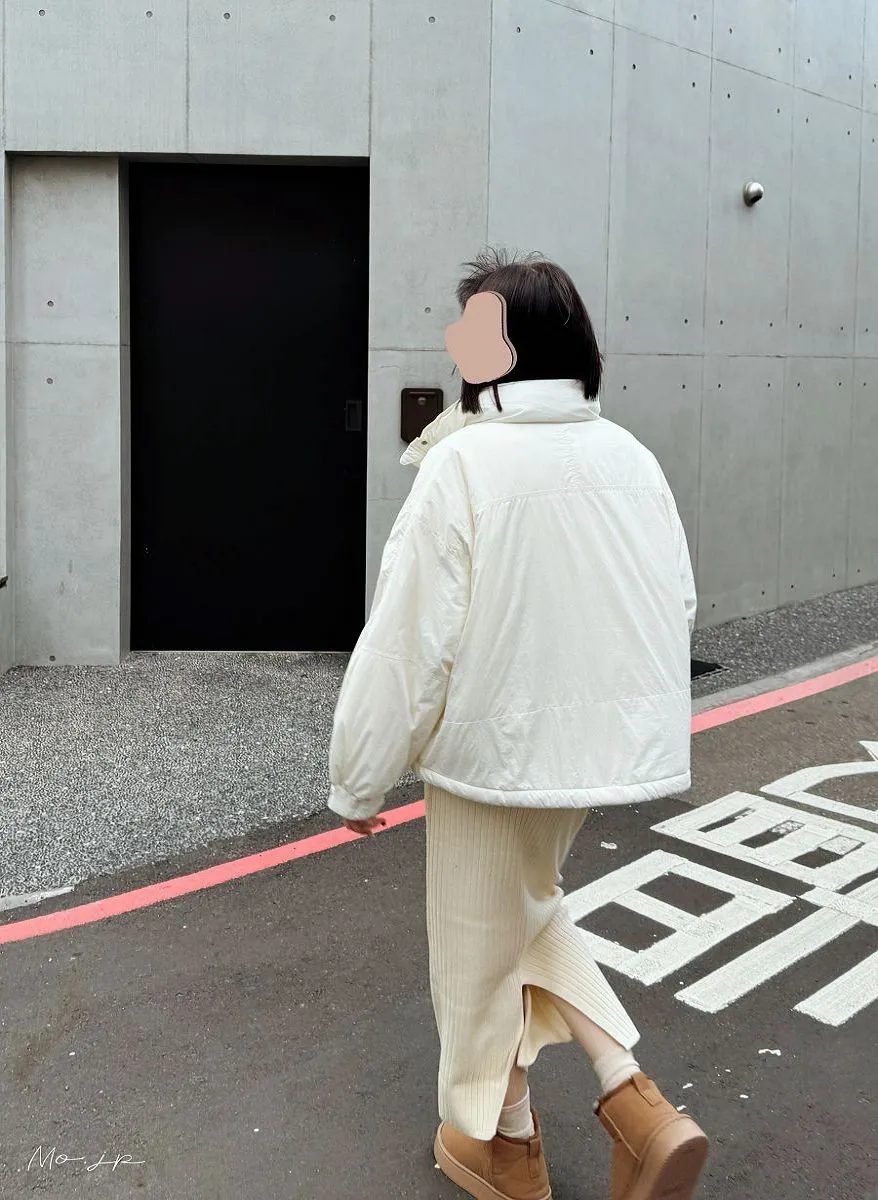 短版剪裁輕盈蓬鬆保暖機能鋪棉澎澎短大衣