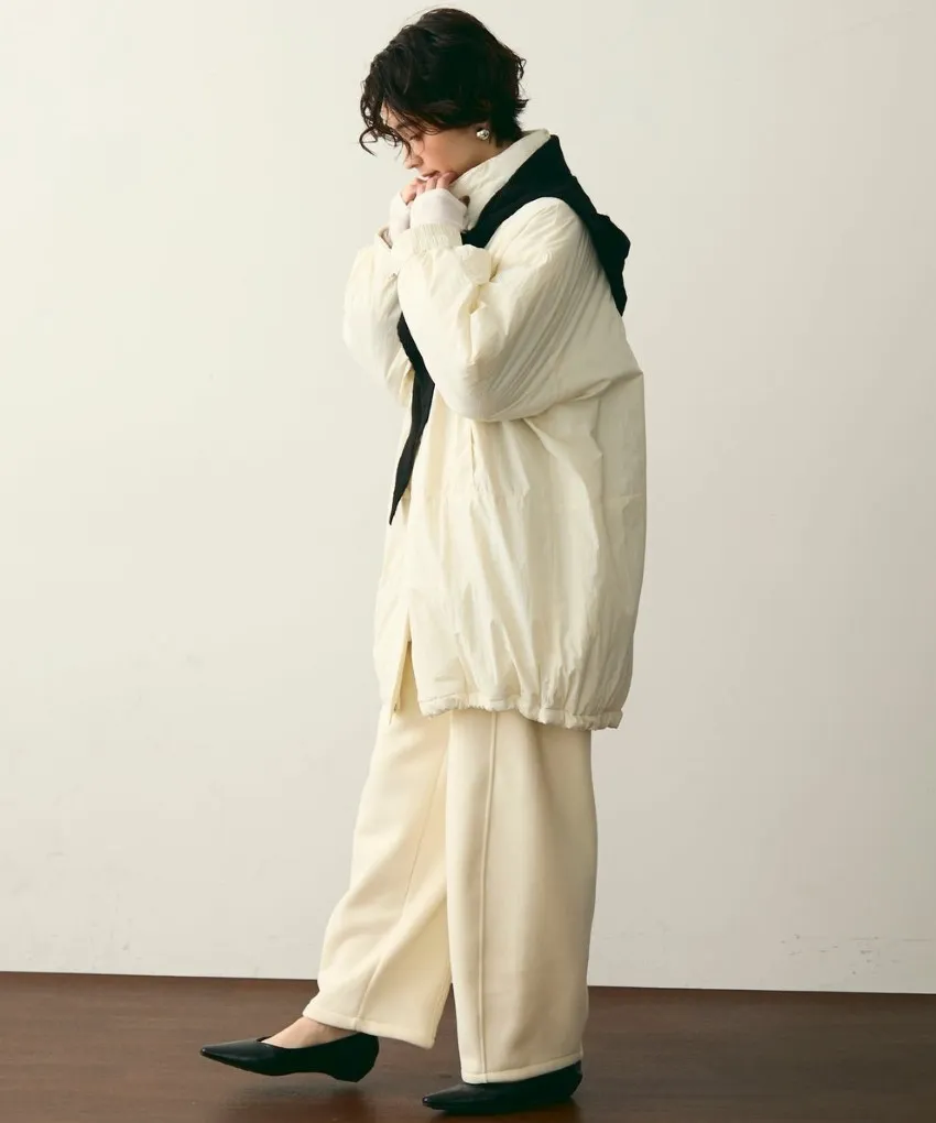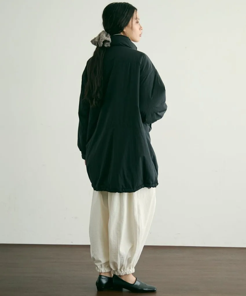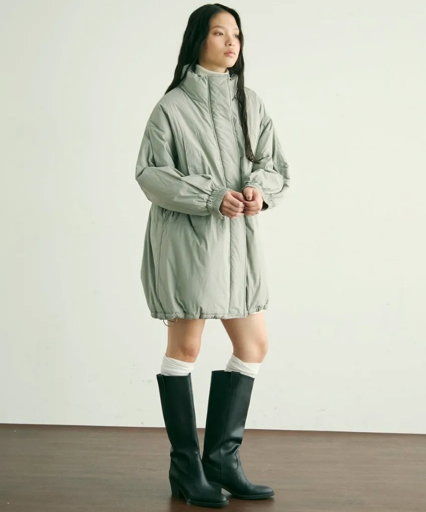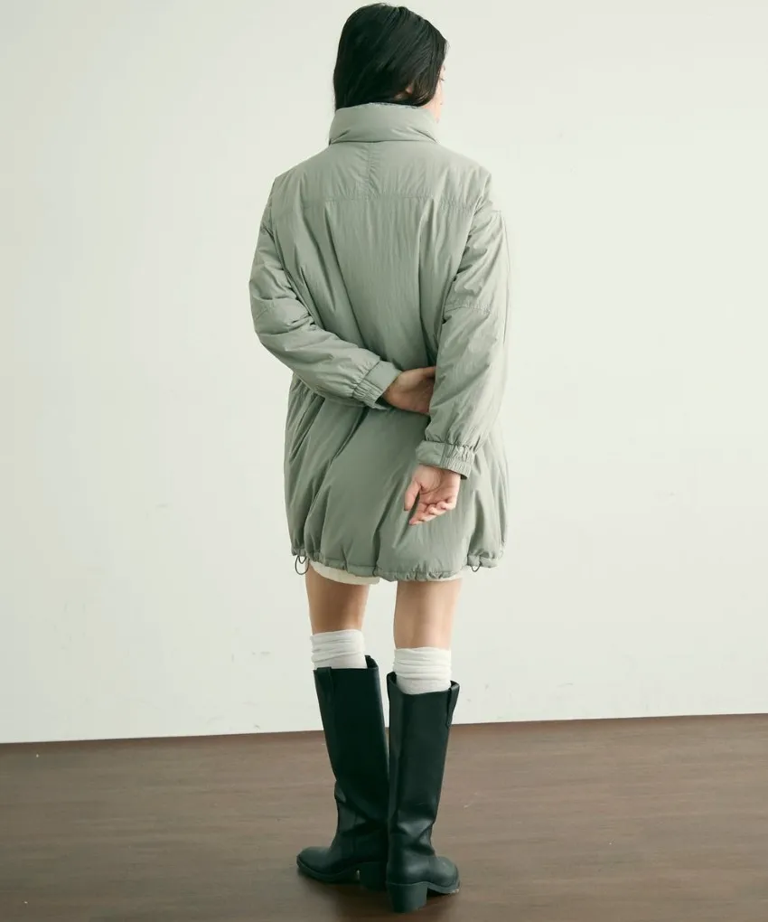 下擺配有可調式抽繩 可以自行抽繩調整大衣輪廓