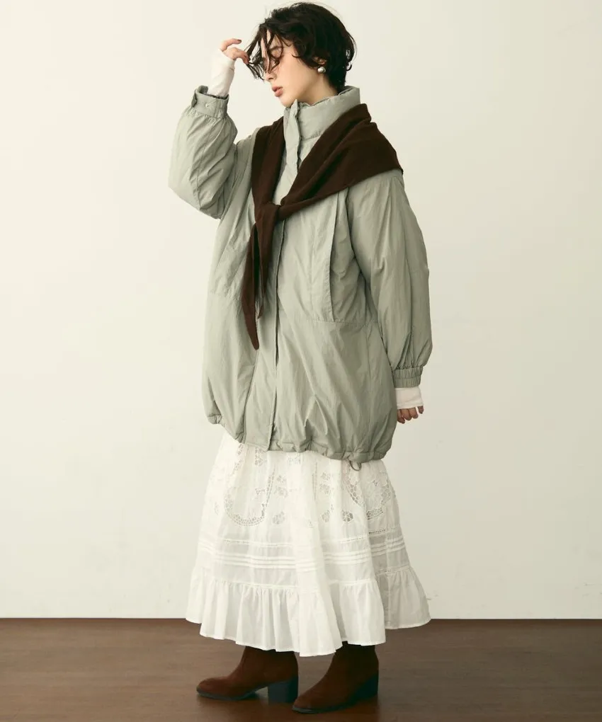 長版 輕盈蓬鬆保暖機能鋪棉澎澎大衣