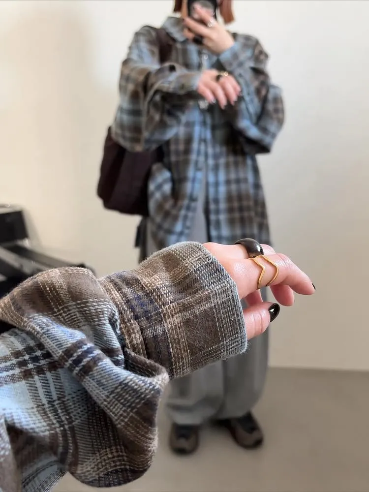 <面料很舒服~不是那種篇粗的法藍絨~是細緻的格紋款真的很推>