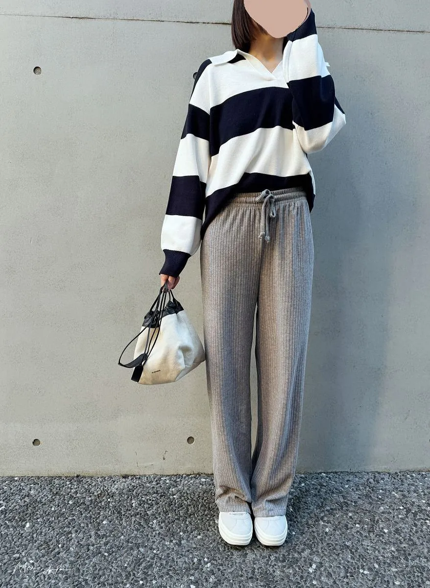 秋冬款微微起毛壓紋寬褲來囉