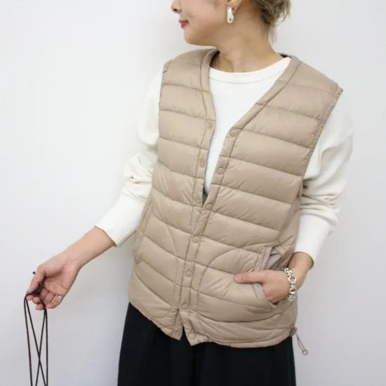 冬季人氣商品,羽絨背心。 從秋天到春天,即使一件也有足夠的防寒能力 可長期使用。 是外出使用的最佳選擇。 外層和襯裡都不便宜 使用細數尼龍,保持柔軟質地 使用高密度尼塔夫綢材料。 使用沉悶的線使磨砂質感光澤度降低 僅對背面進行了處理,以防止向下吹氣。 適度的貼合性很容易在搭配大衣使用 下擺使用調整抽繩,並且尺寸可以調節