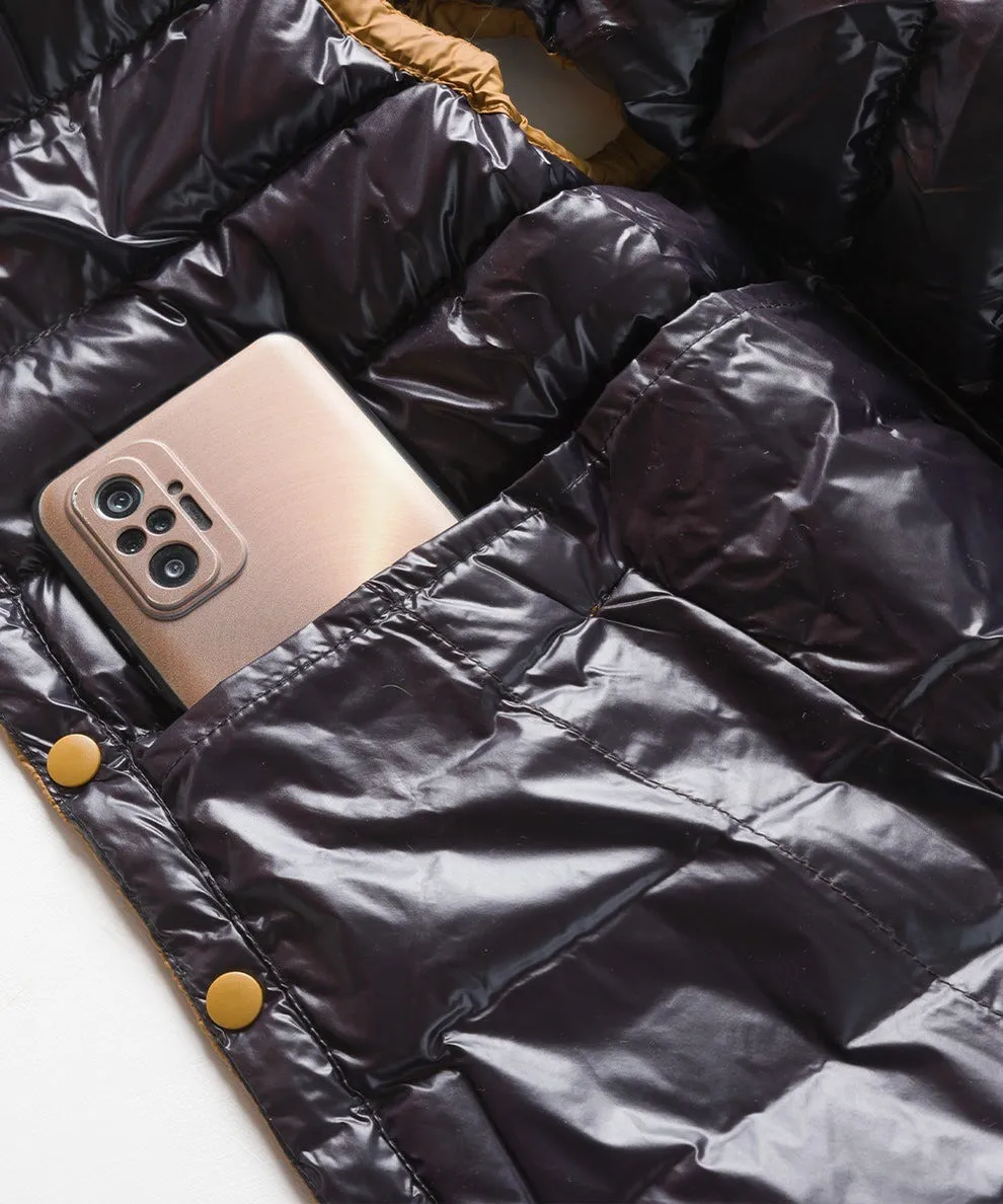 光澤面料~~壓釦式也非常高級~~有口袋設計~~內側也有!!!