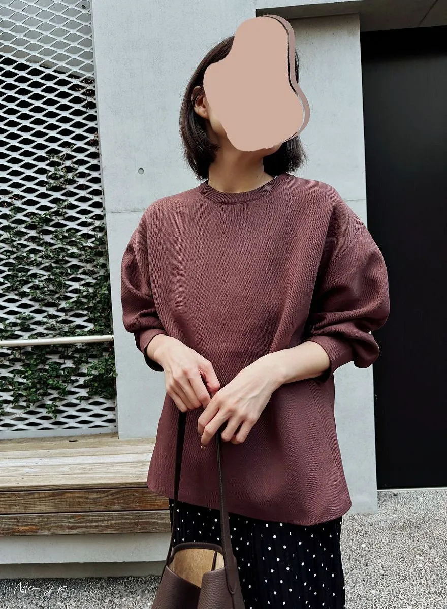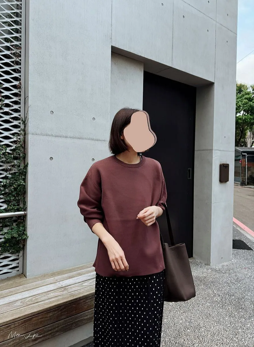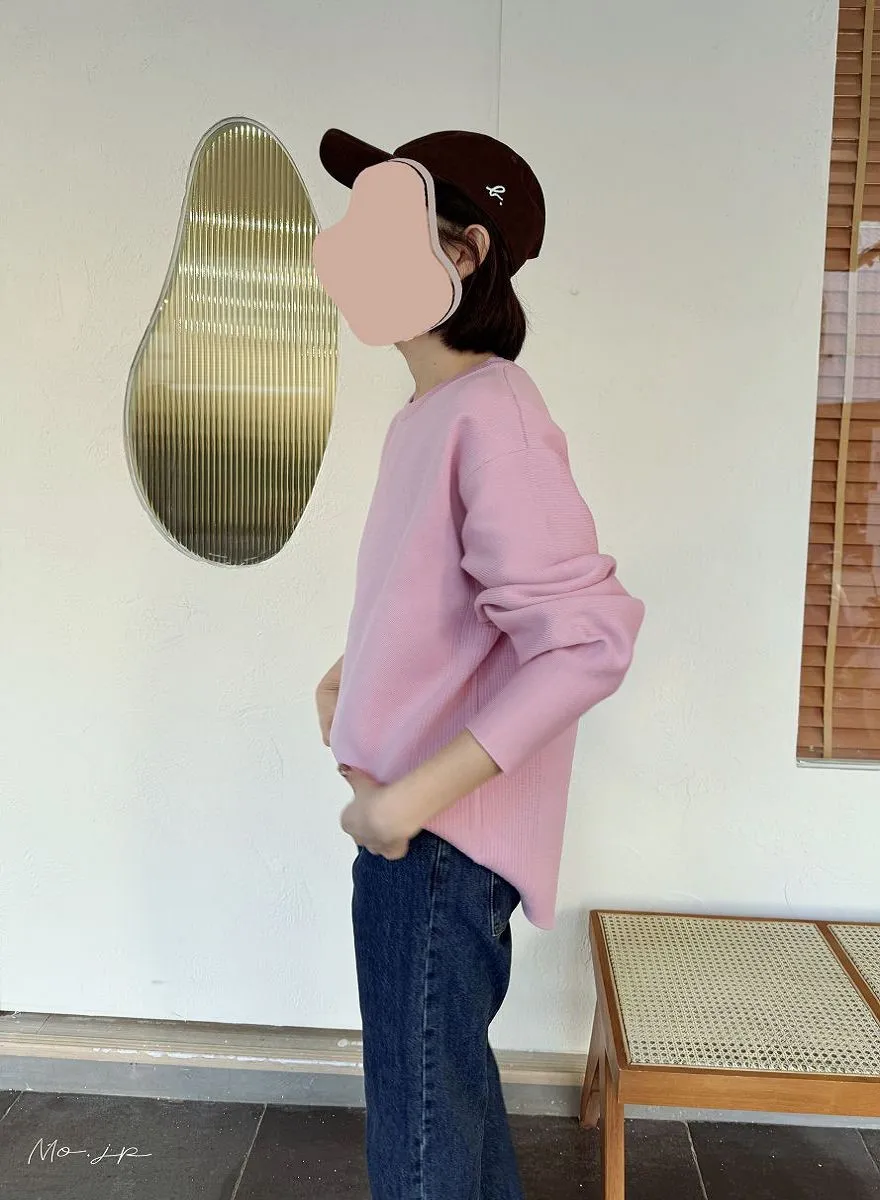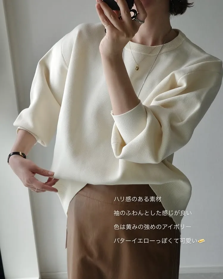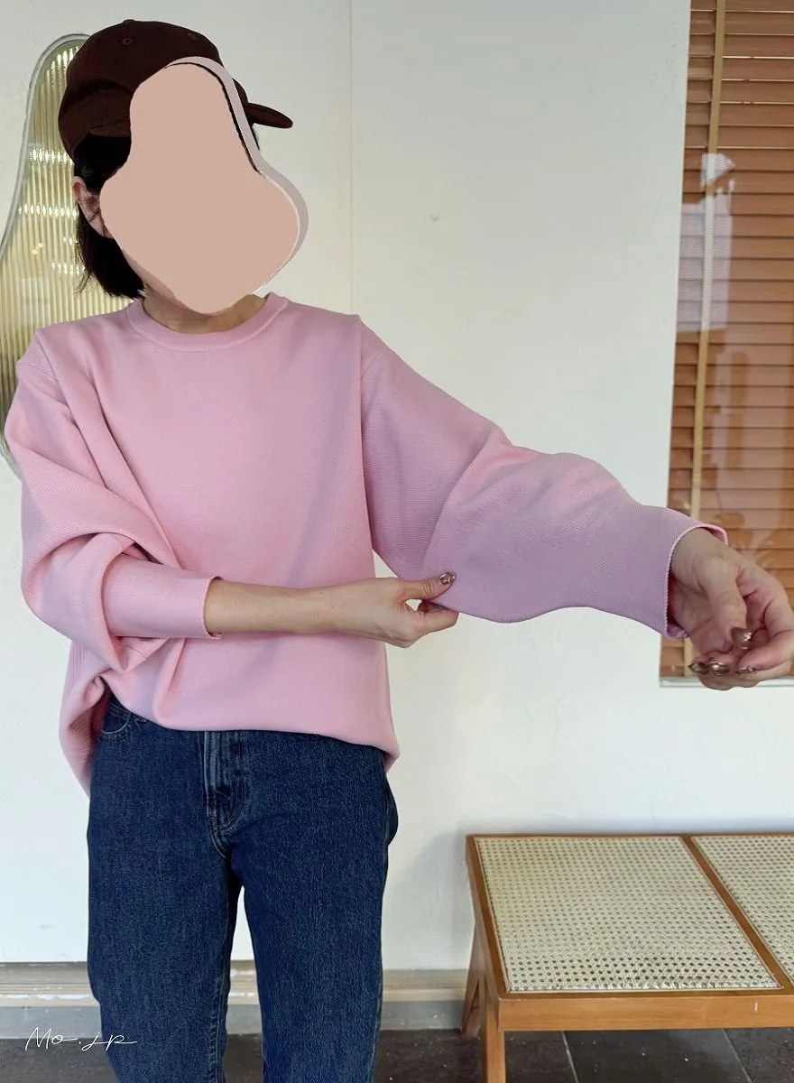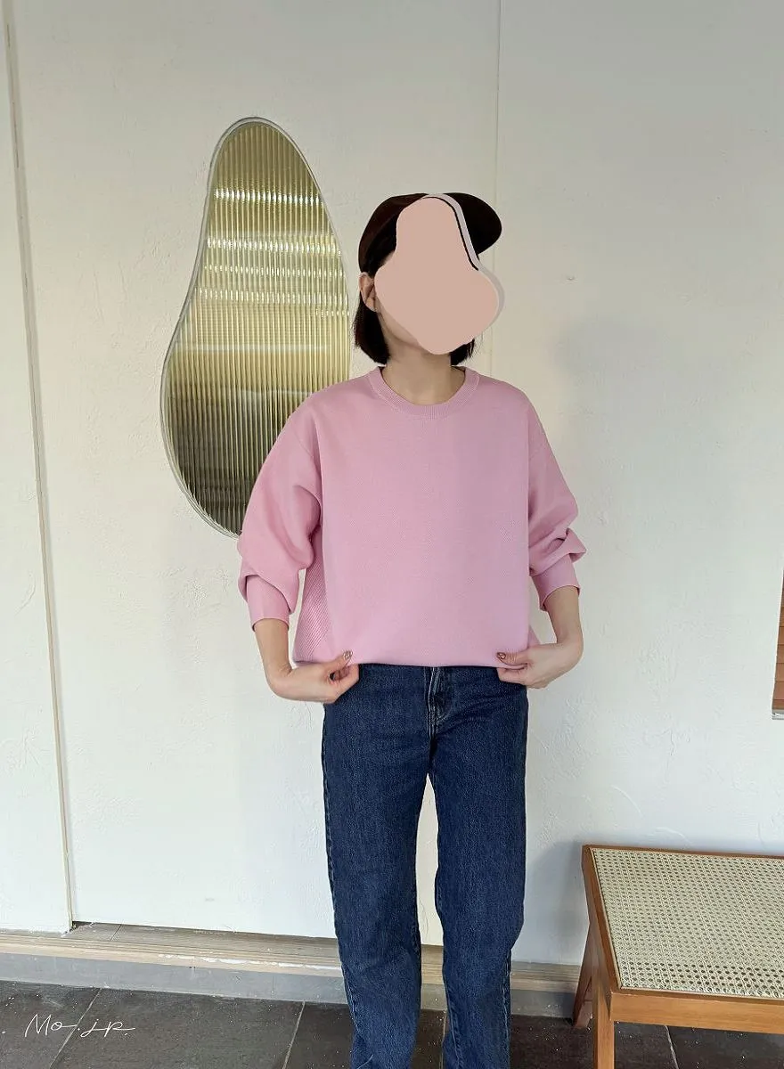它是一款空氣感毛衣~版型是有挺度~穿起來就有立體感<類似那種大學TEE的挺度~稍稍在更順身>