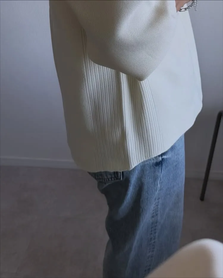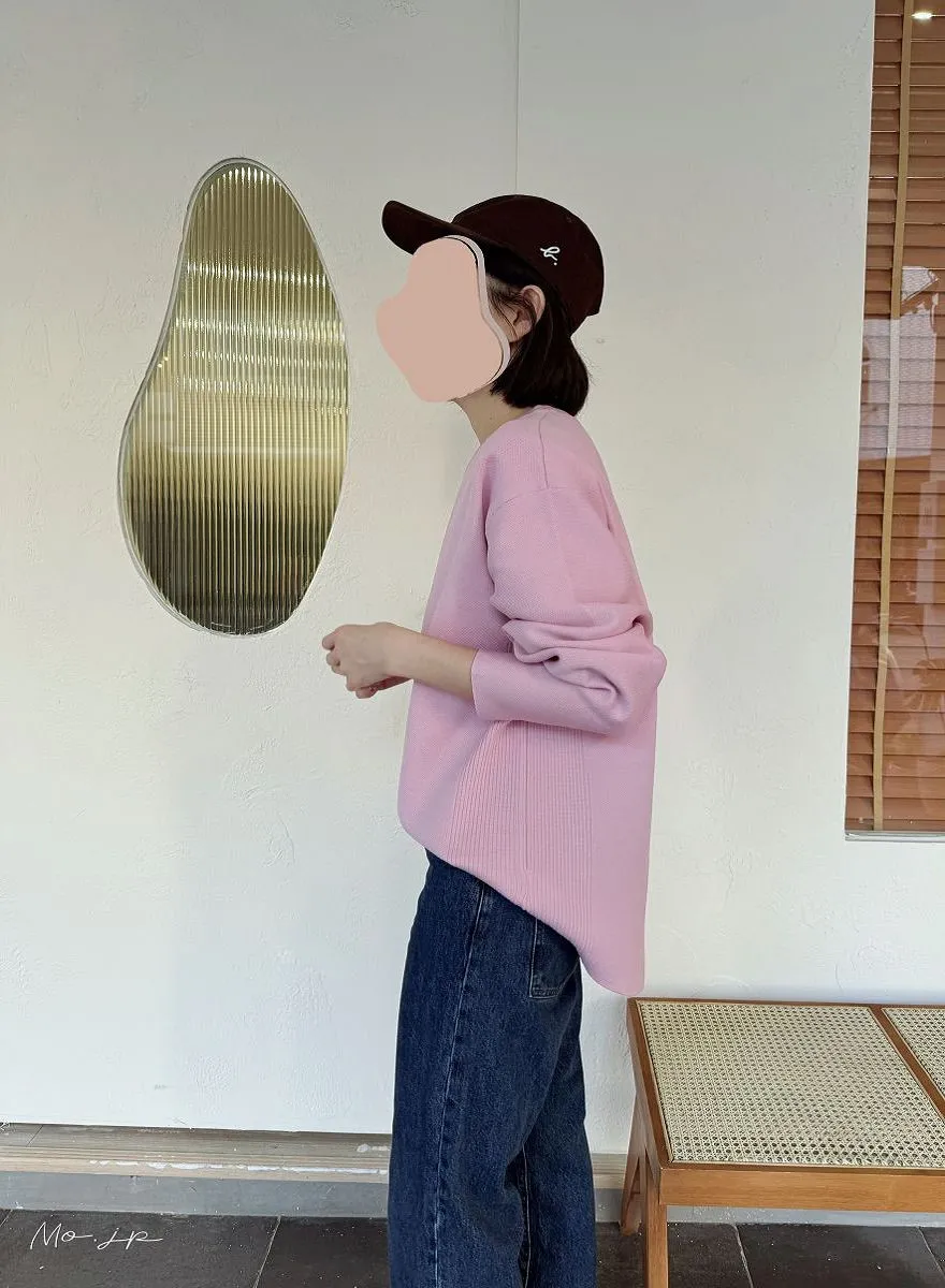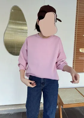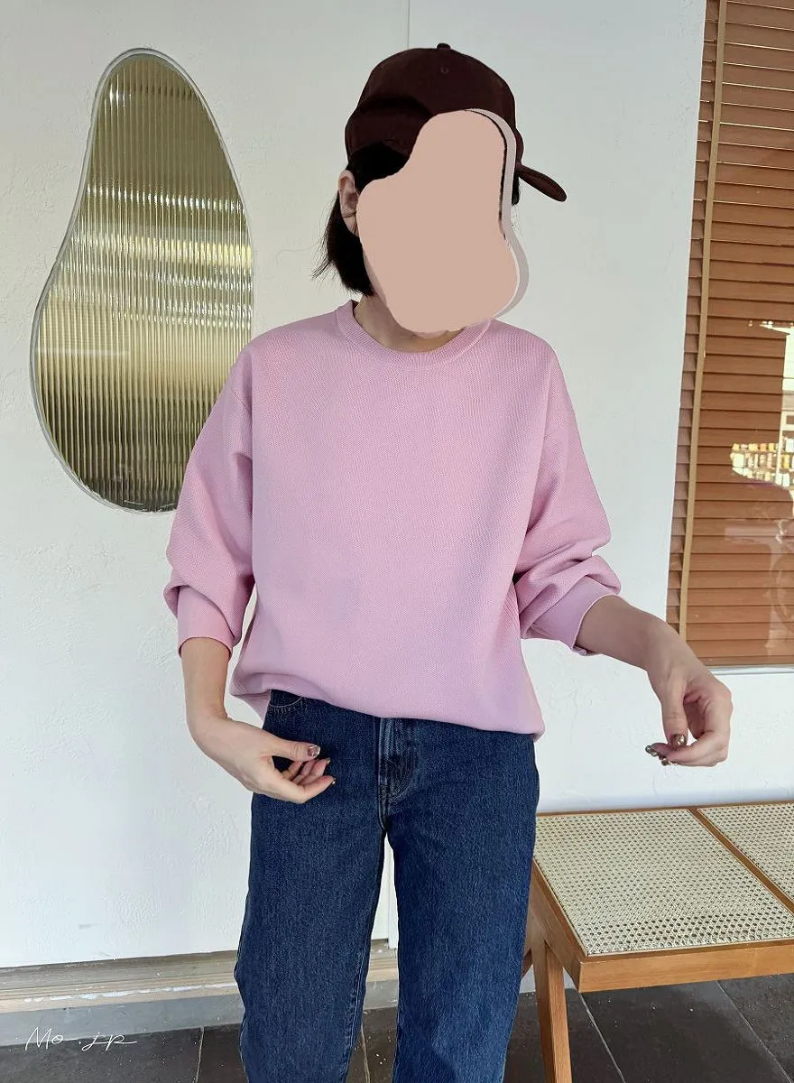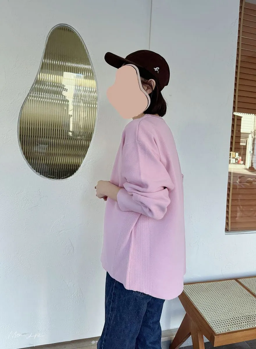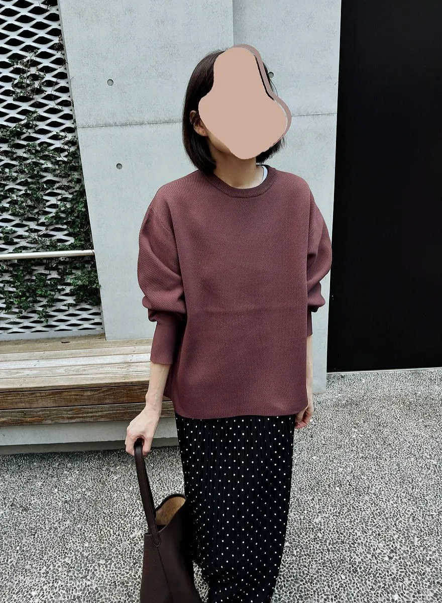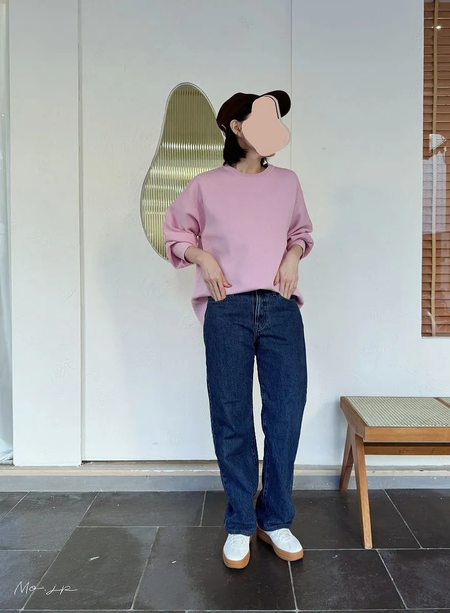 它是一款空氣感毛衣~版型是有挺度~穿起來就有立體感<類似那種大學TEE的挺度~稍稍在更順身>