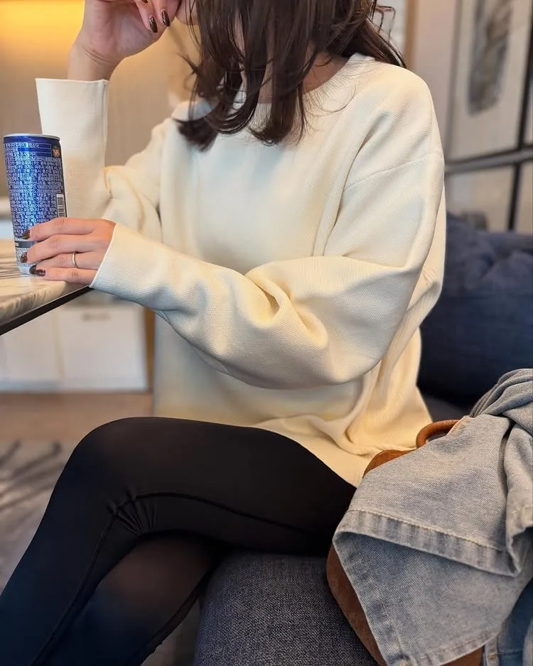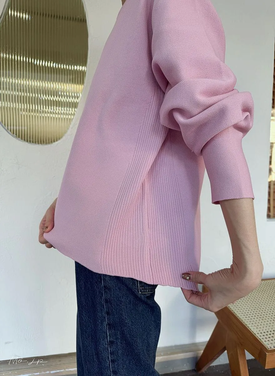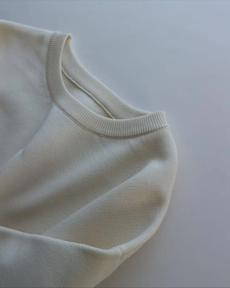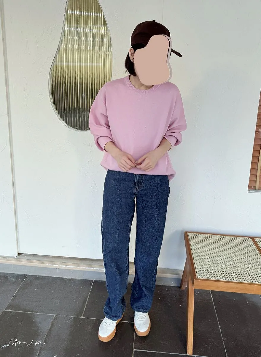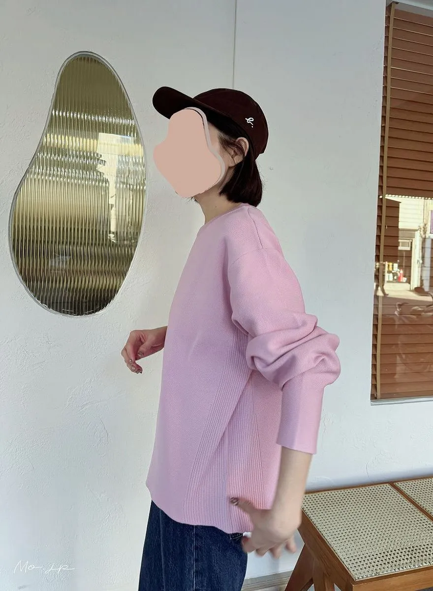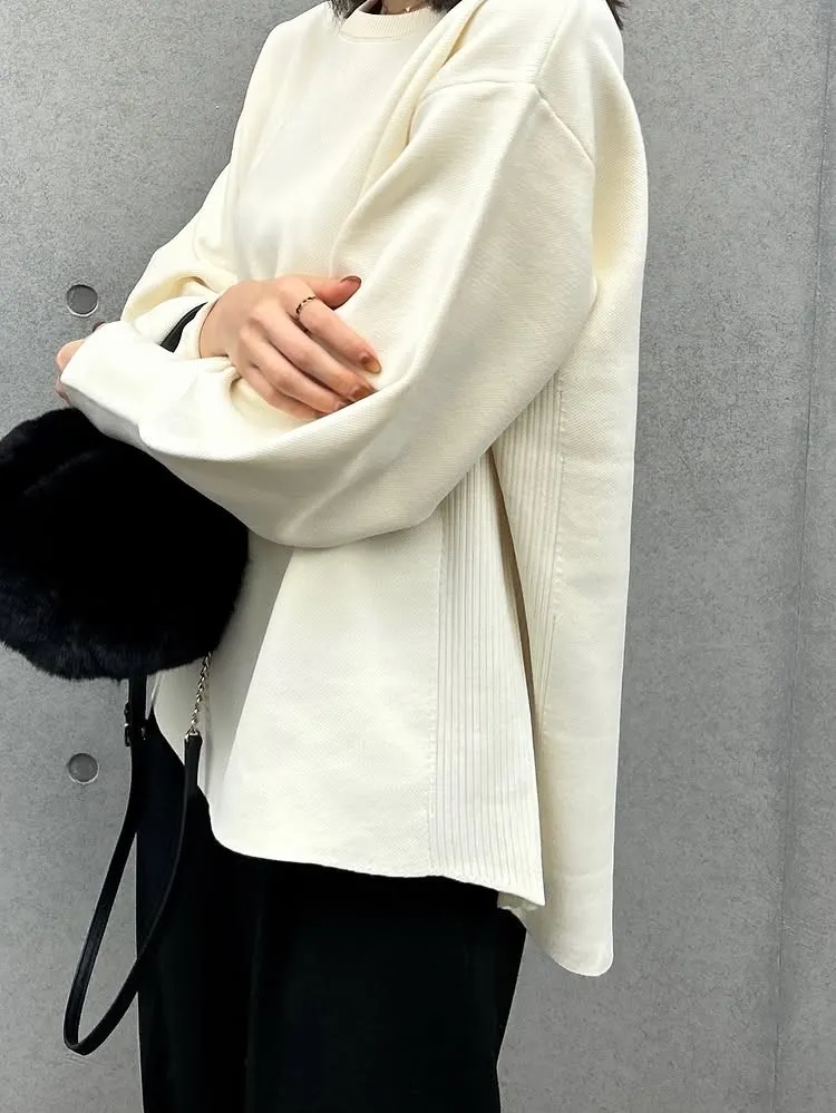 它是一款空氣感毛衣~版型是有挺度~穿起來就有立體感<類似那種大學TEE的挺度~稍稍在更順身>