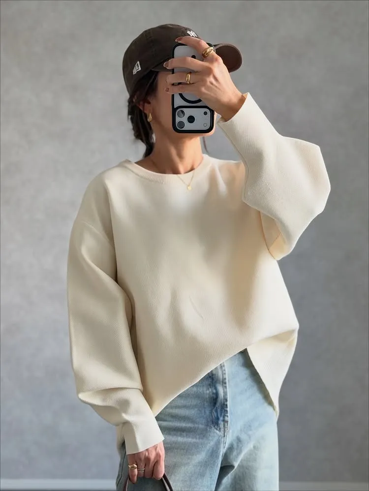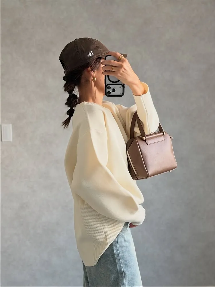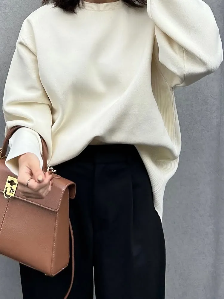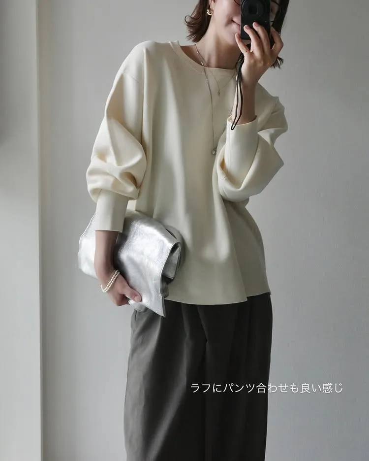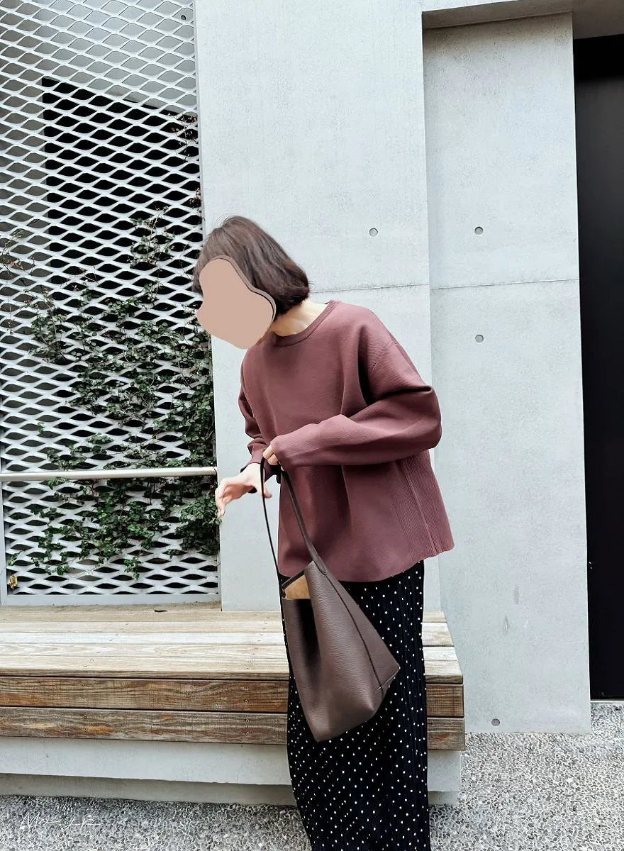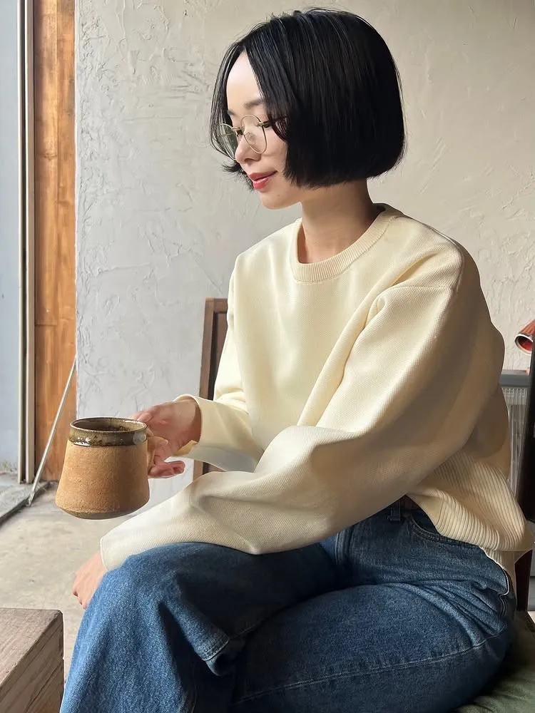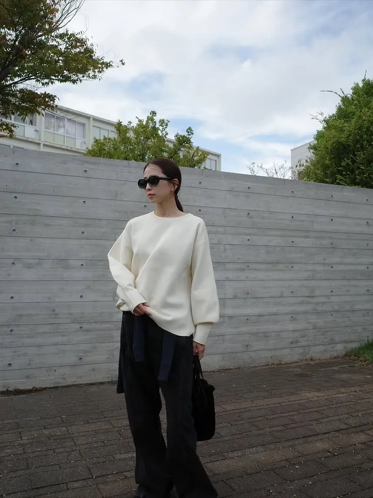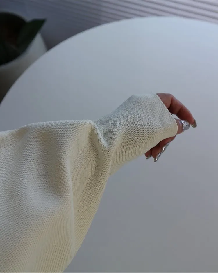 它是一款空氣感毛衣~版型是有挺度~穿起來就有立體感<類似那種大學TEE的挺度~稍稍在更順身>