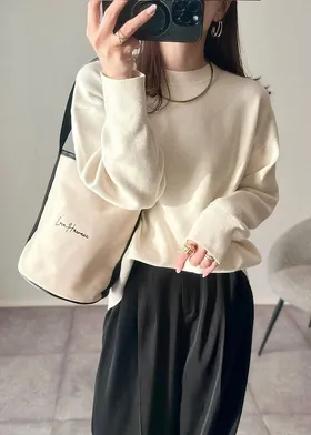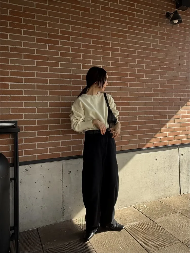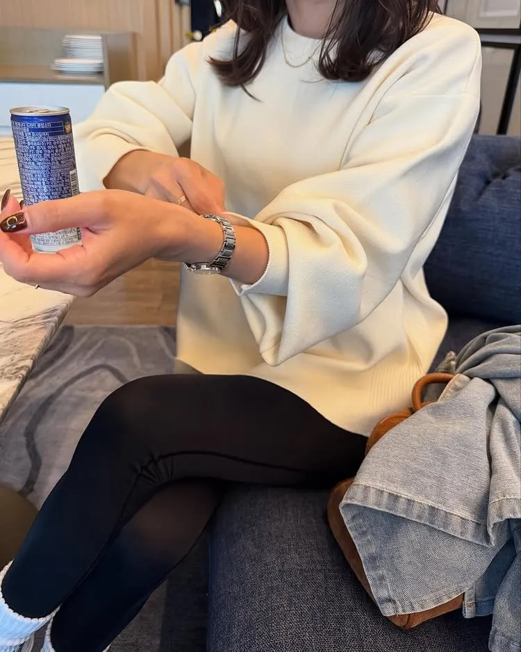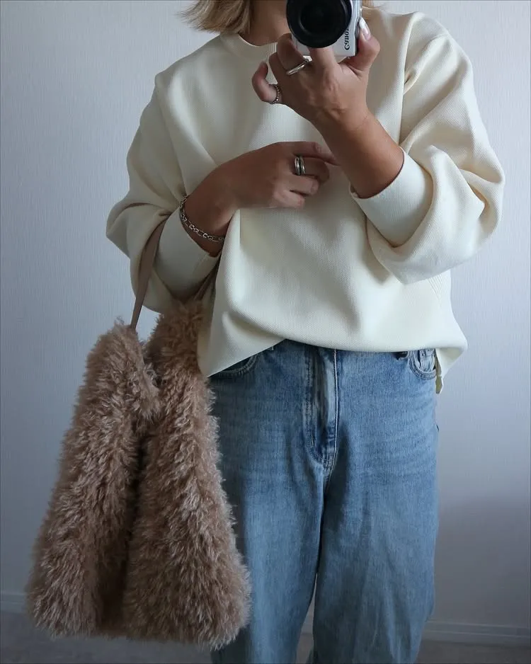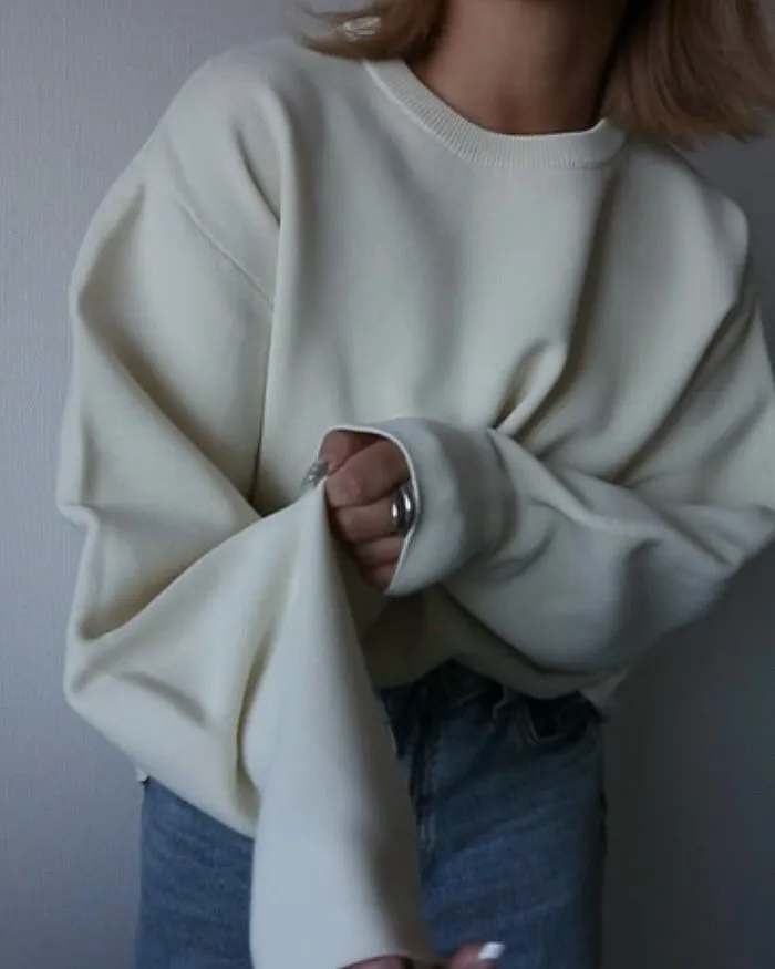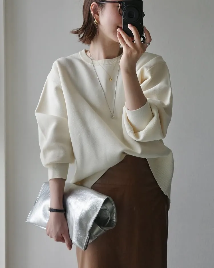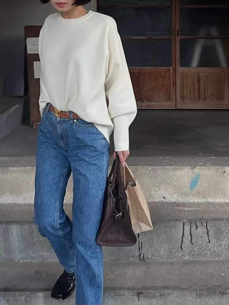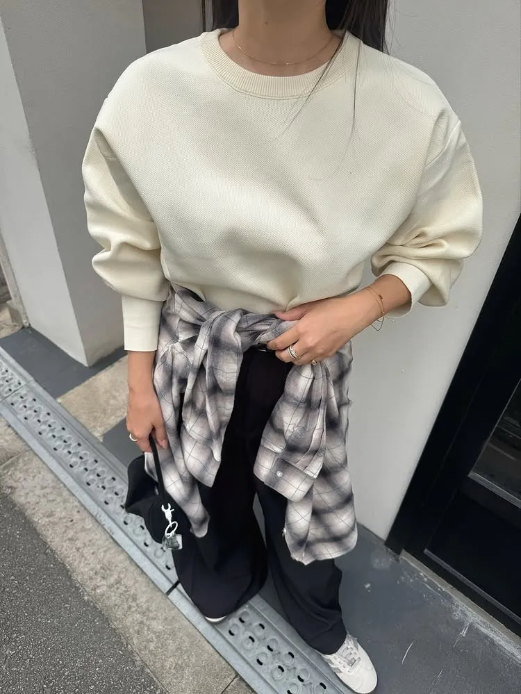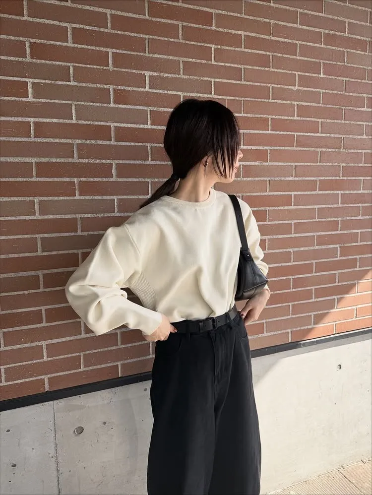 它是一款空氣感毛衣~版型是有挺度~穿起來就有立體感<類似那種大學TEE的挺度~稍稍在更順身>