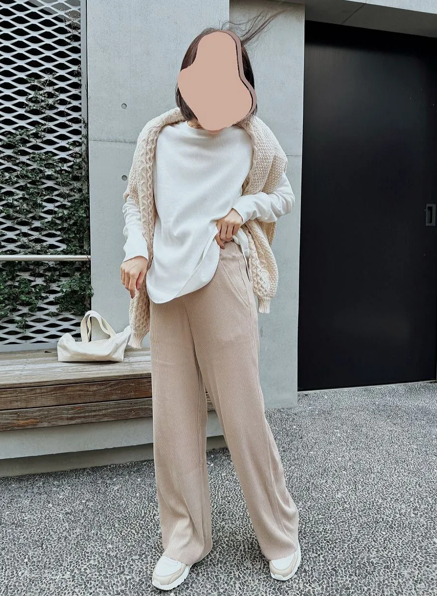 今年也很流行壓紋休閒寬褲~