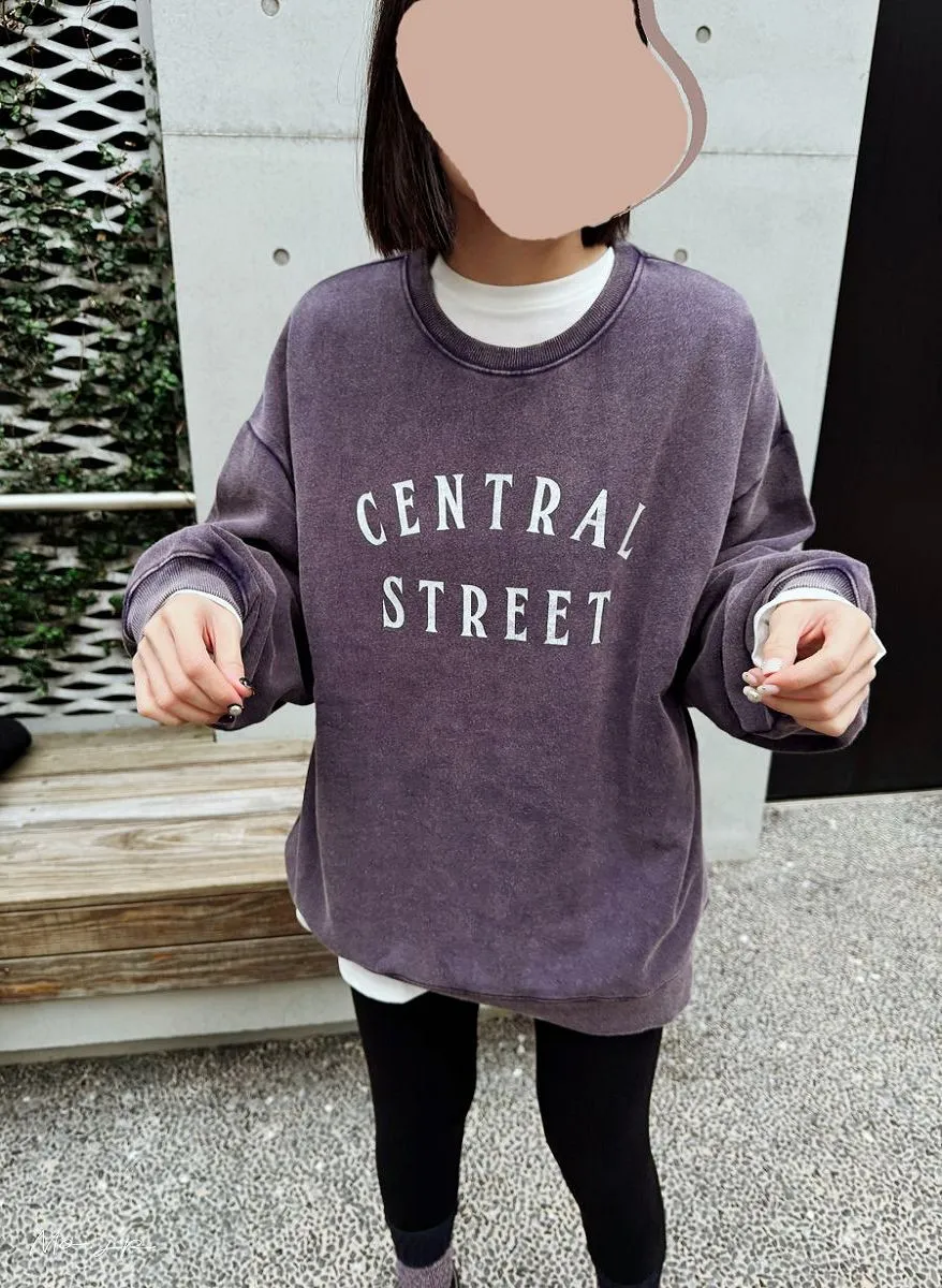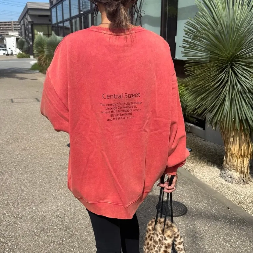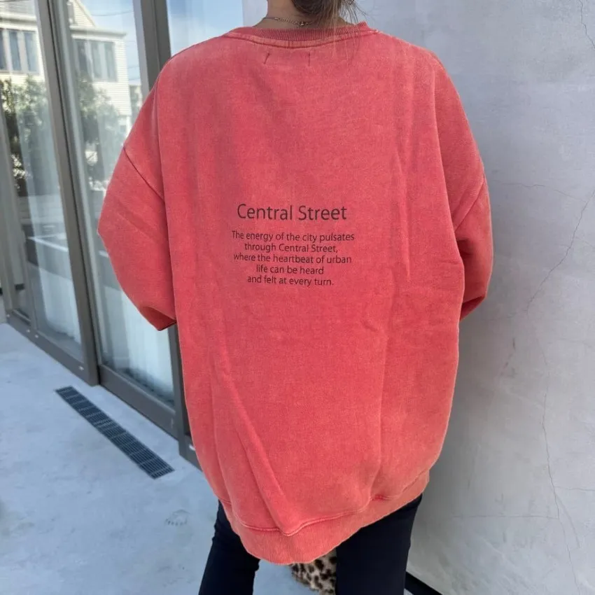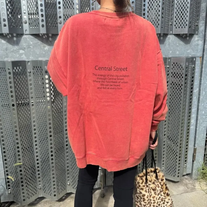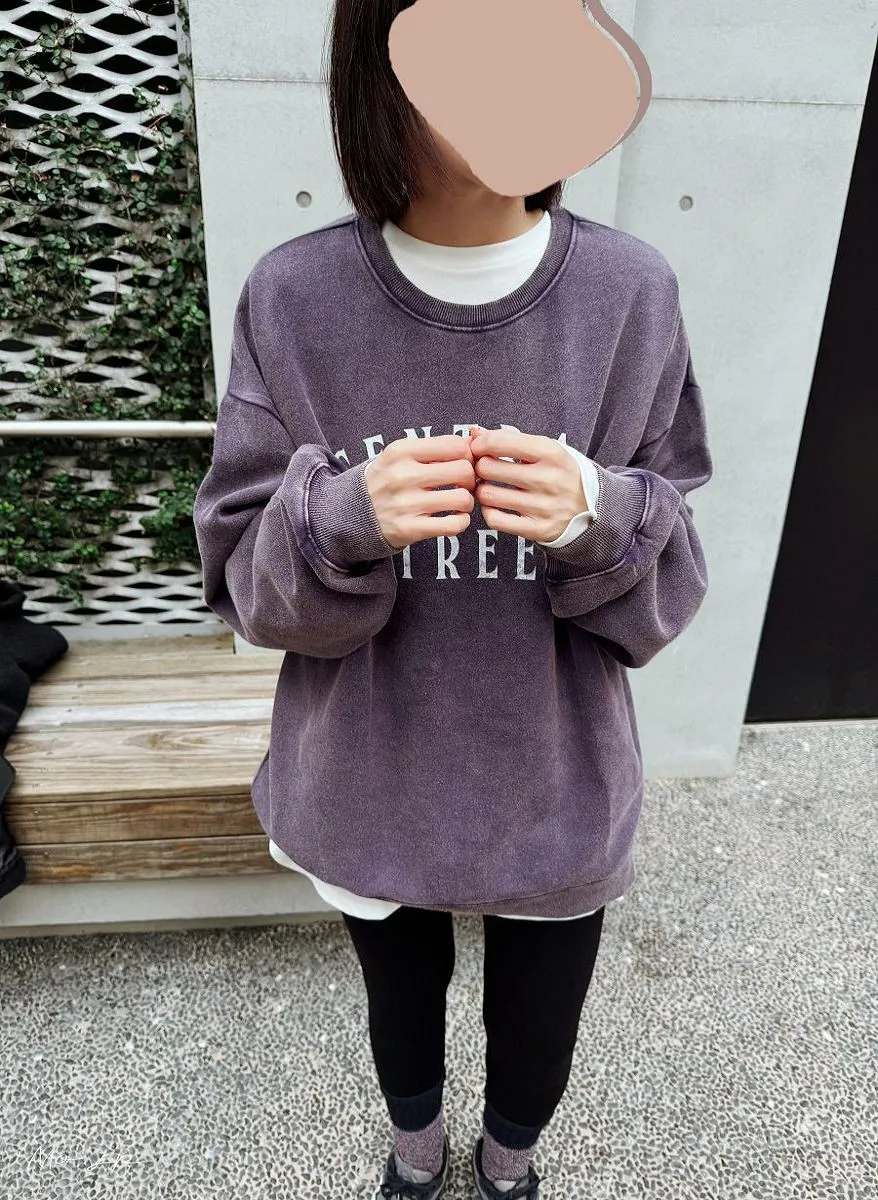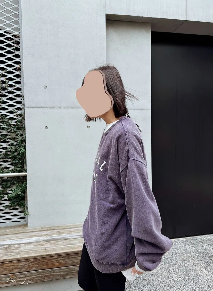 <分SIZE>裏起毛~水洗刷色加工字母印刷大學T