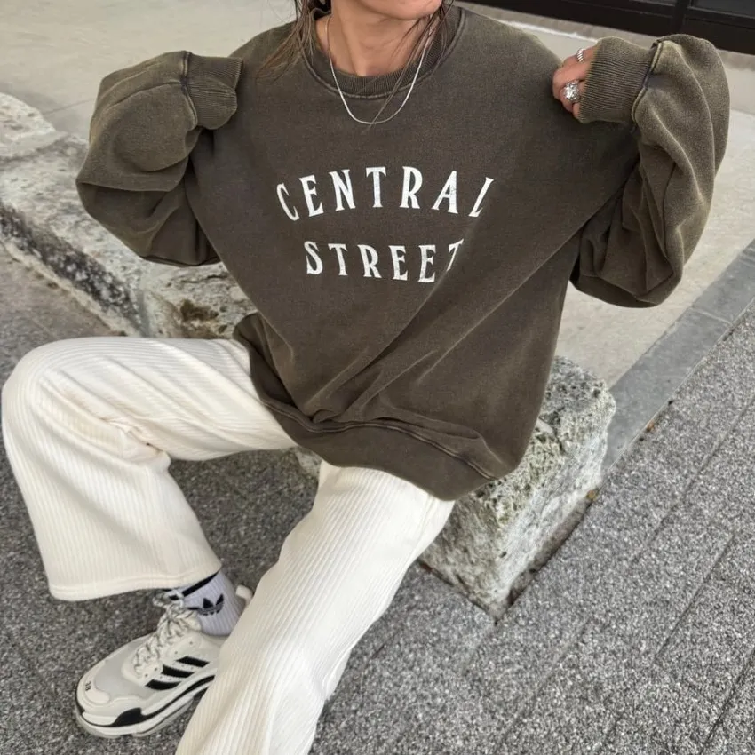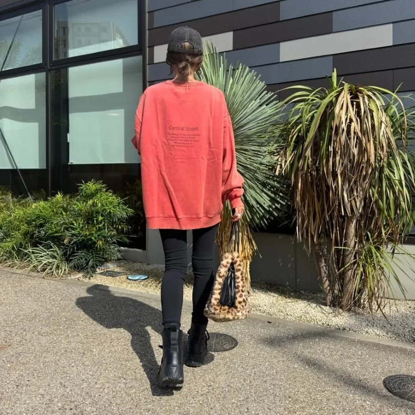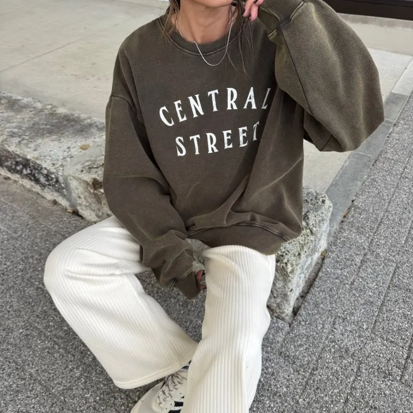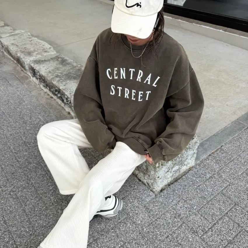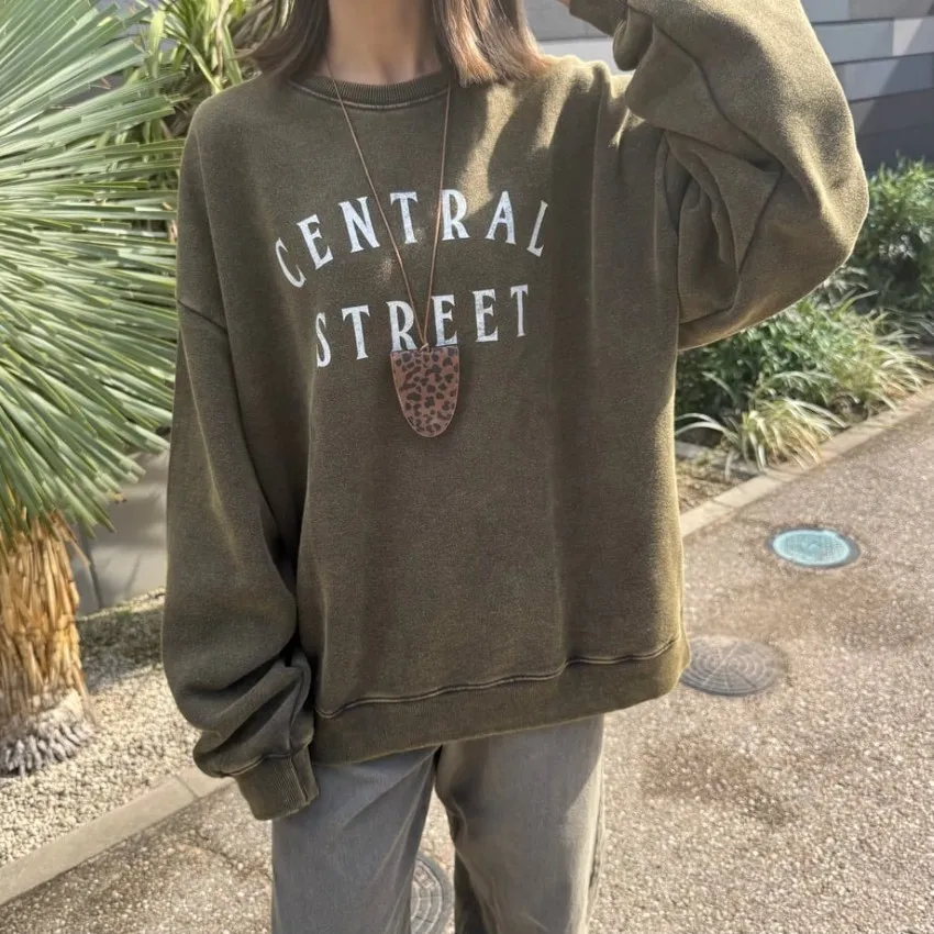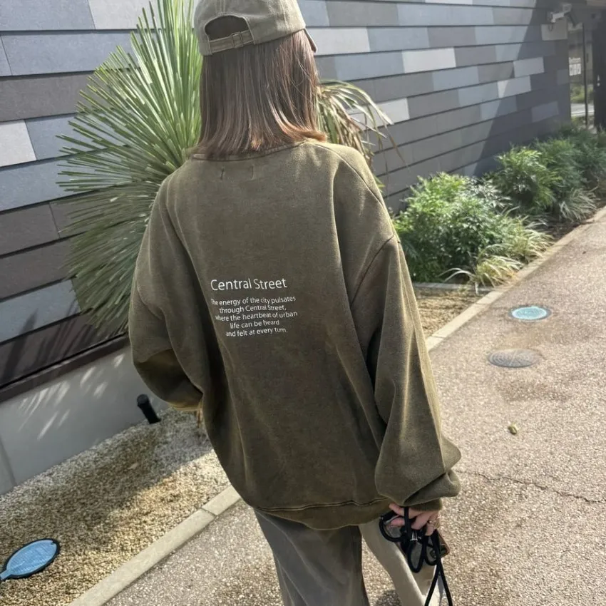 <分SIZE>裏起毛~水洗刷色加工字母印刷大學T
