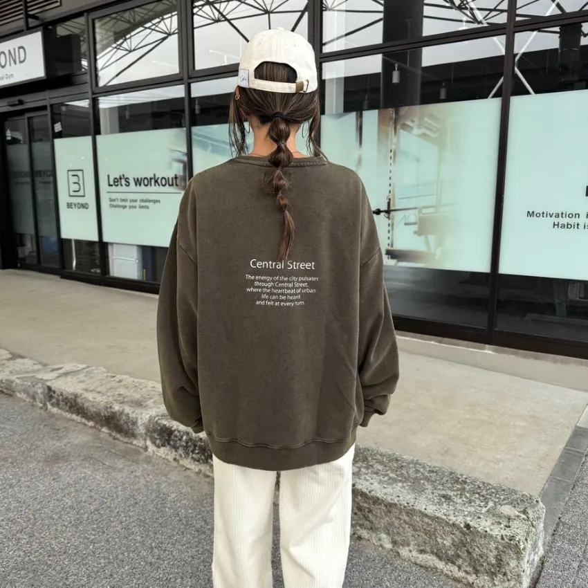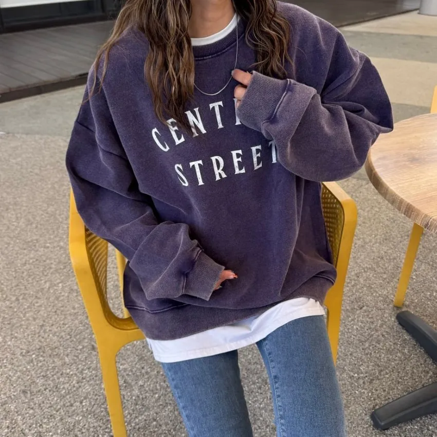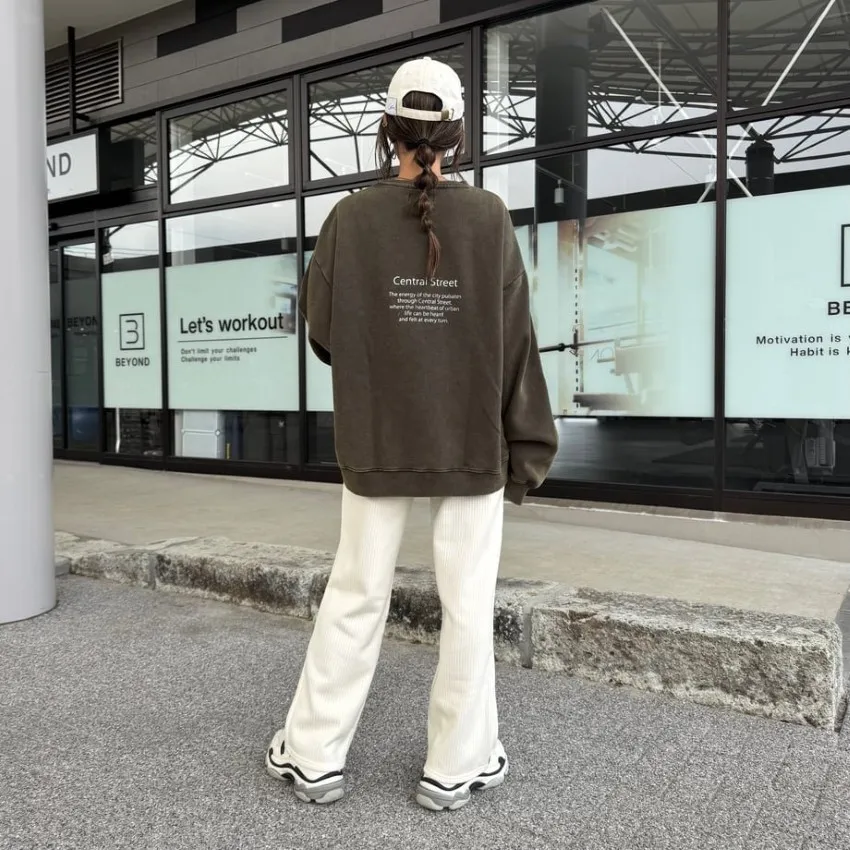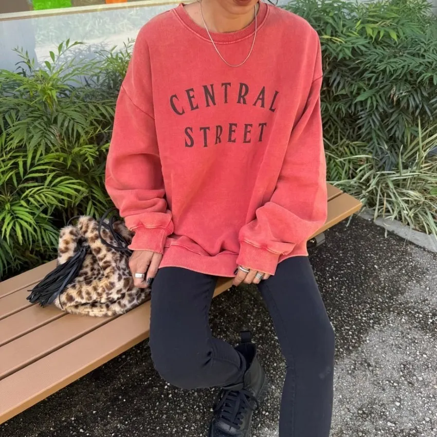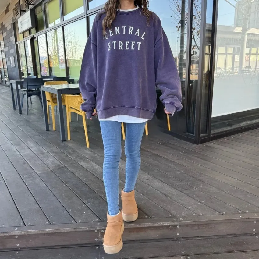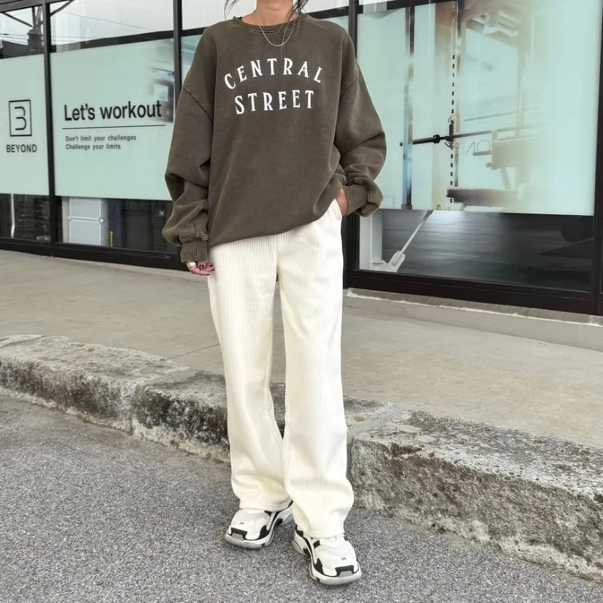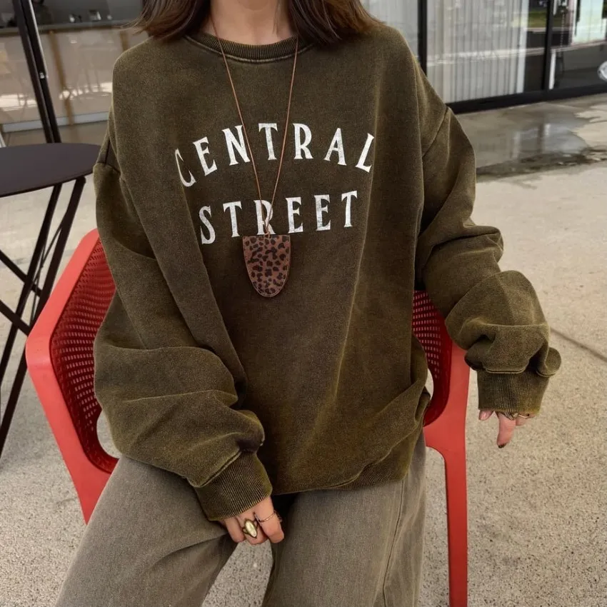 <分SIZE>裏起毛~水洗刷色加工字母印刷大學T