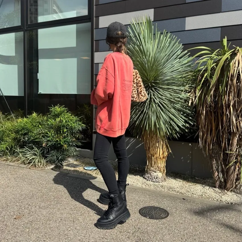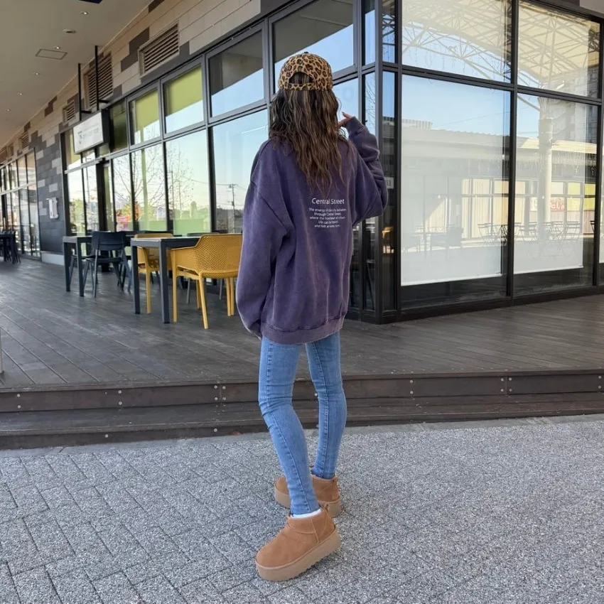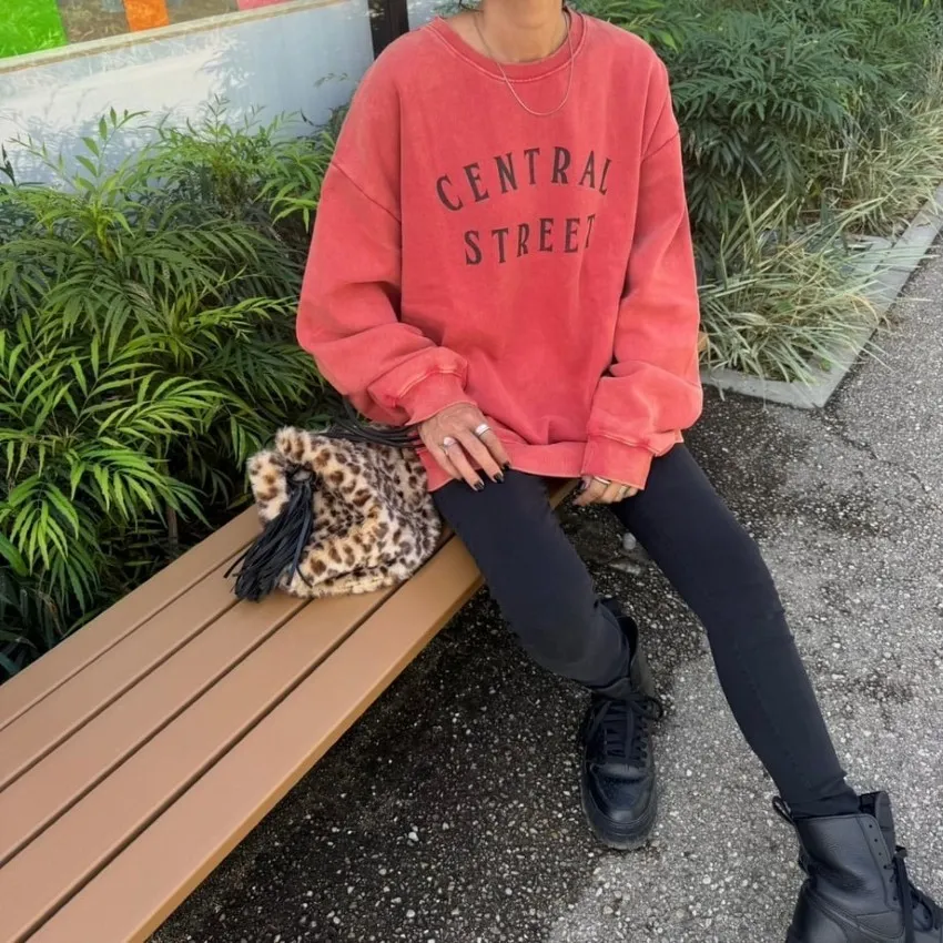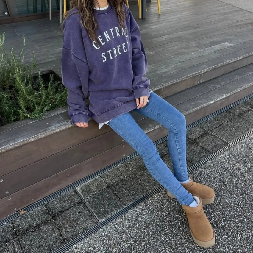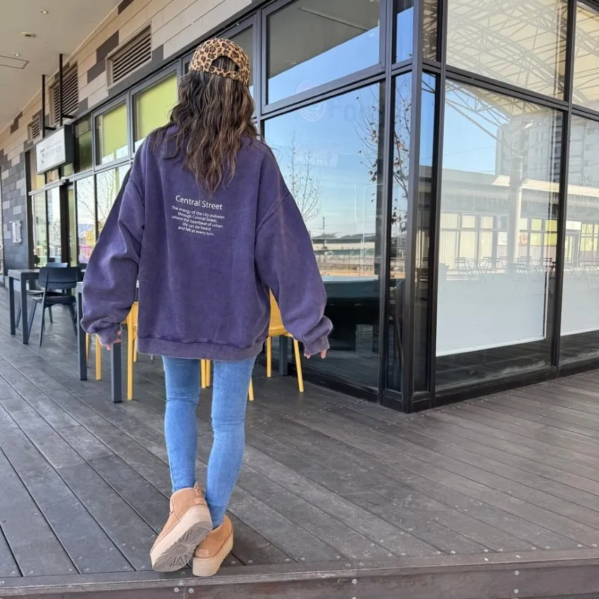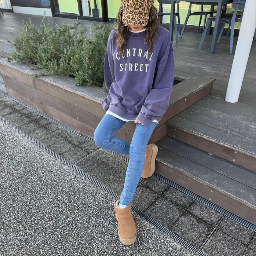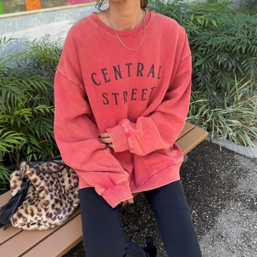 <分SIZE>裏起毛~水洗刷色加工字母印刷大學T