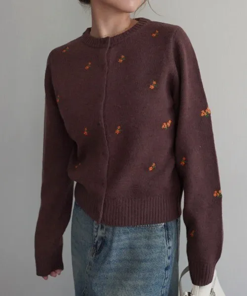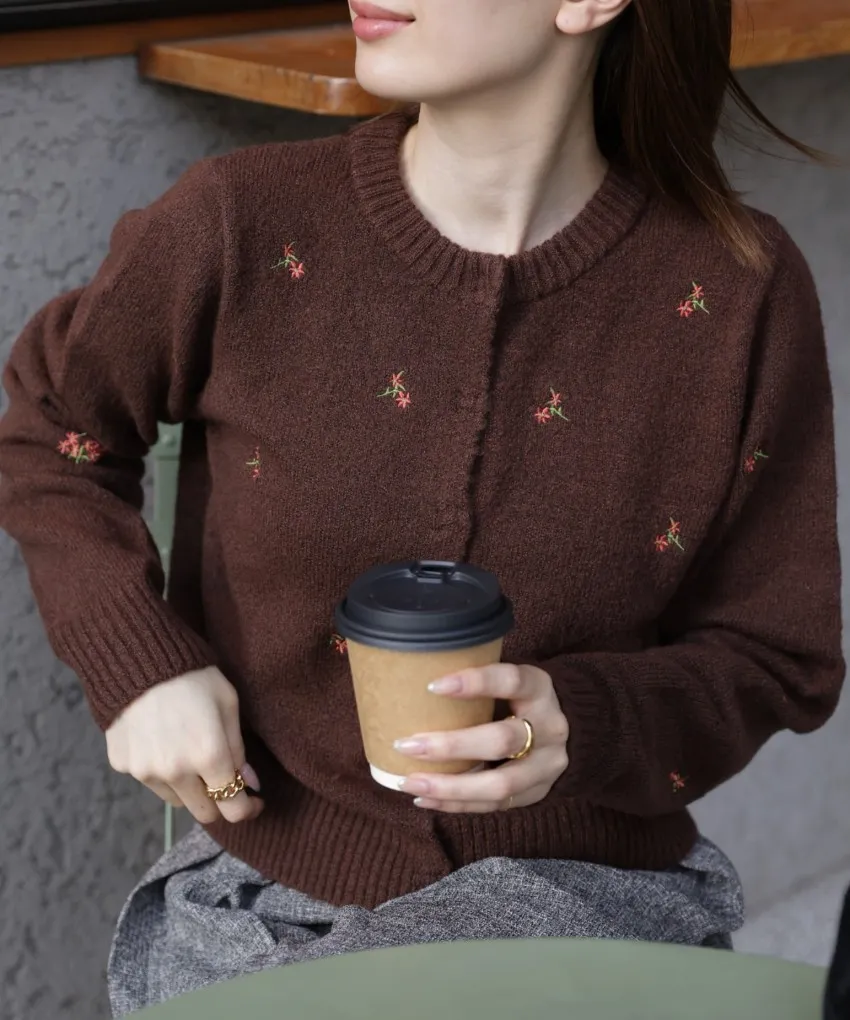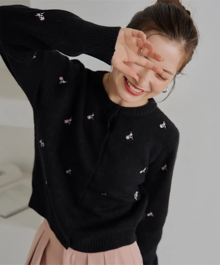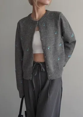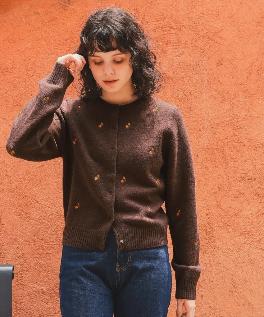 精緻可愛的小花刺繡針織外套