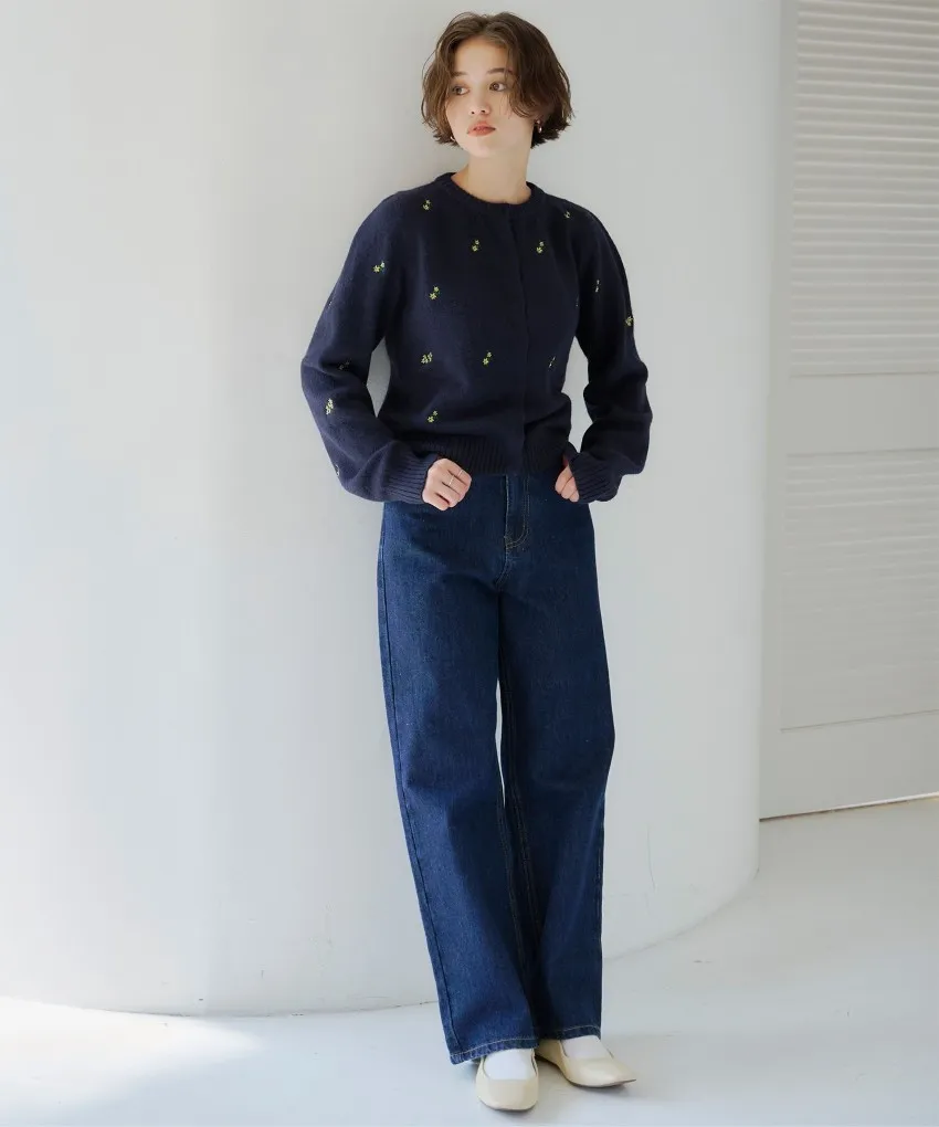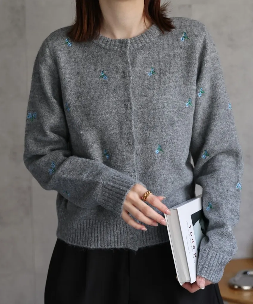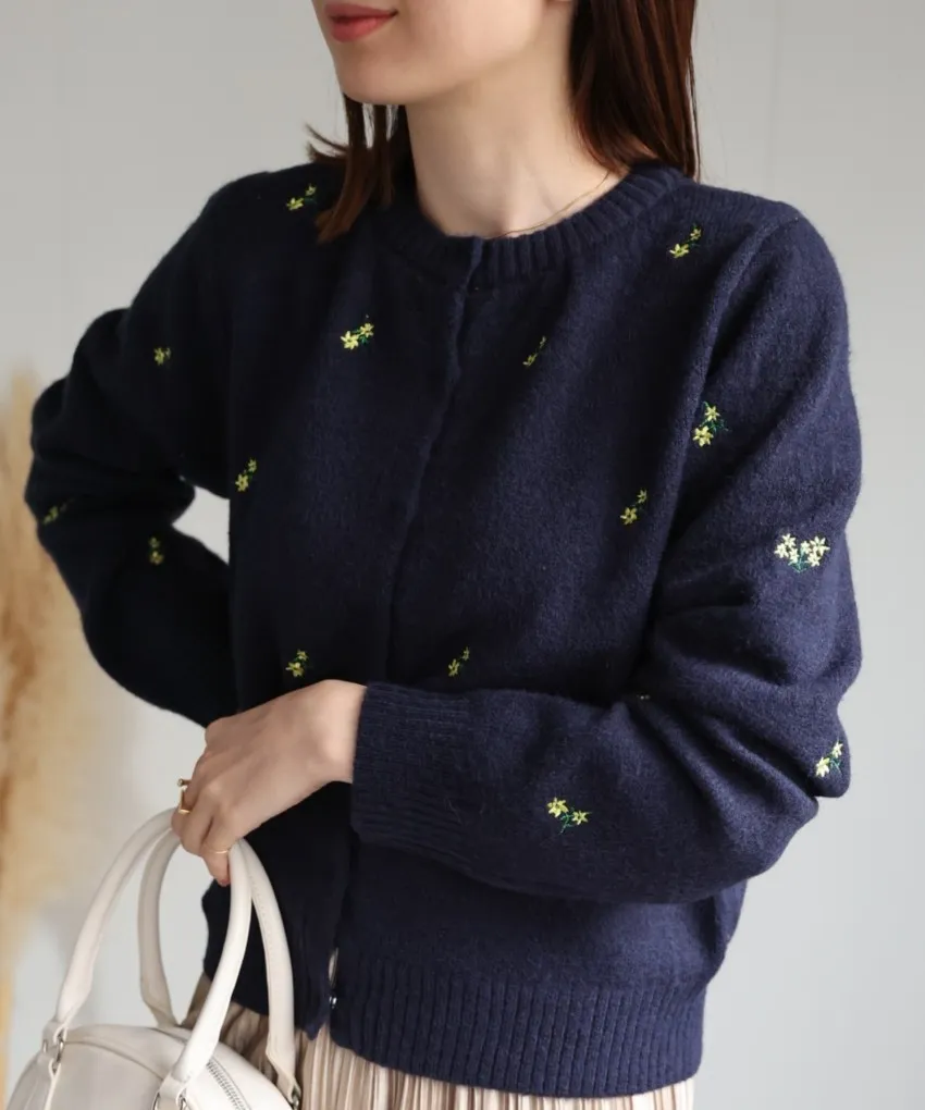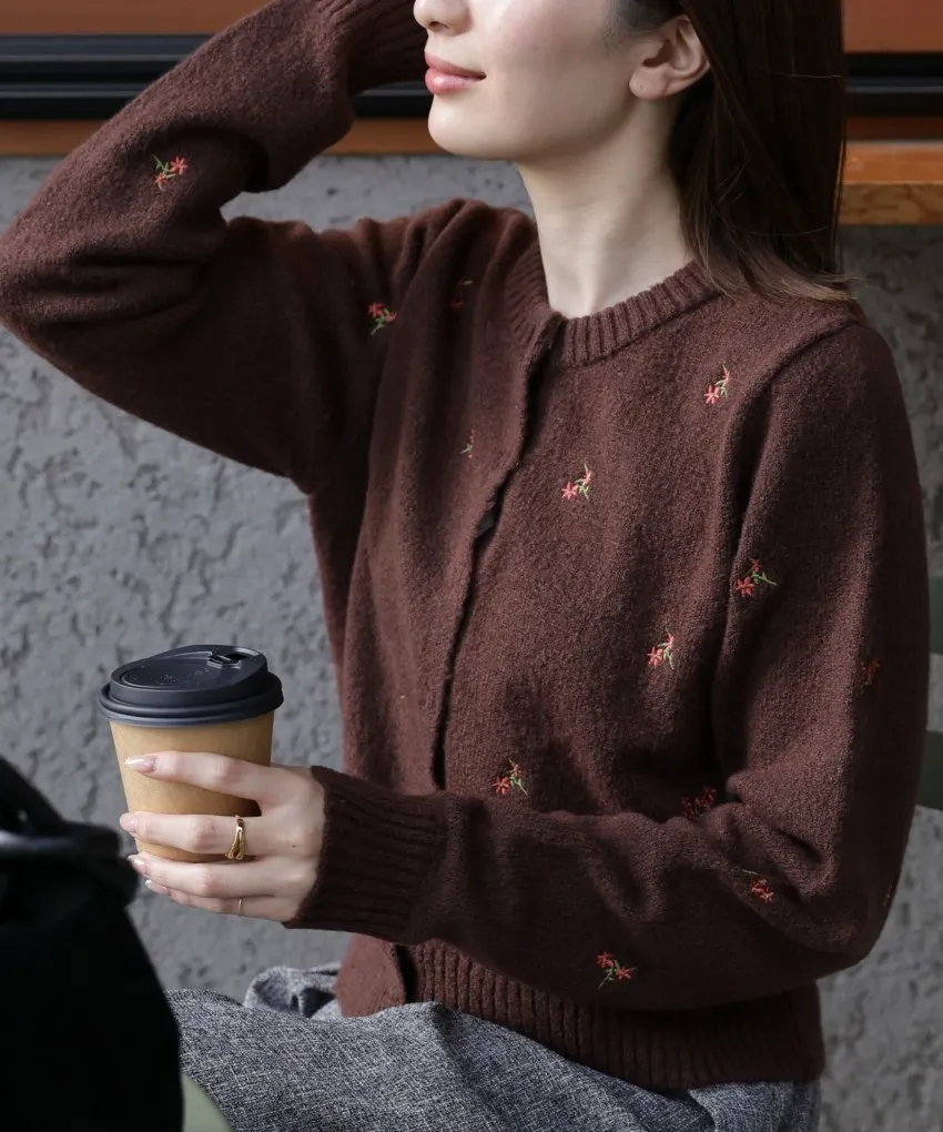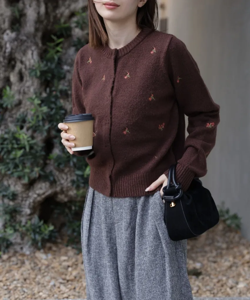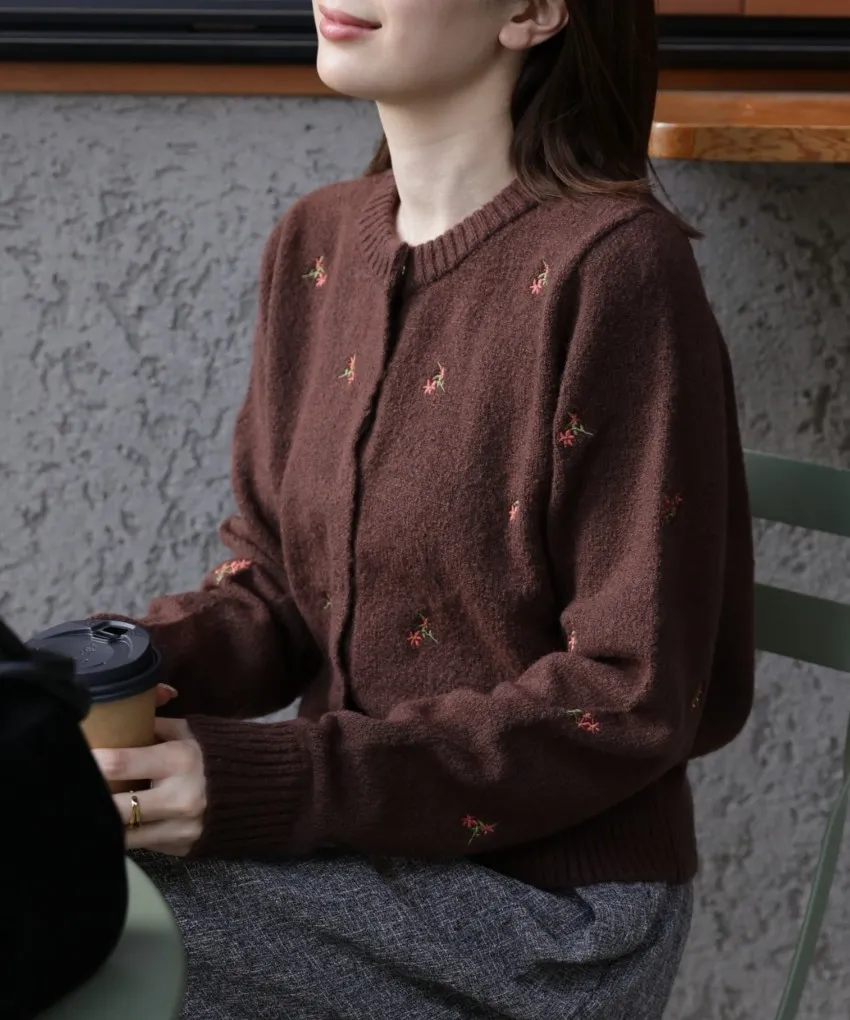 SALE~小花刺繡圓領針織外套