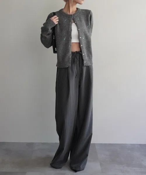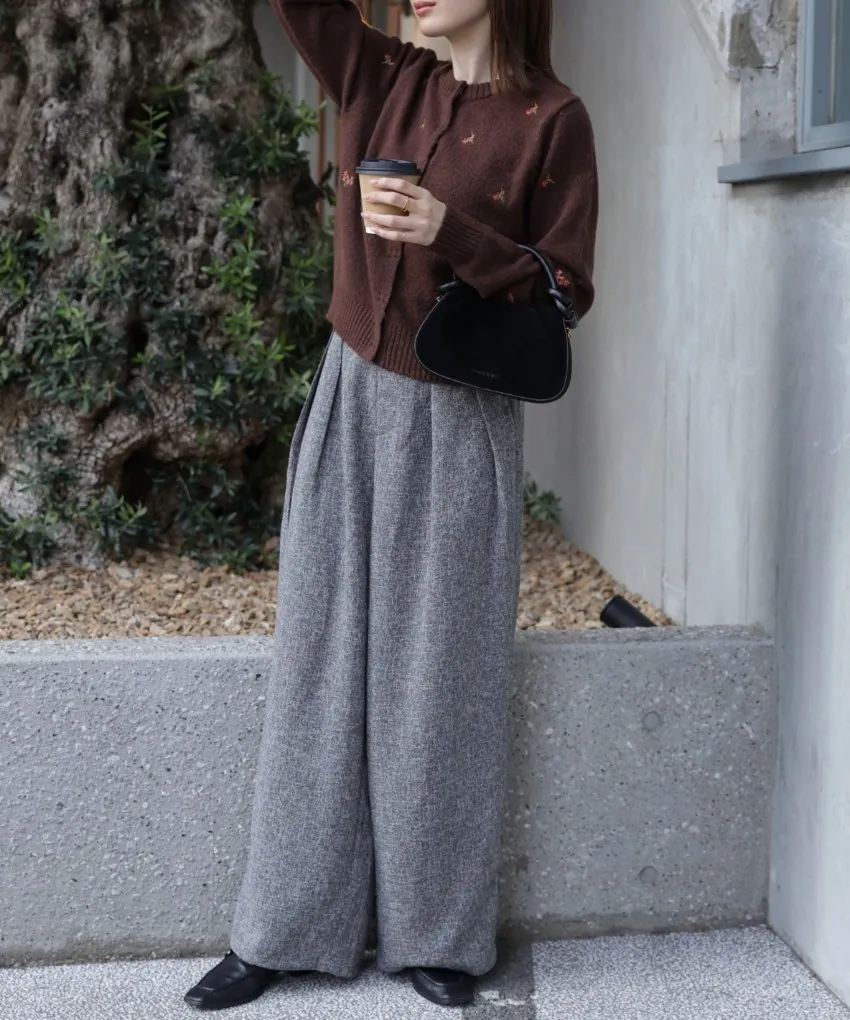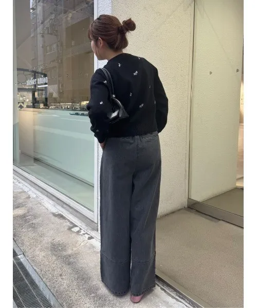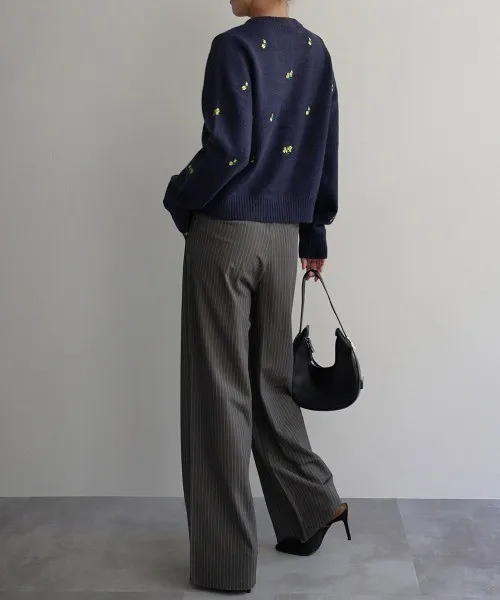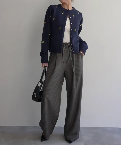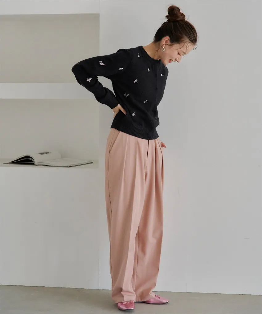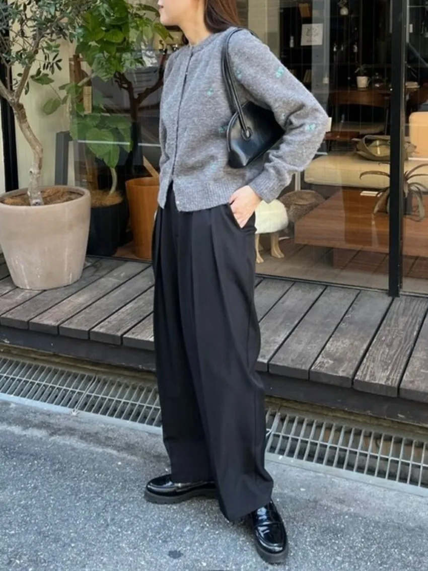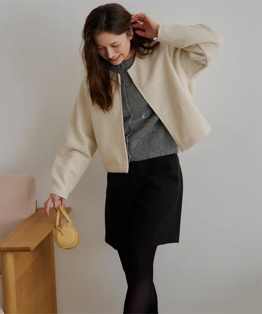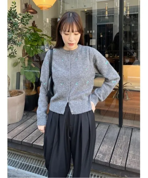 SALE~小花刺繡圓領針織外套