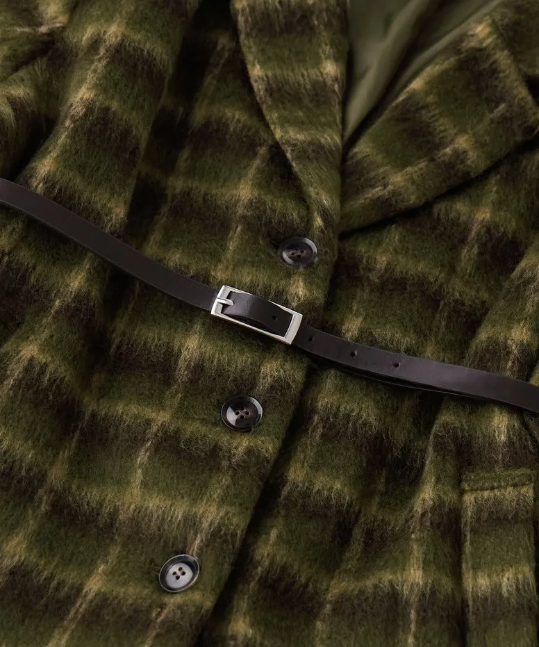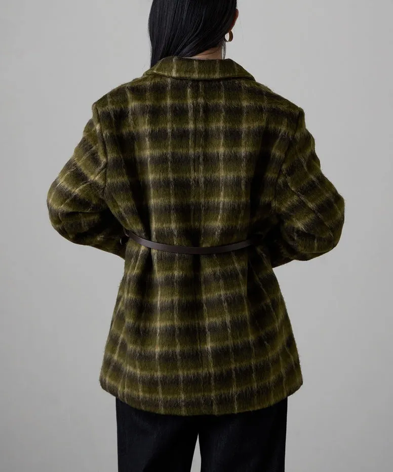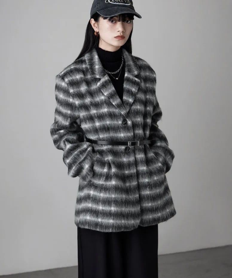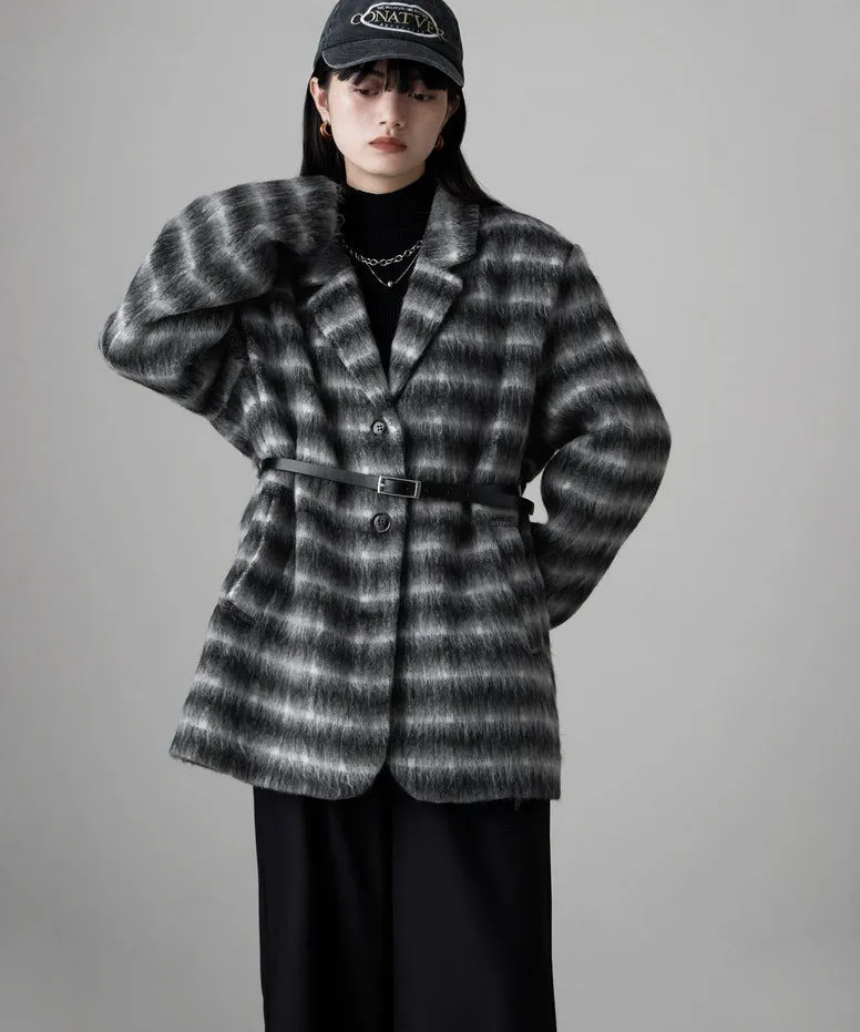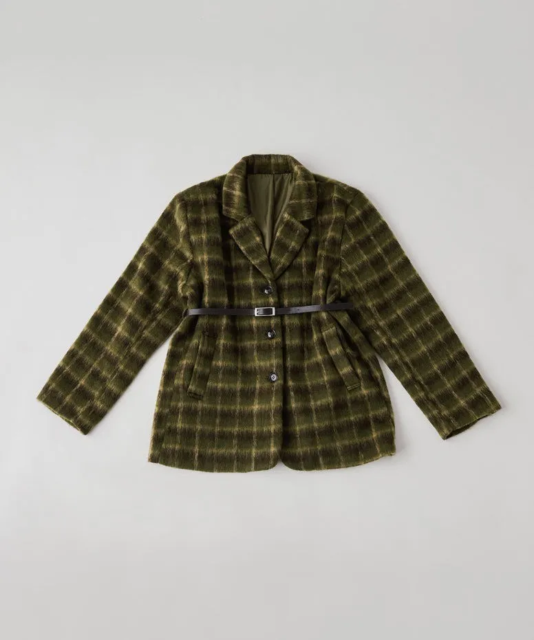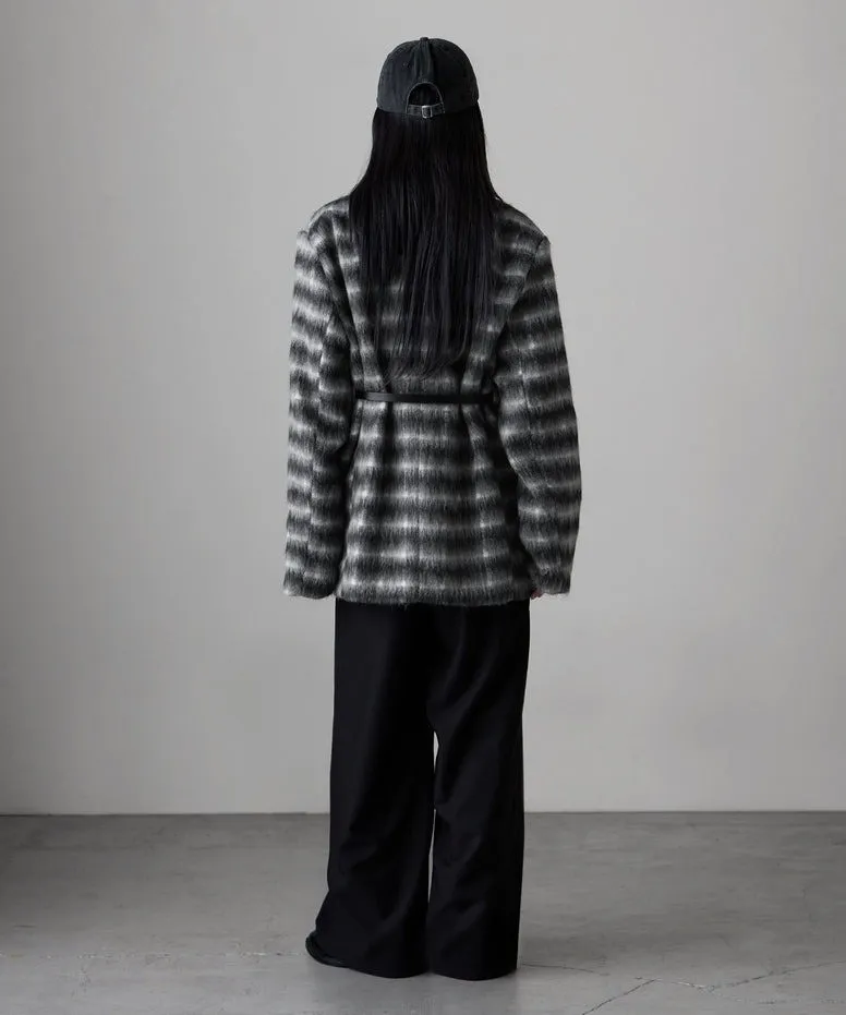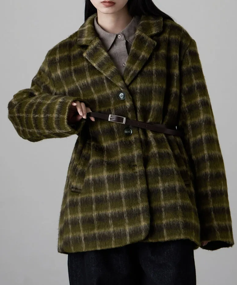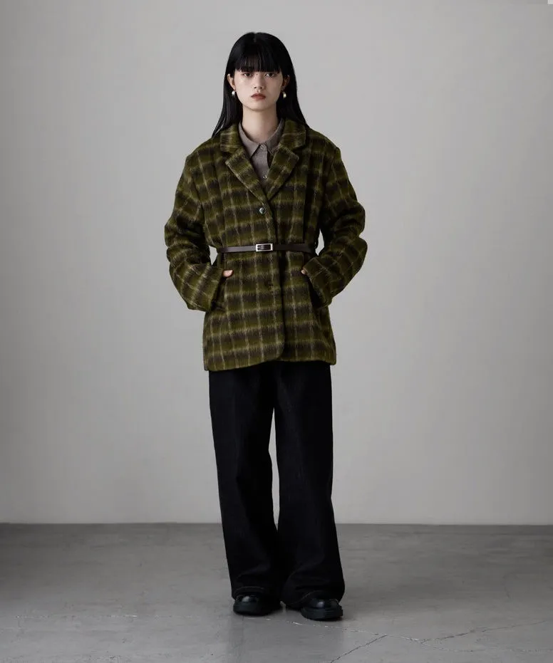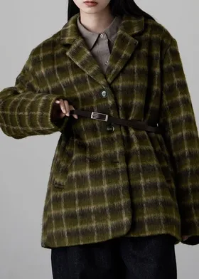 SALE~附腰帶~柔軟刷毛格紋西裝剪裁OVERSIZE大衣