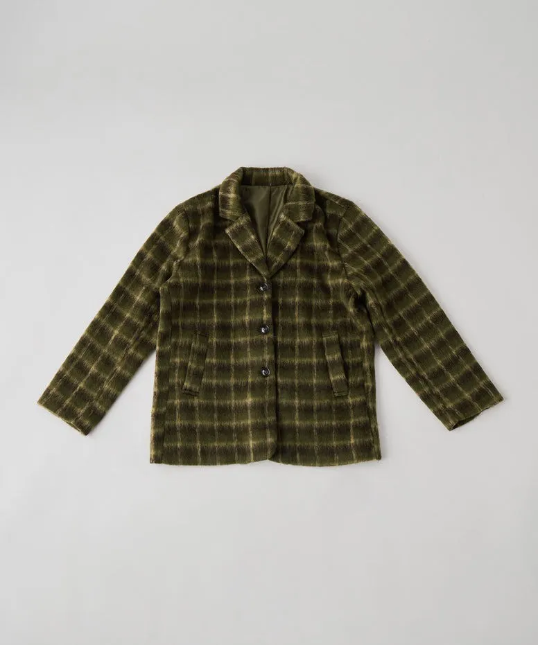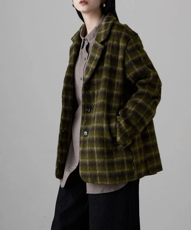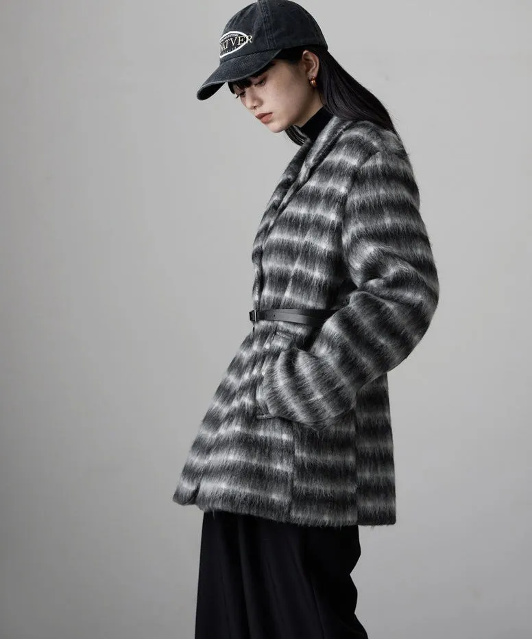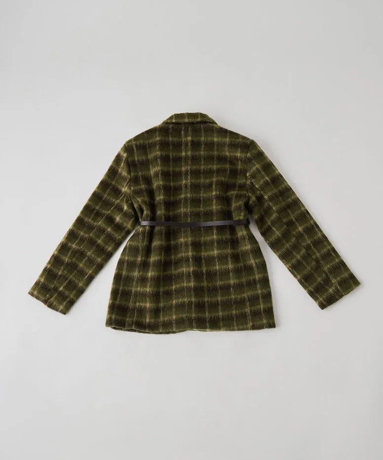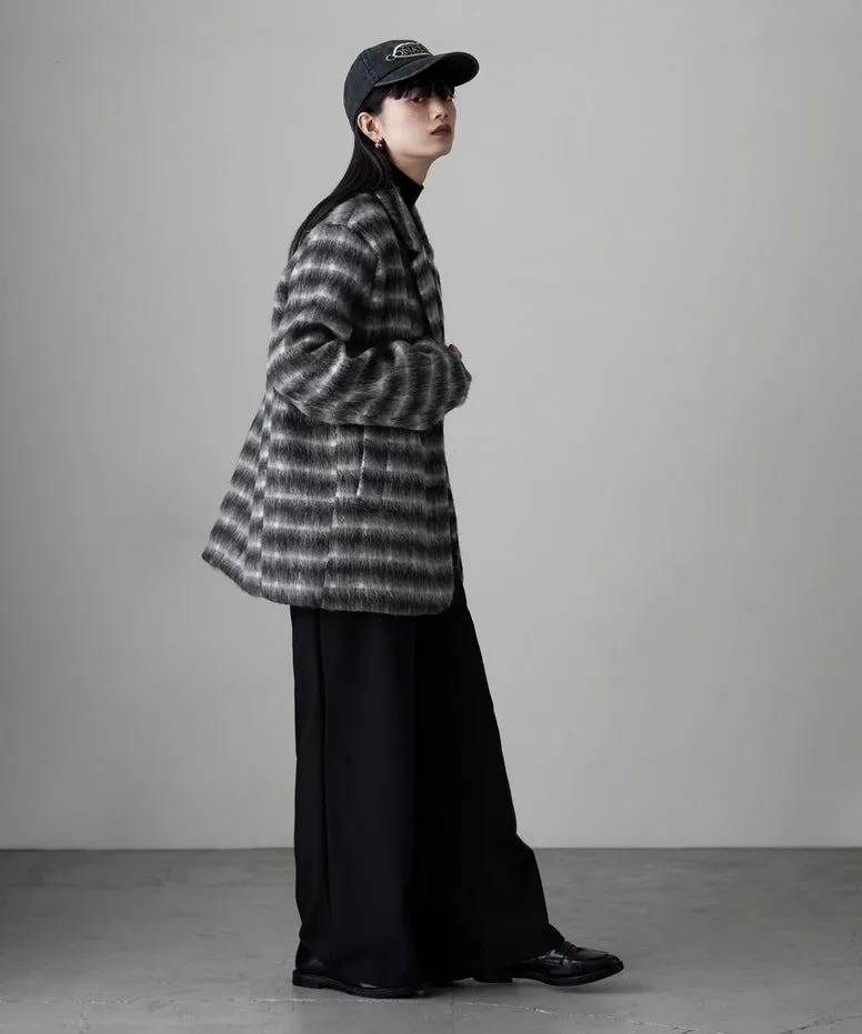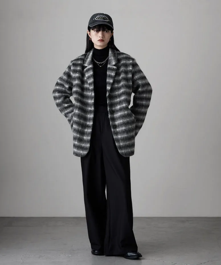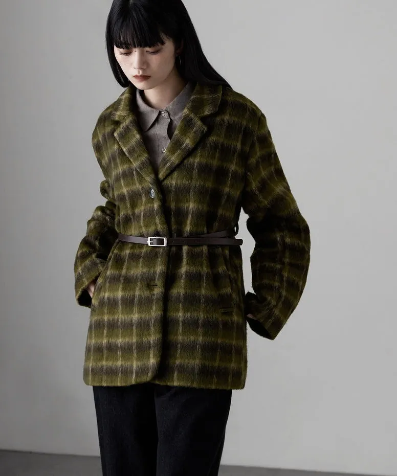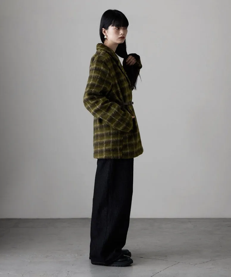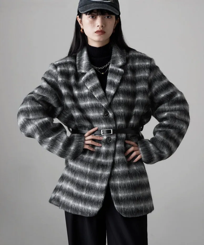 SALE~附腰帶~柔軟刷毛格紋西裝剪裁OVERSIZE大衣