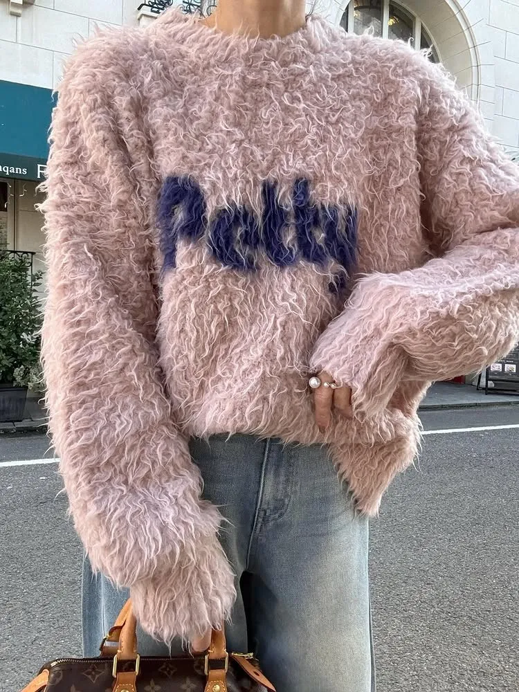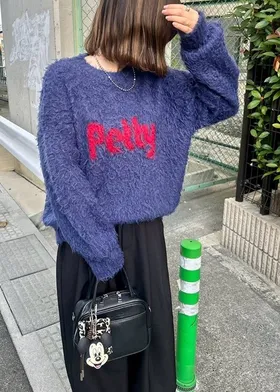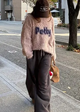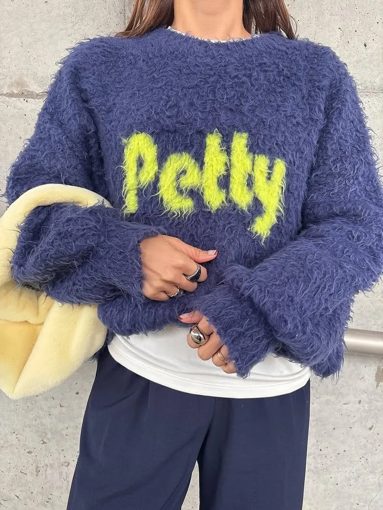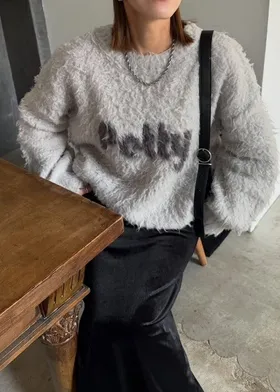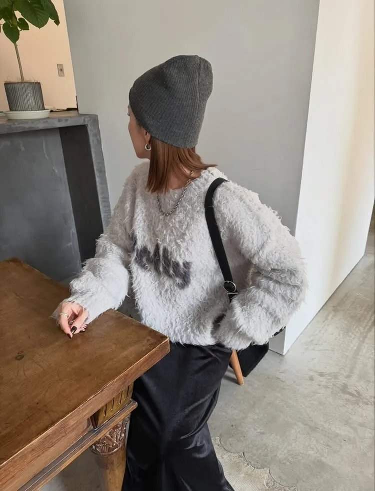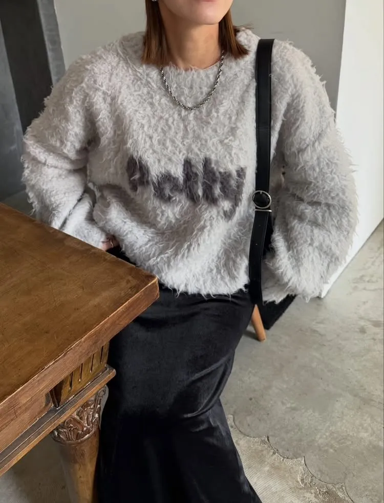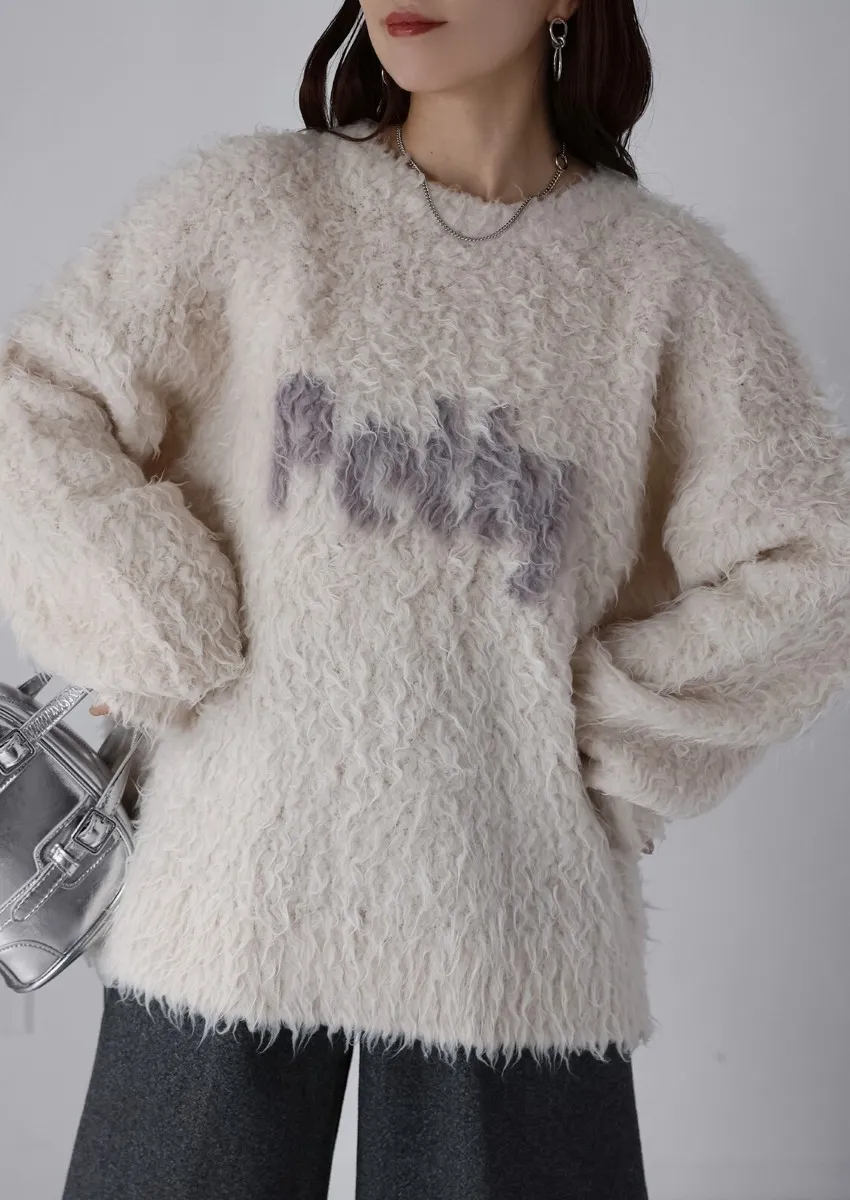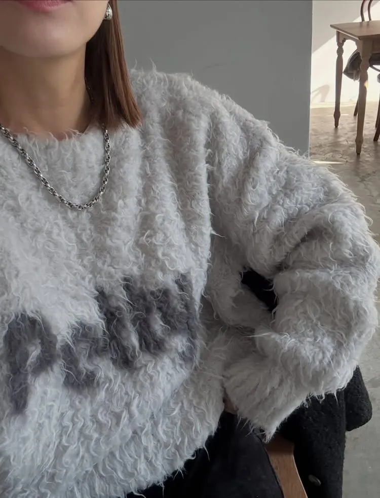 軟綿綿毛絨配色LOGO字母毛衣