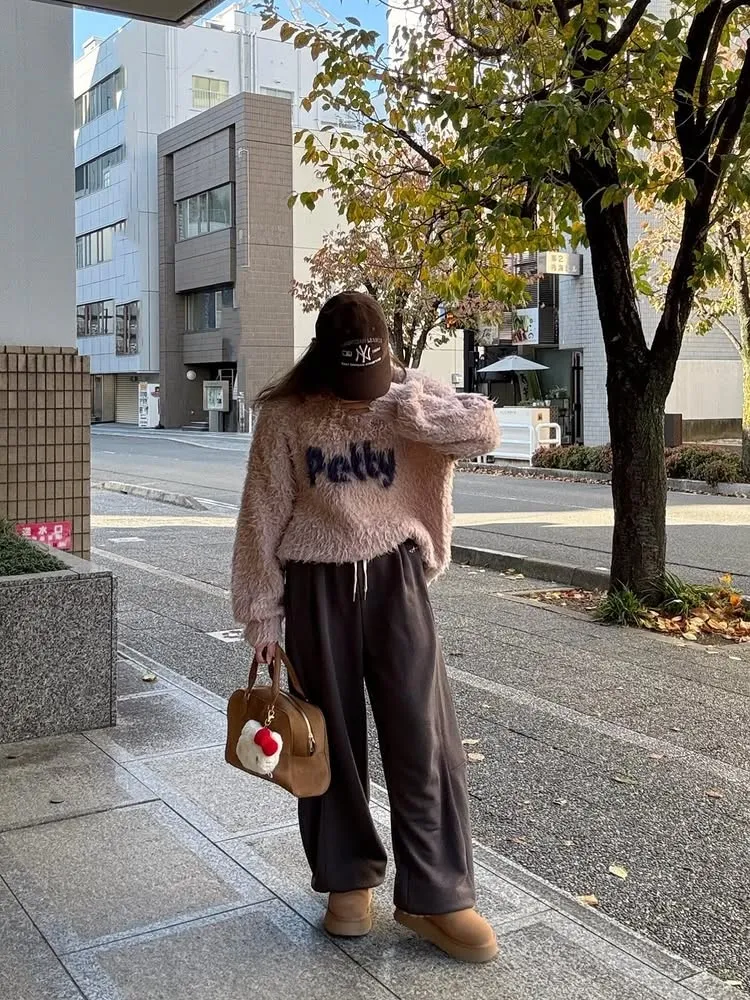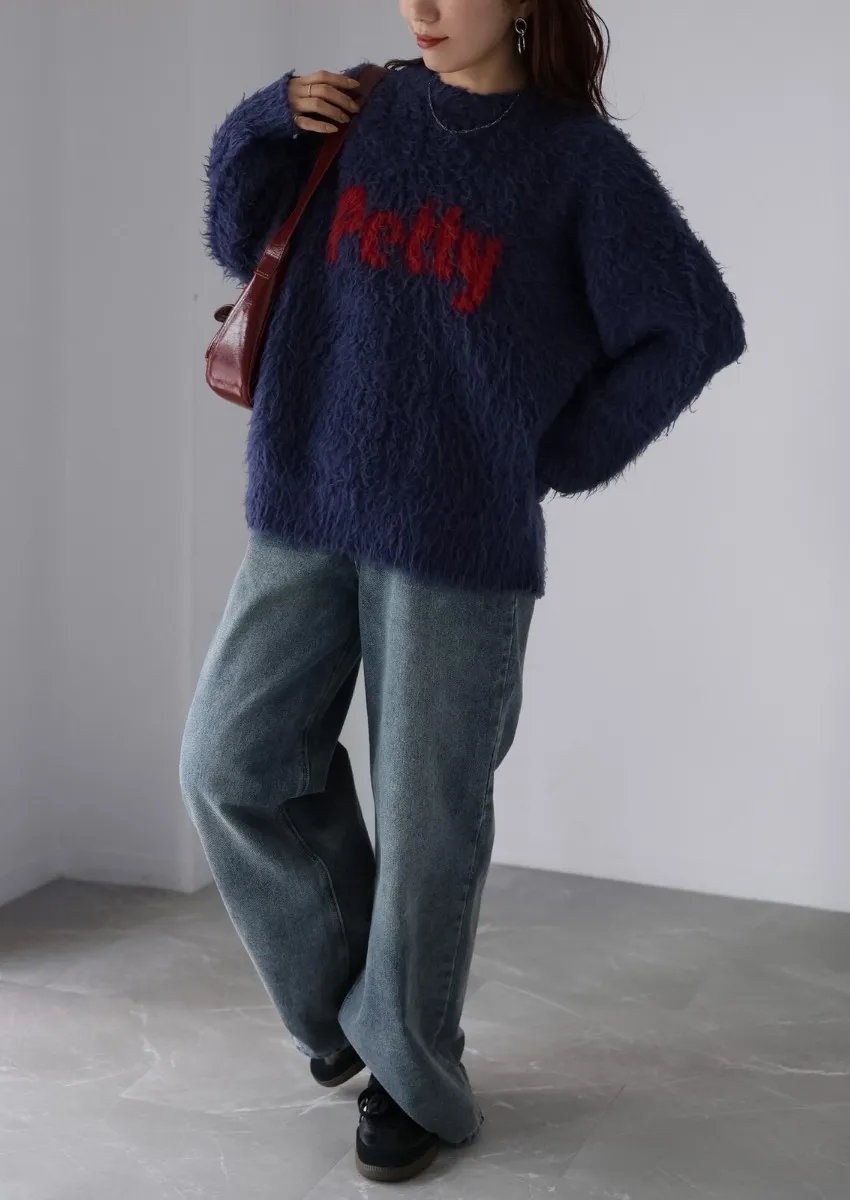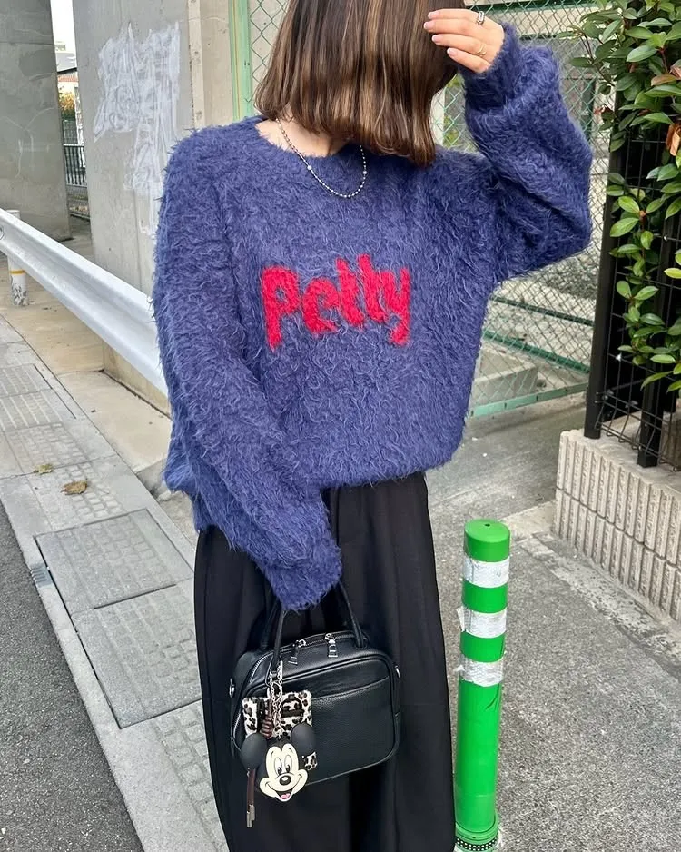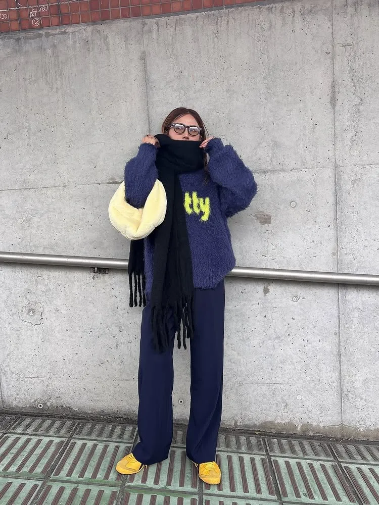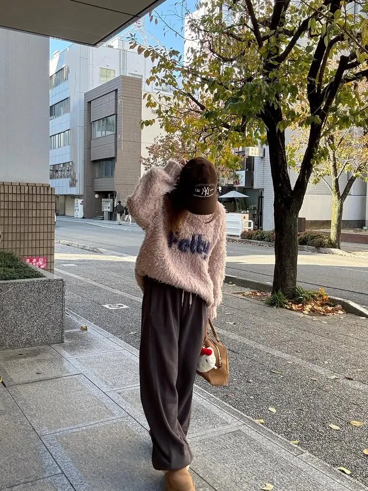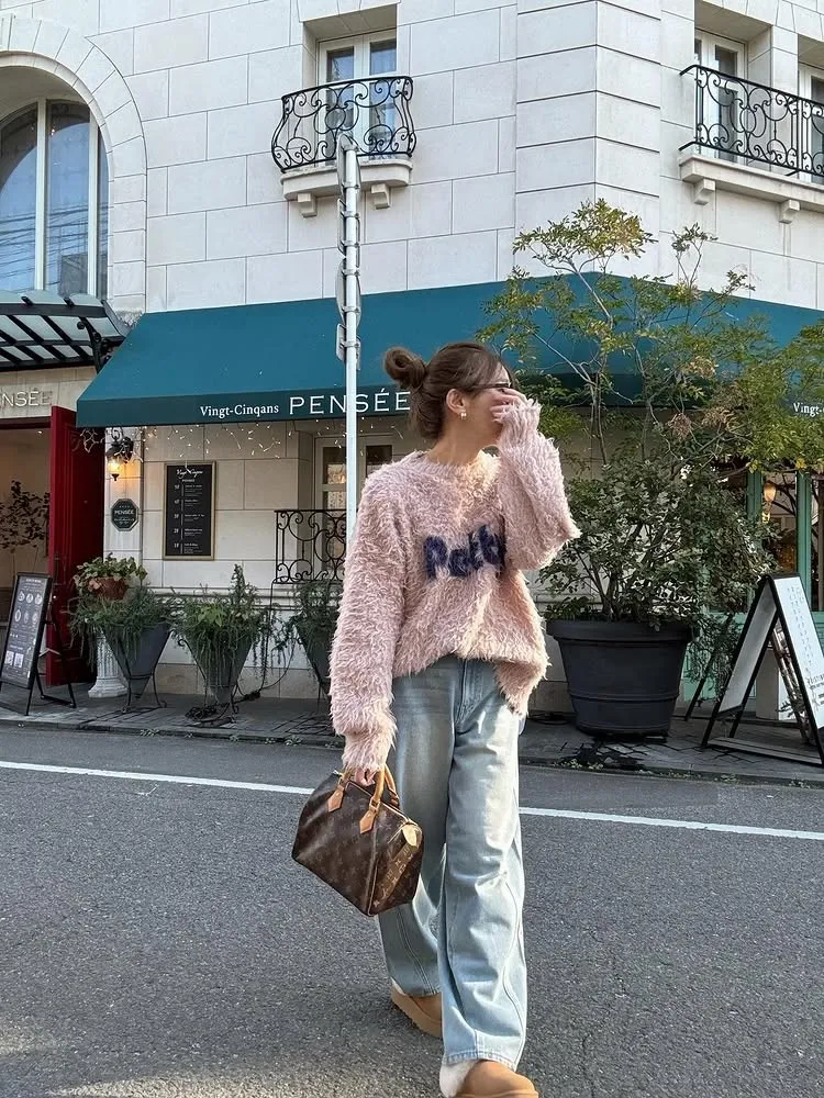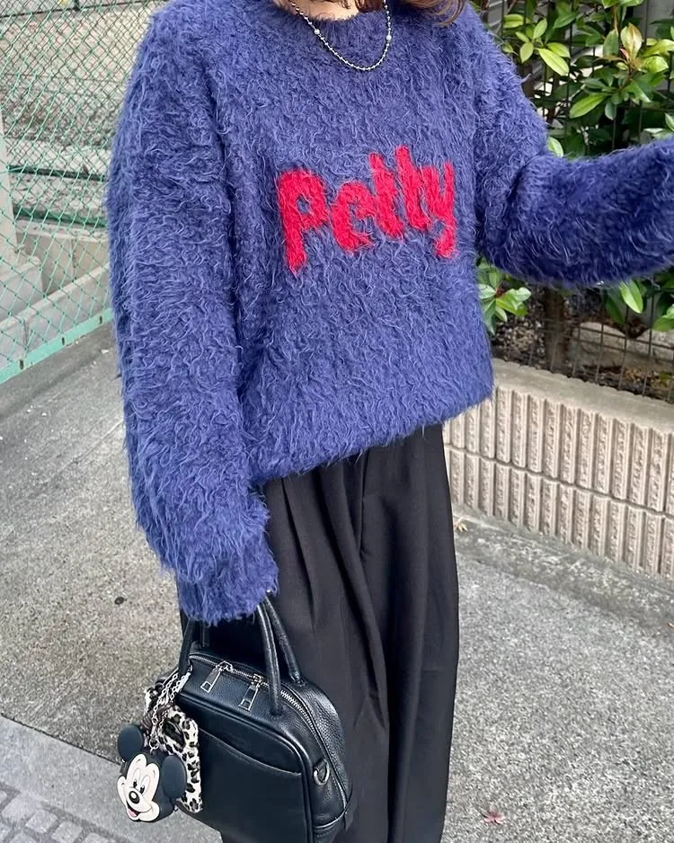 軟綿綿毛絨配色LOGO字母毛衣