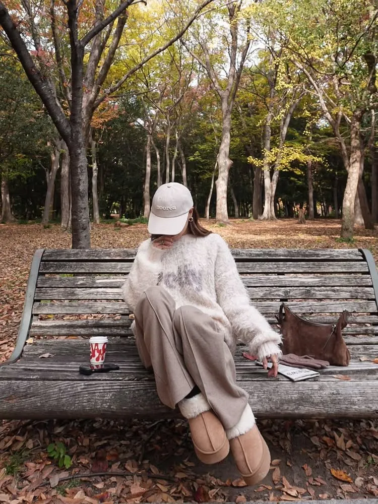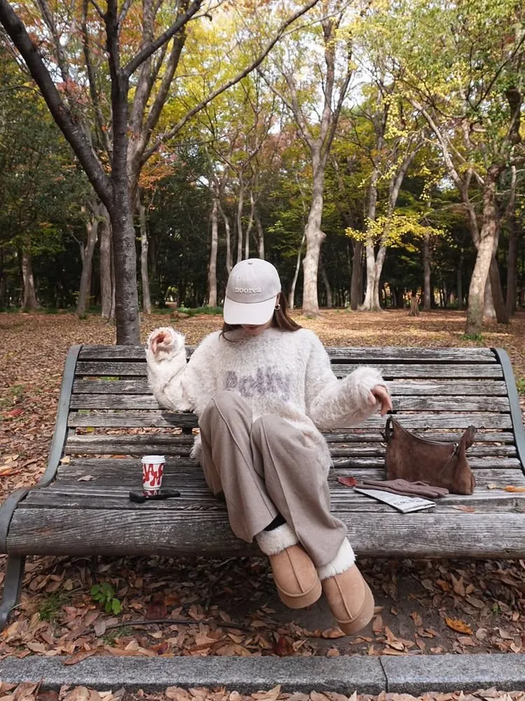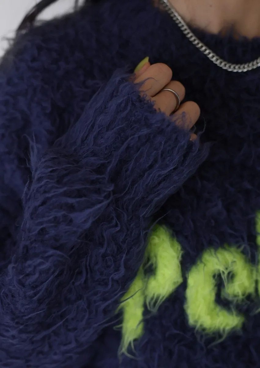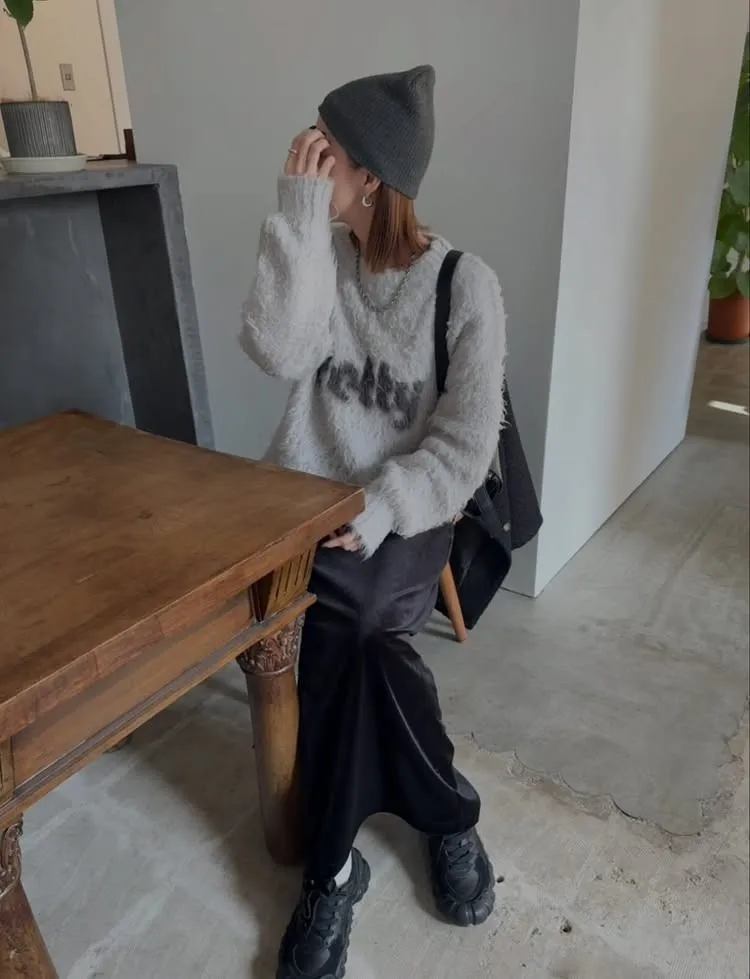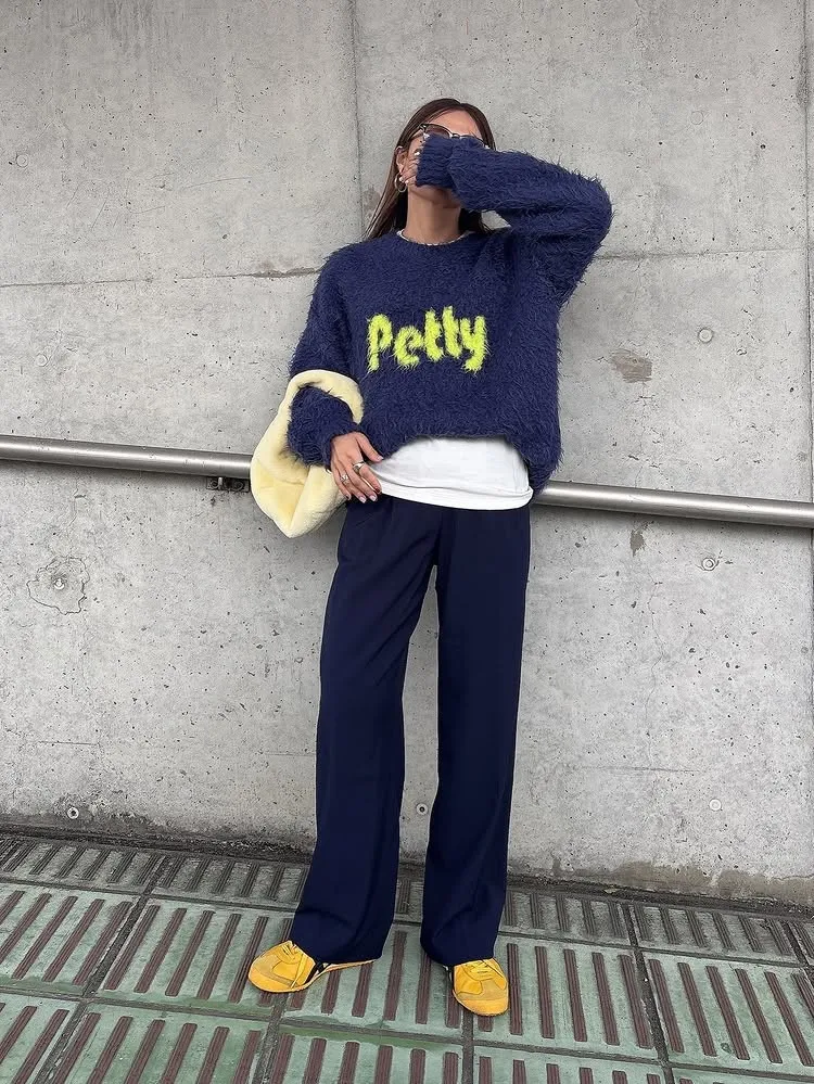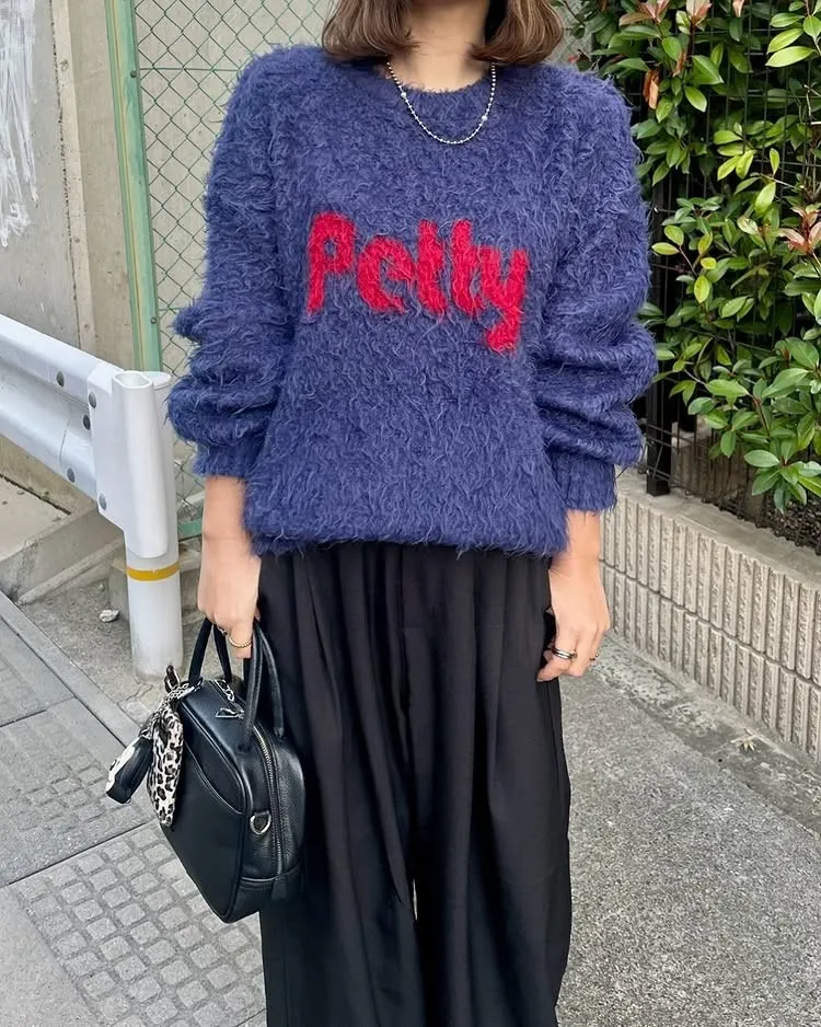 軟綿綿毛絨配色LOGO字母毛衣