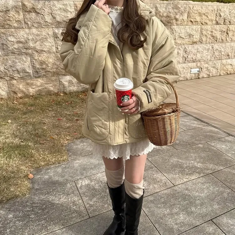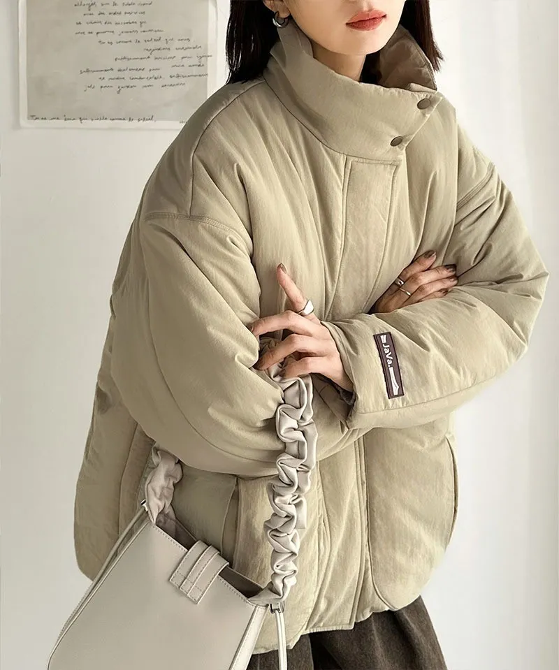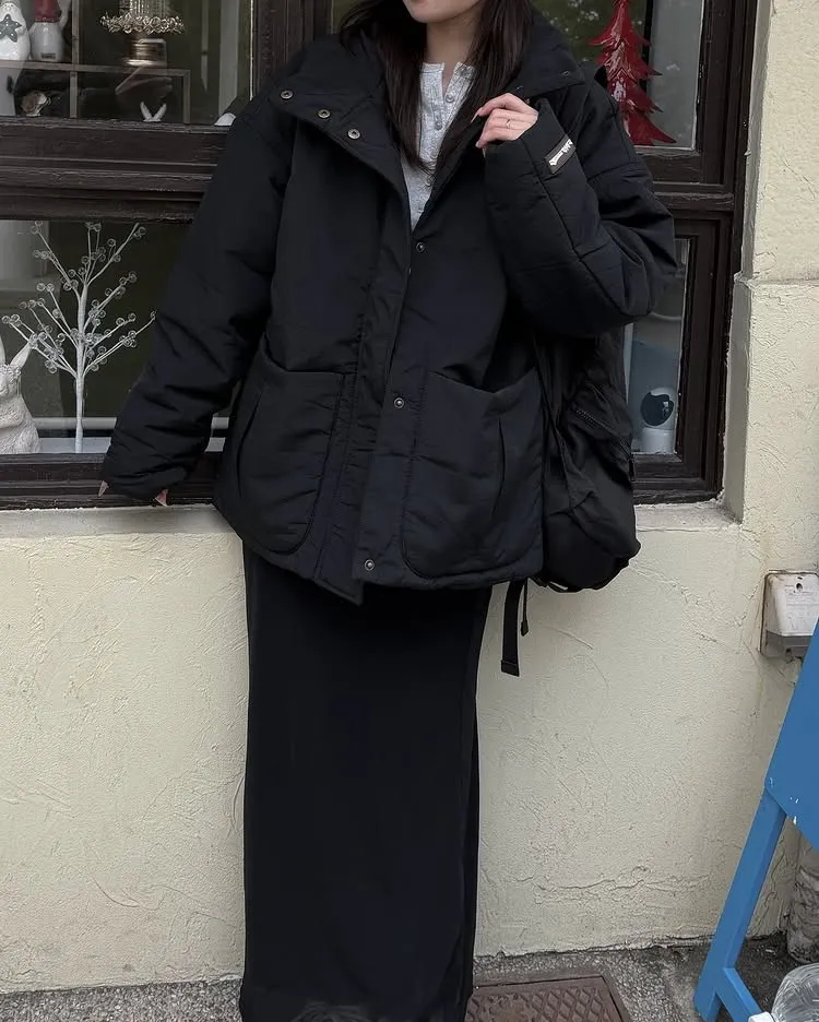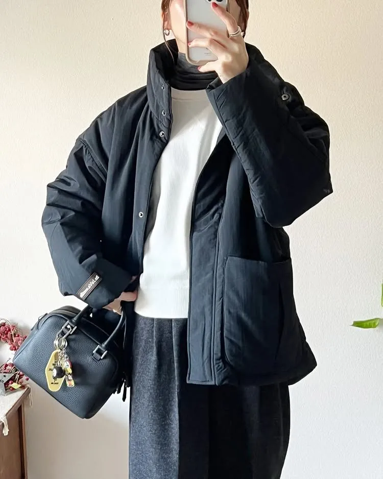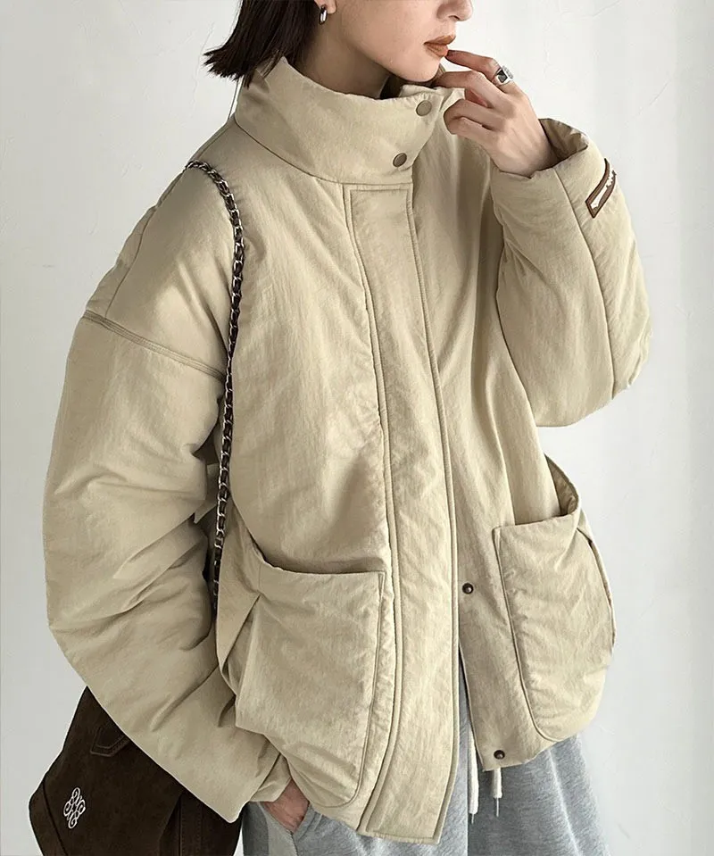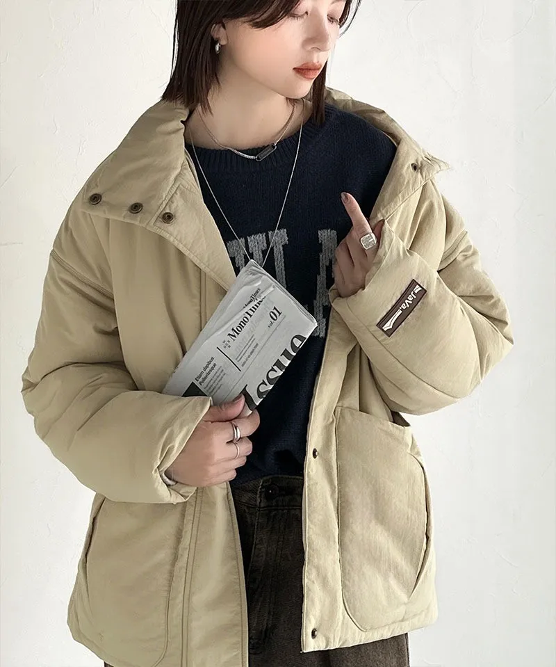 ■細節 以復古滑雪夾克為基礎, 安排尺寸平衡以符合當前趨勢。 立領+立體兜帽讓臉看起來更小◎ 由輕質溫暖的棉絮材料製成 這款秋冬服裝肯定會大受歡迎。