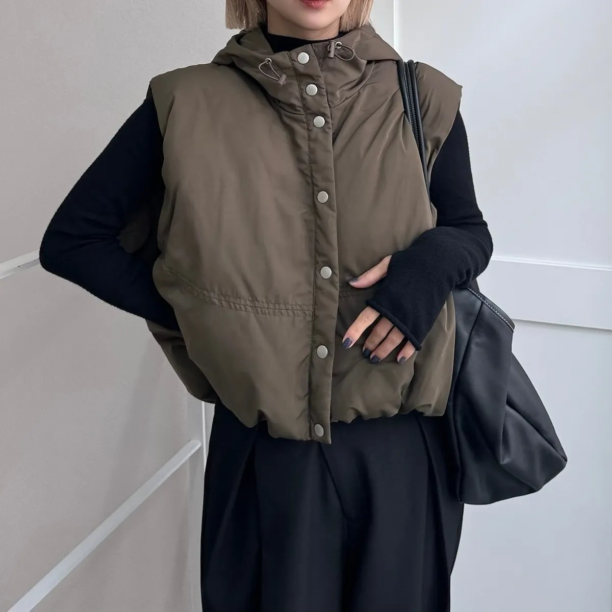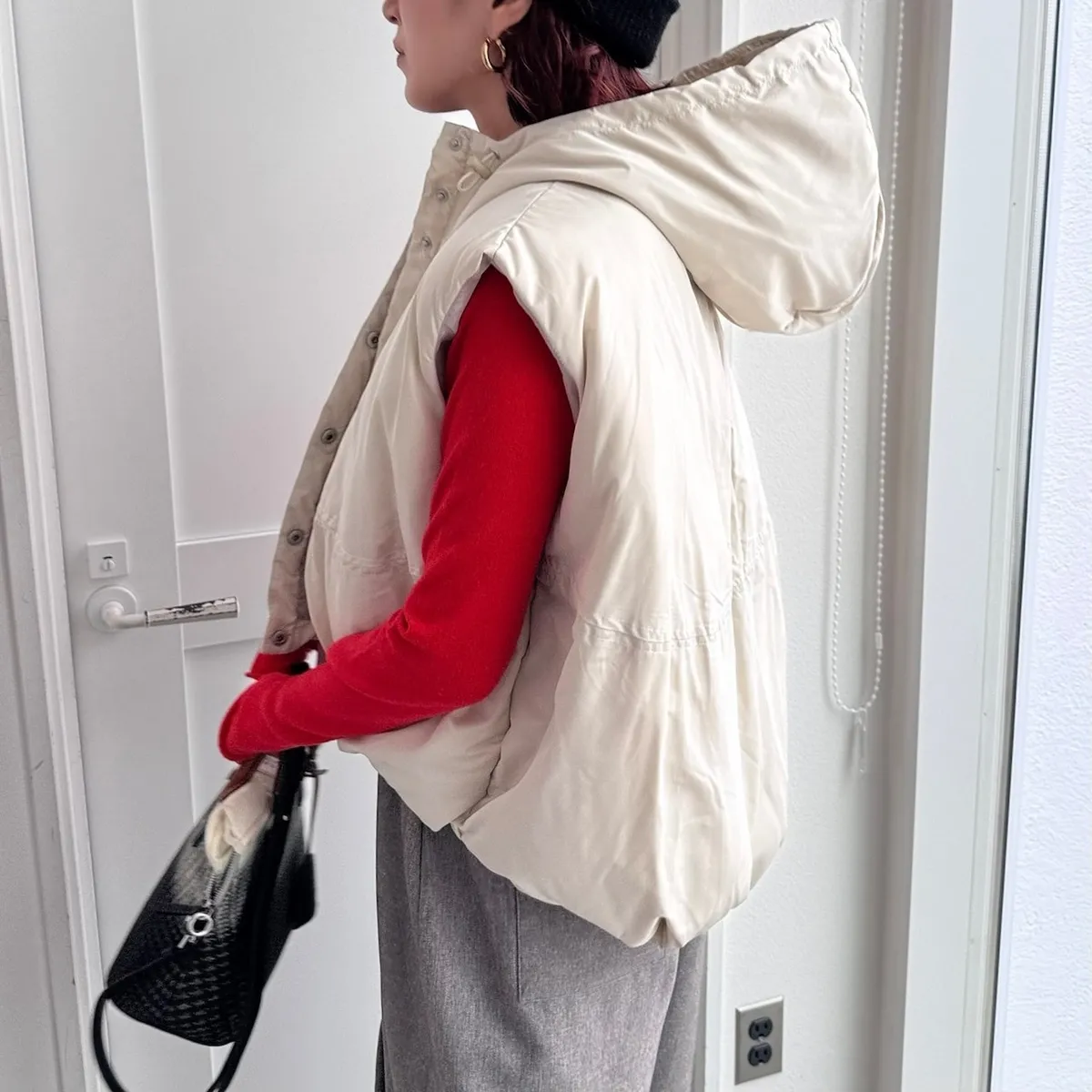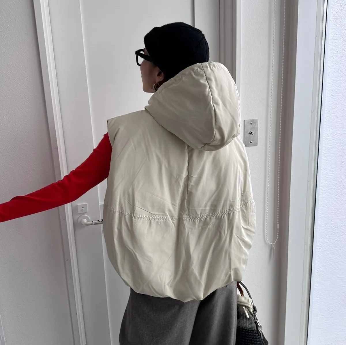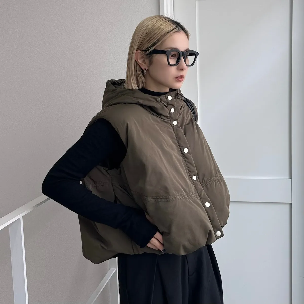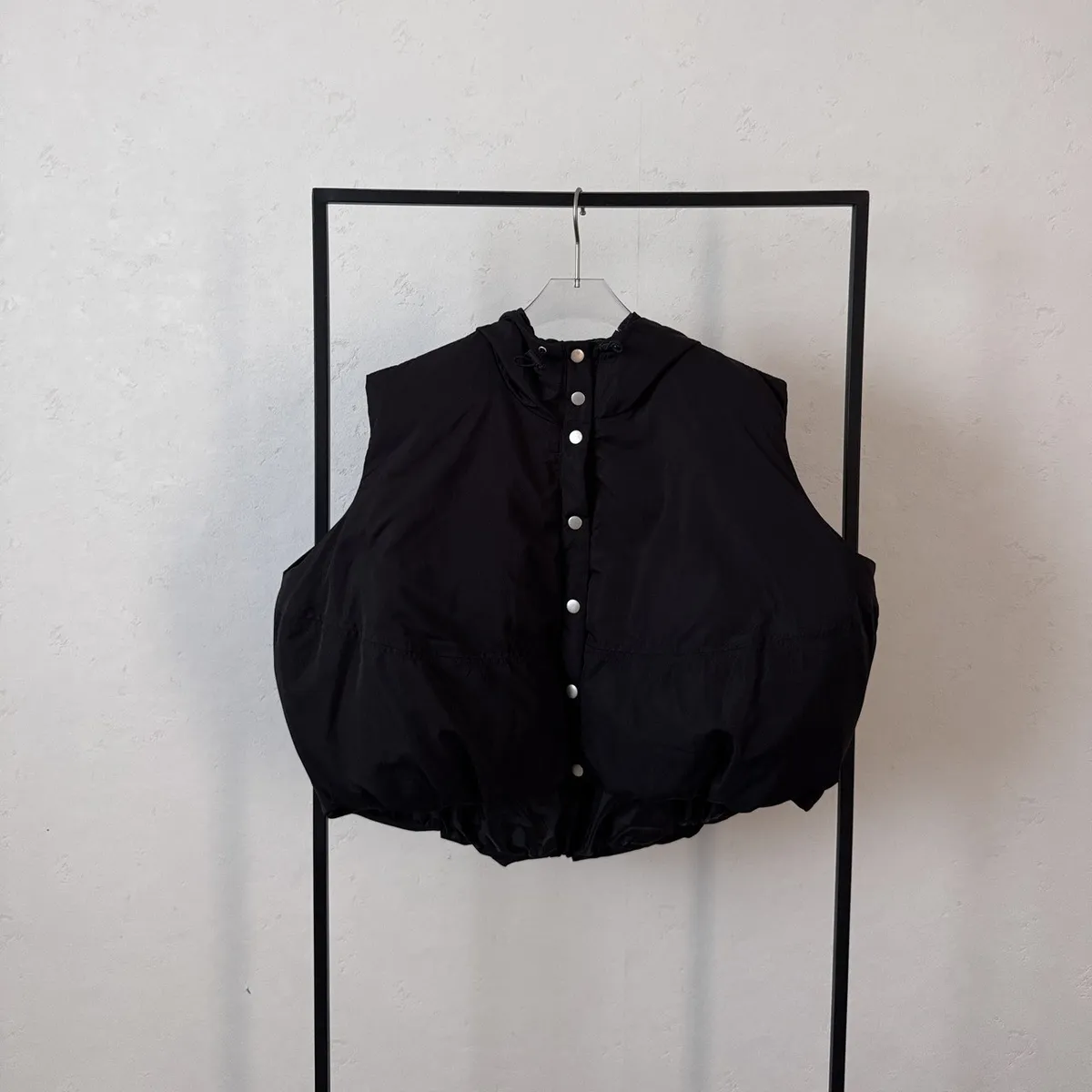 連帽款登場^^太可愛了俏皮可愛的短版鋪棉背心南瓜造型澎度短版長度搭配寬鬆輪廓弧形剪裁設計兩側有口袋 實用度雙頭拉鍊設計內搭澎袖布卡卡無領設計也很適合搭配高領或帽T四色小幫自留黑色喔~4色都好搭~請不要錯過剛好有會員折扣