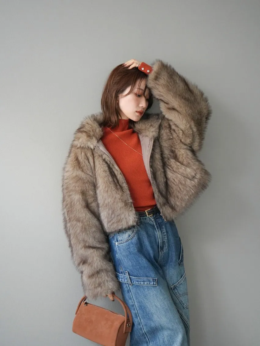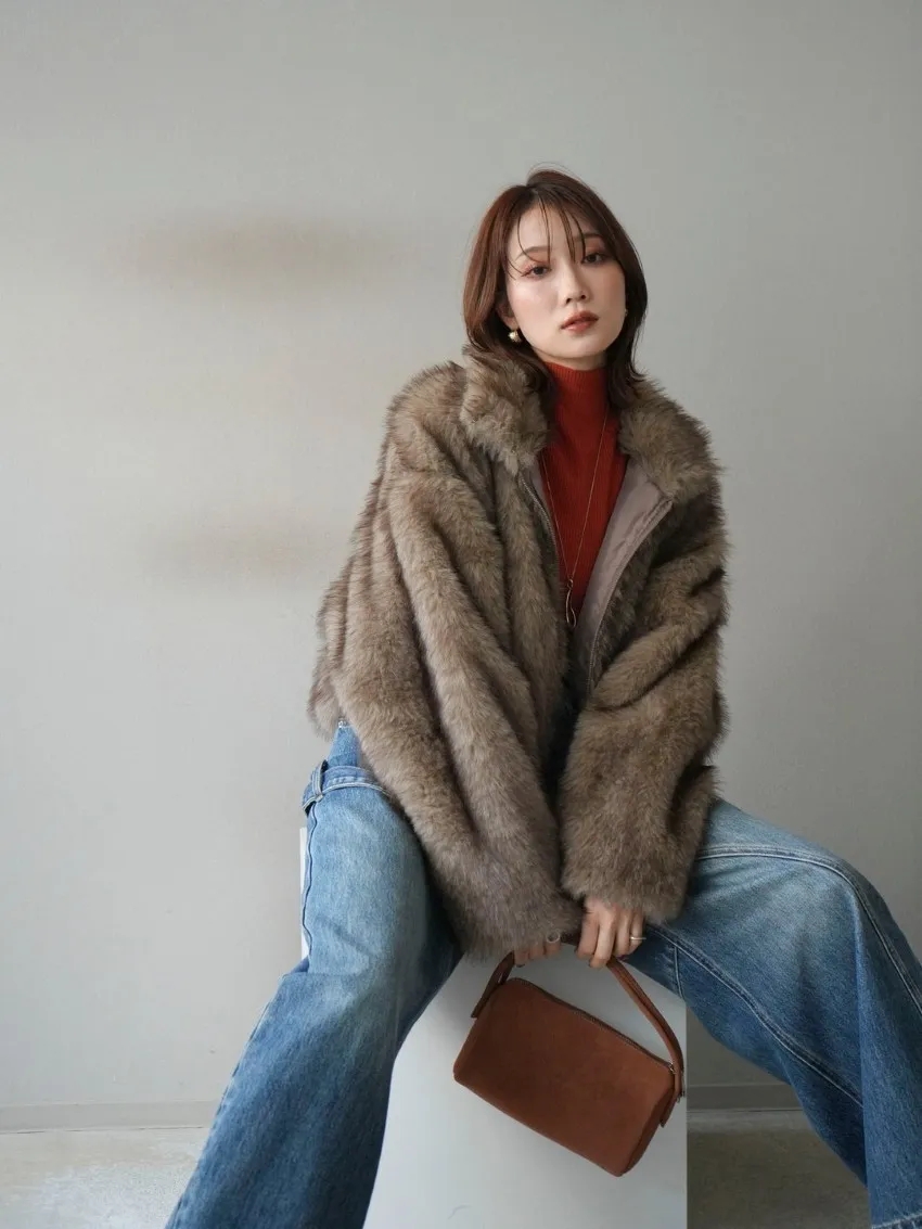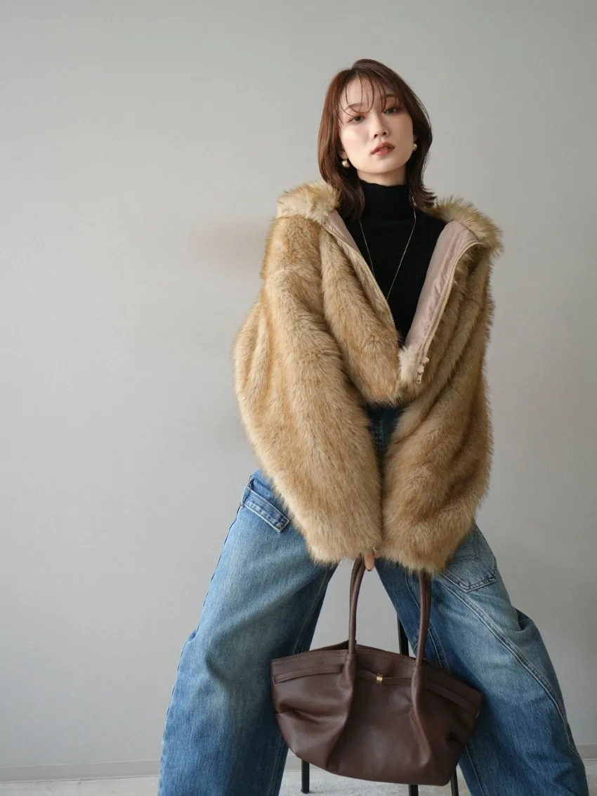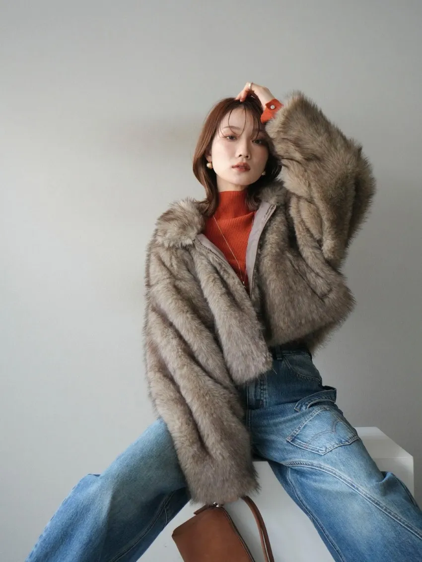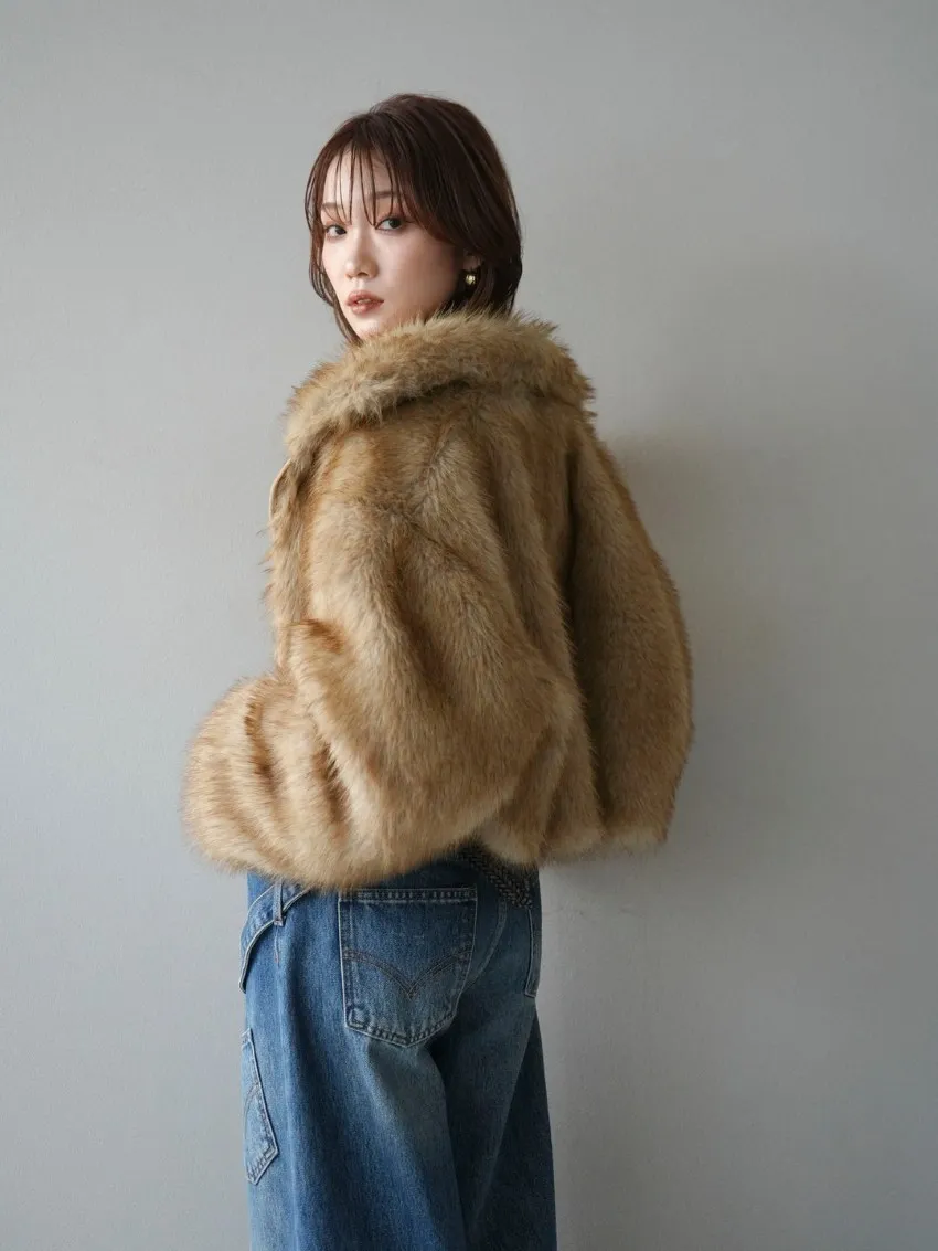 冬天必備蓬鬆優雅氣勢千金軟綿綿毛海夾克