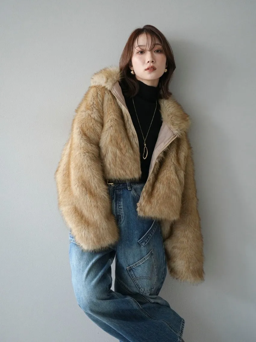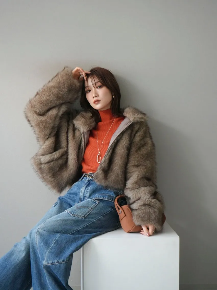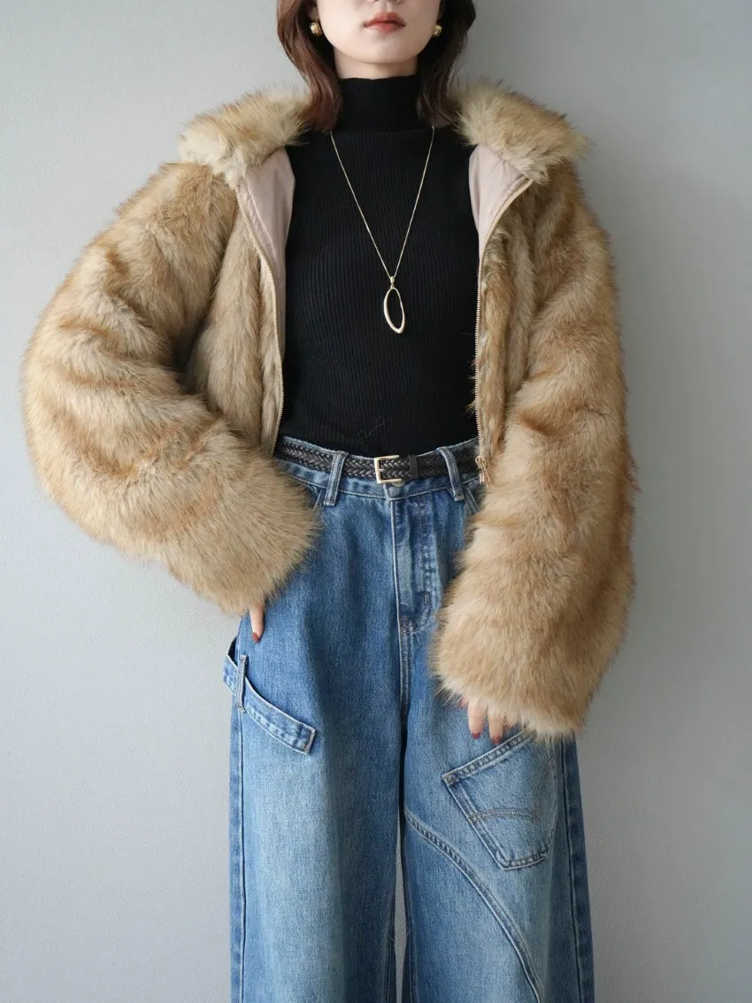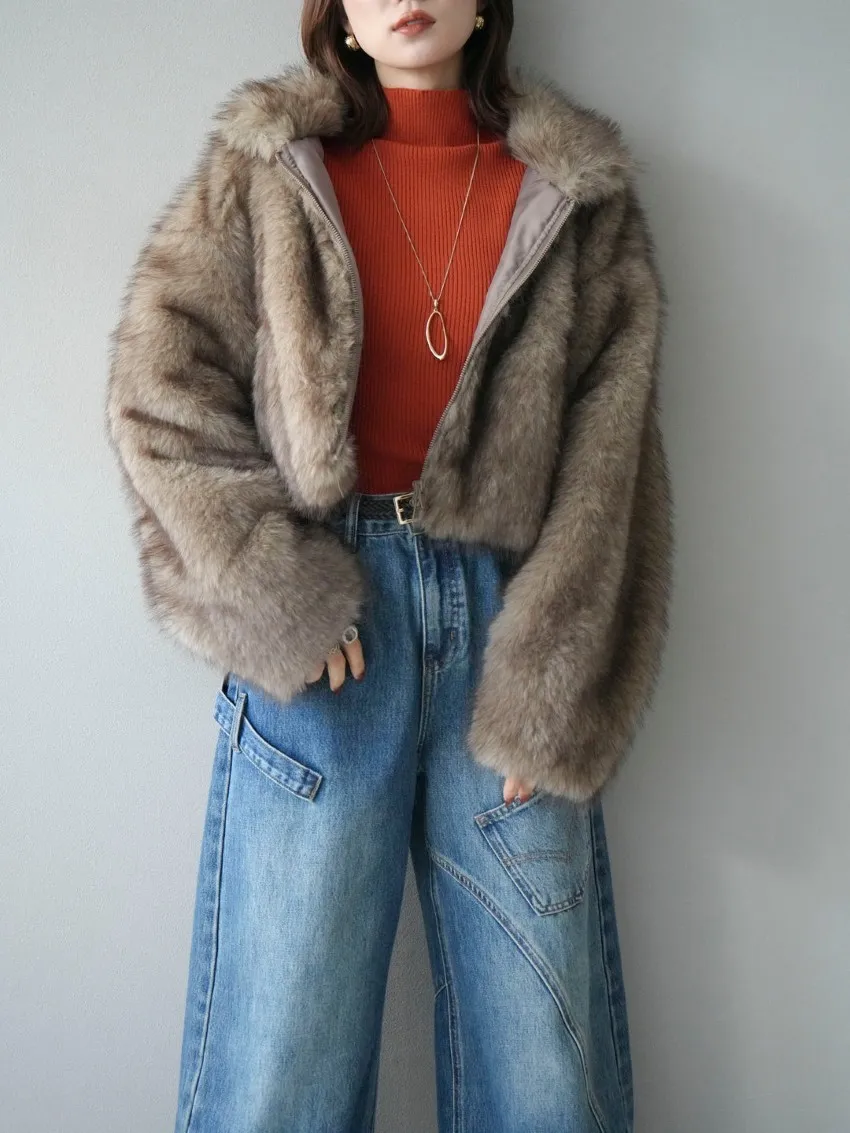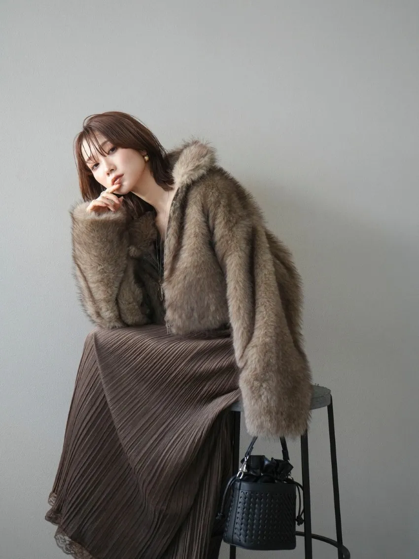 冬天必備蓬鬆優雅氣勢千金軟綿綿毛海夾克