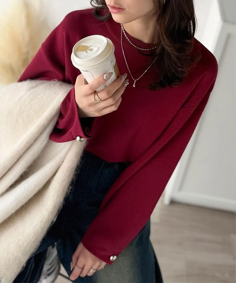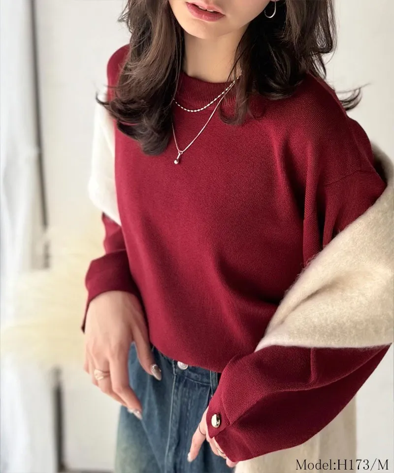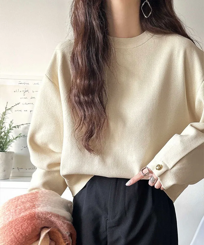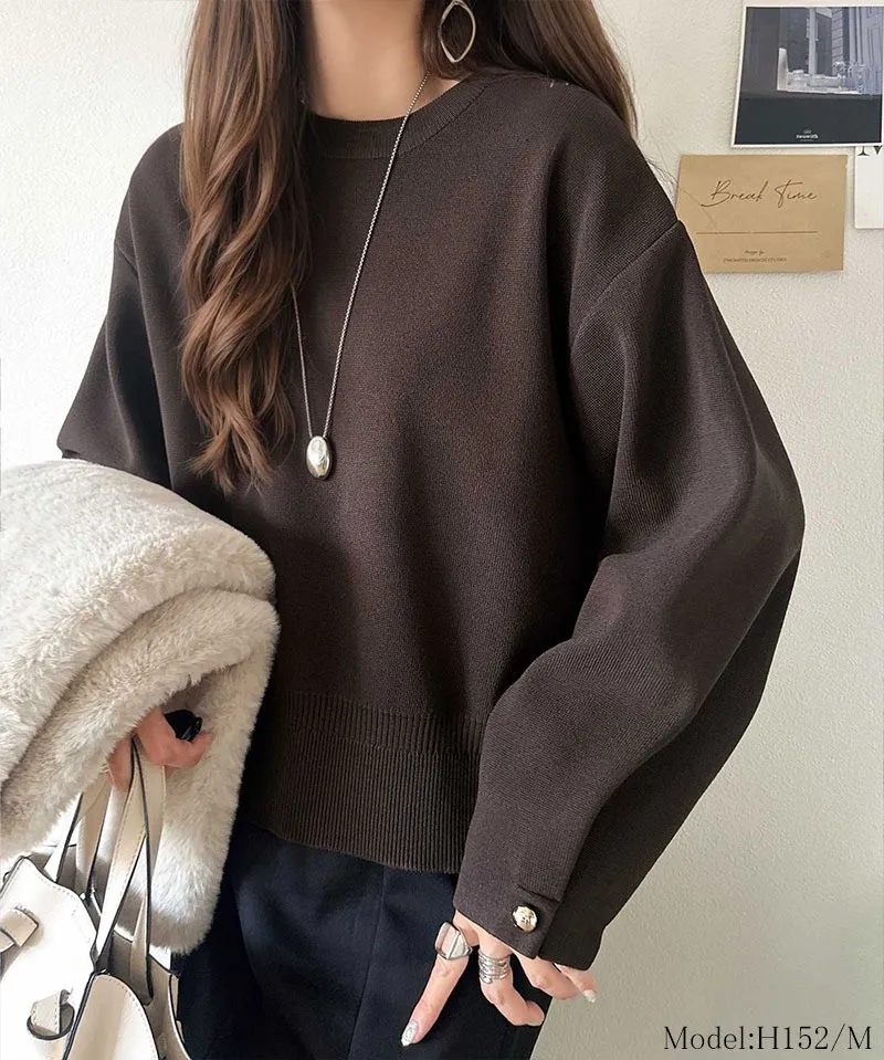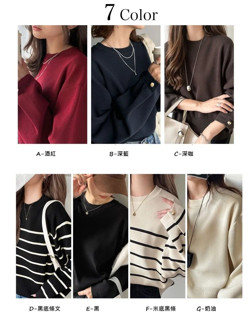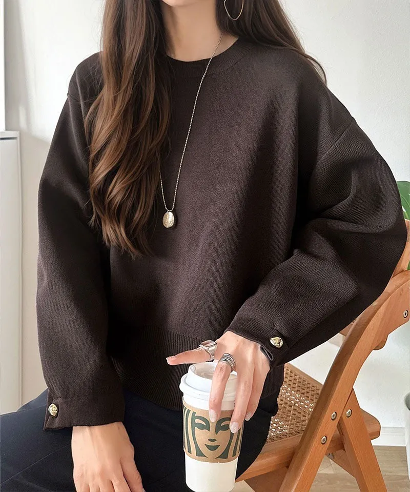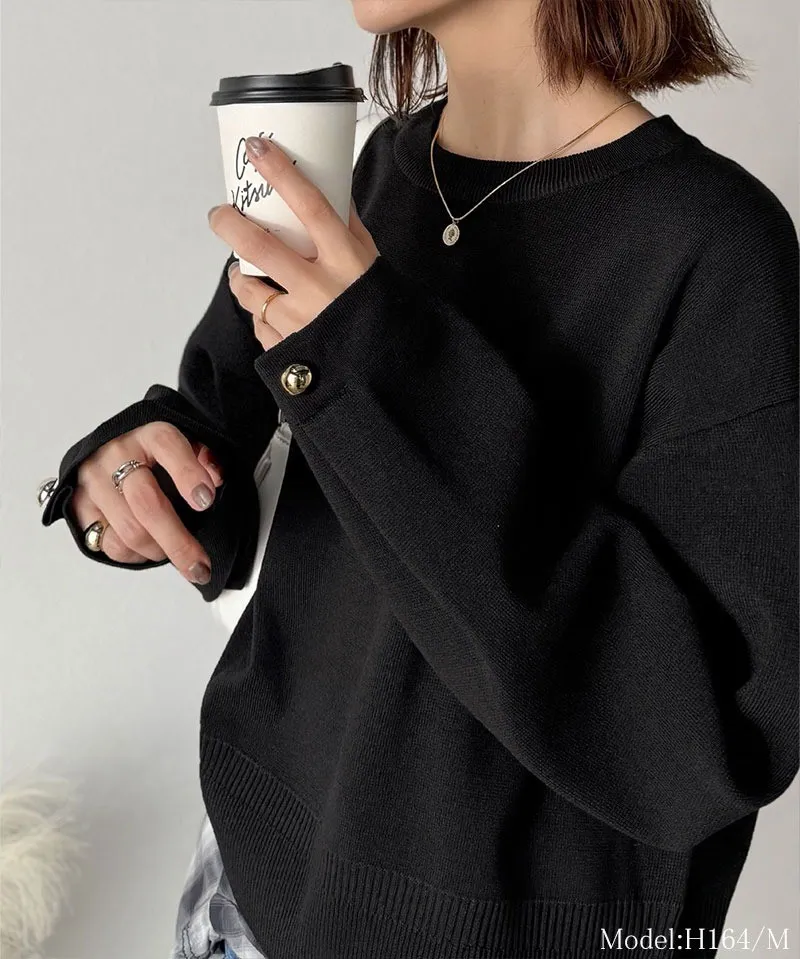 許願款-彈性舒適感金袖釦針織毛衣