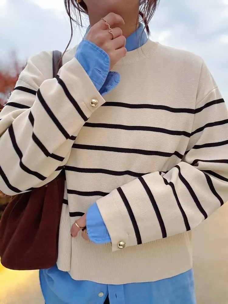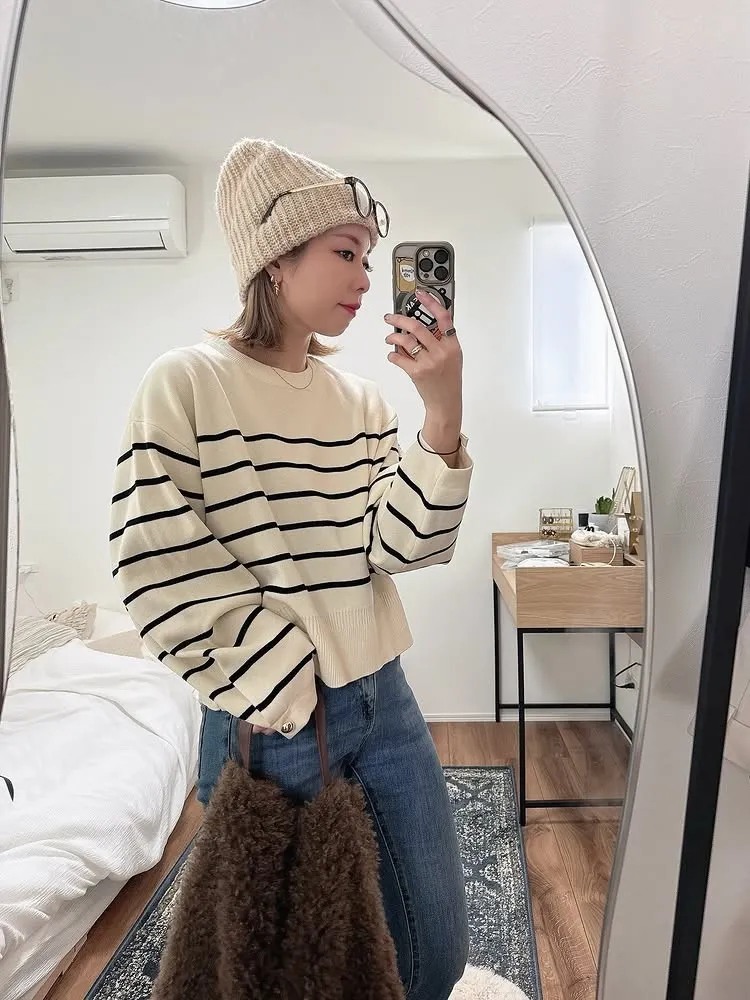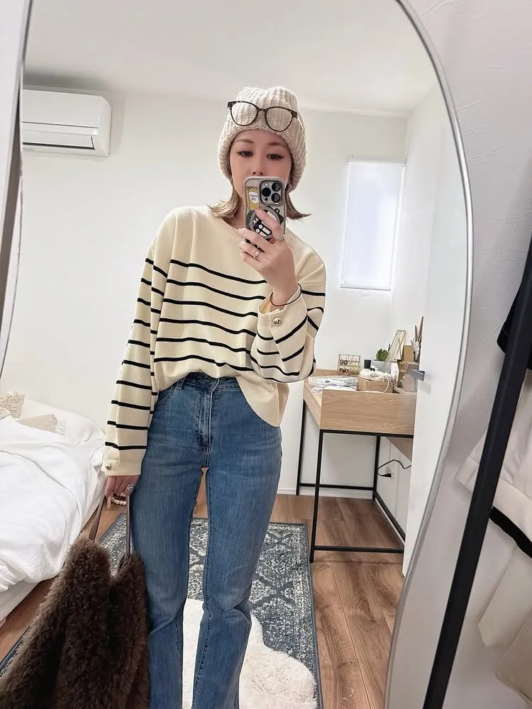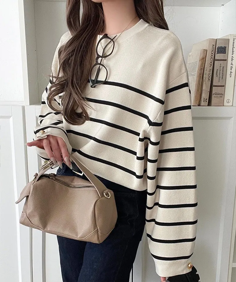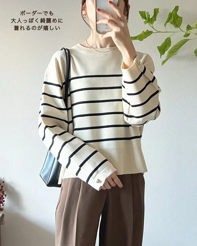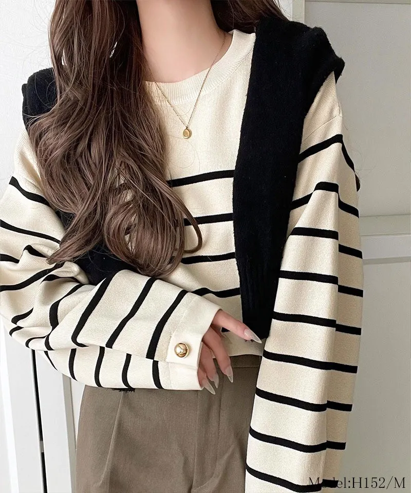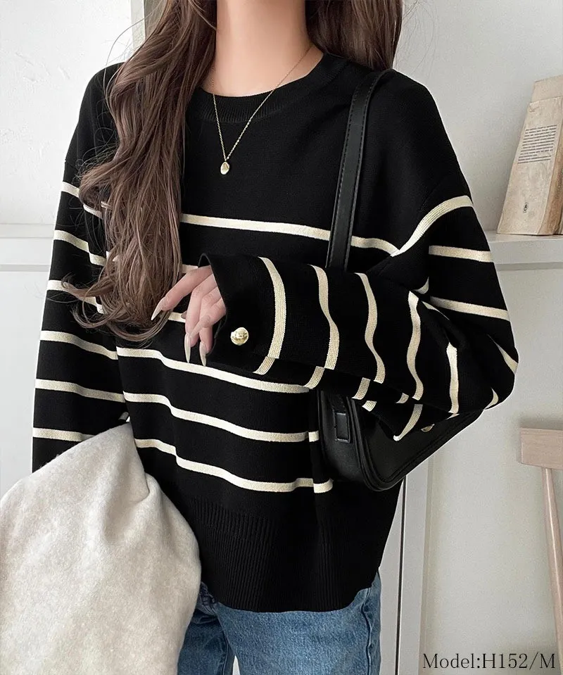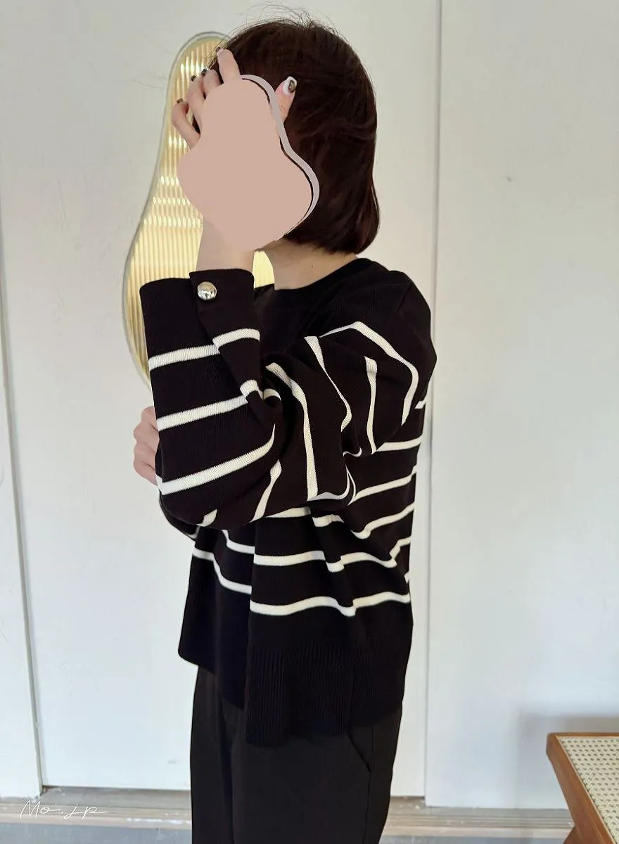 許願款-彈性舒適感金袖釦針織毛衣