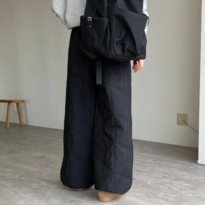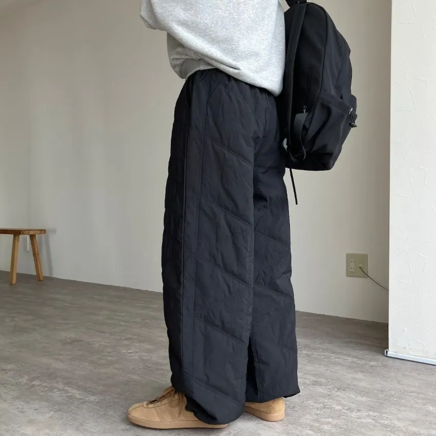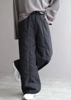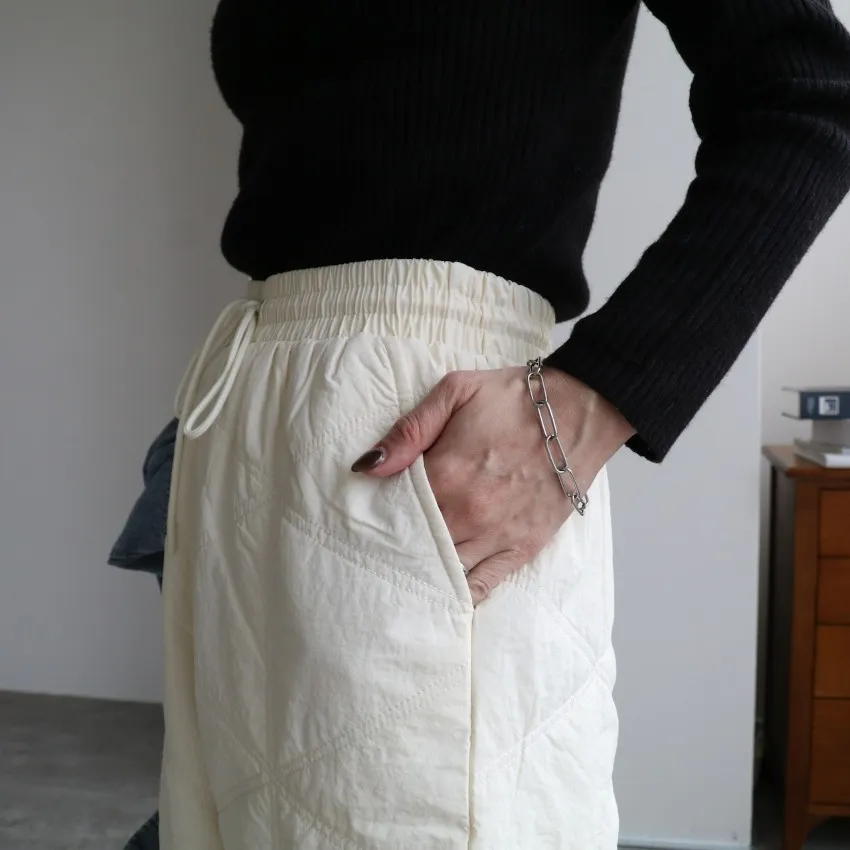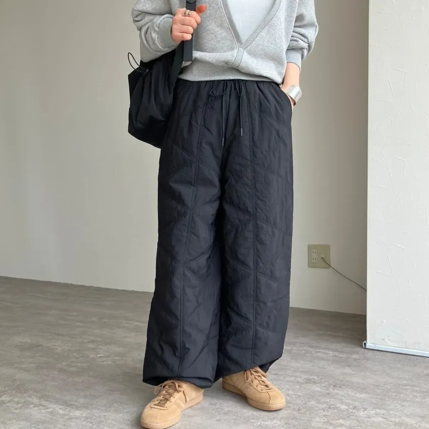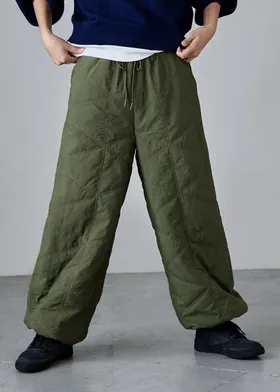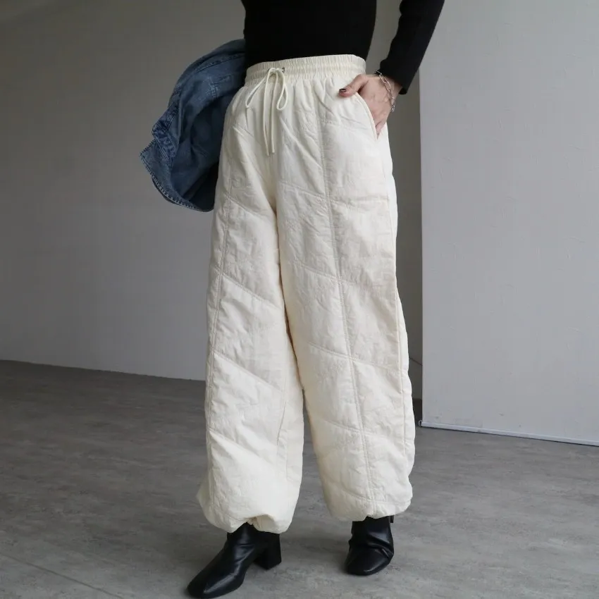 新年優惠~菱格車線薄鋪棉暖暖OUTDOOR抽繩縮口寬褲