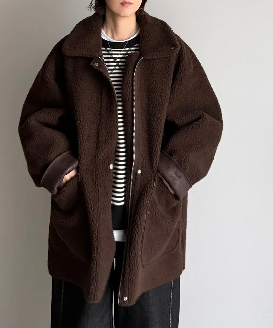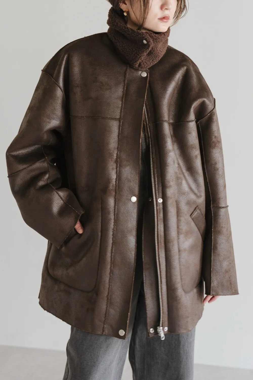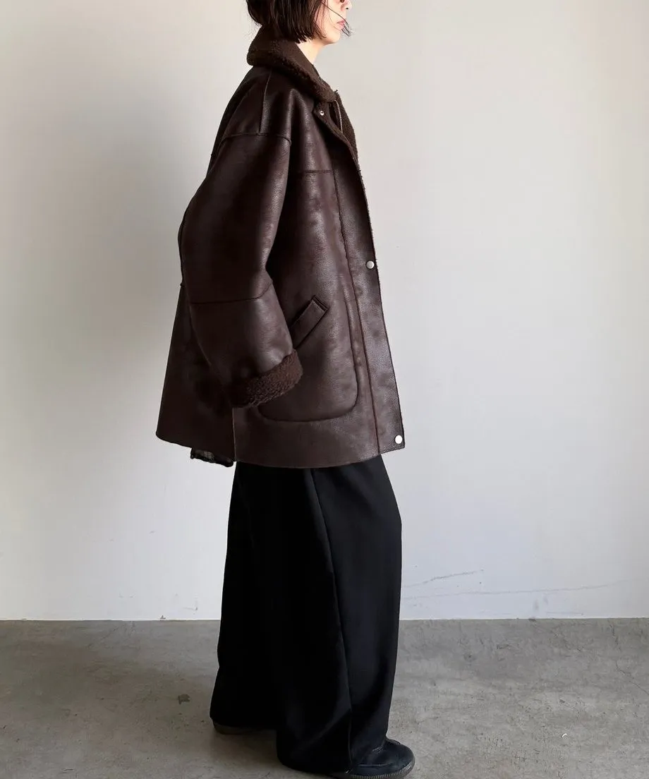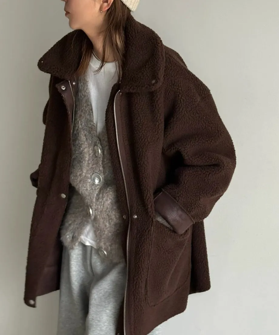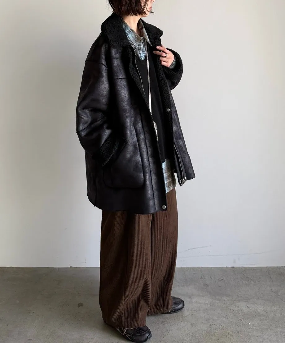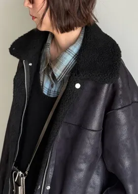 這款外套採用雙面設計,一面是仿羊羔絨,另一面是柔軟皮革,讓您輕鬆打造不同風格。