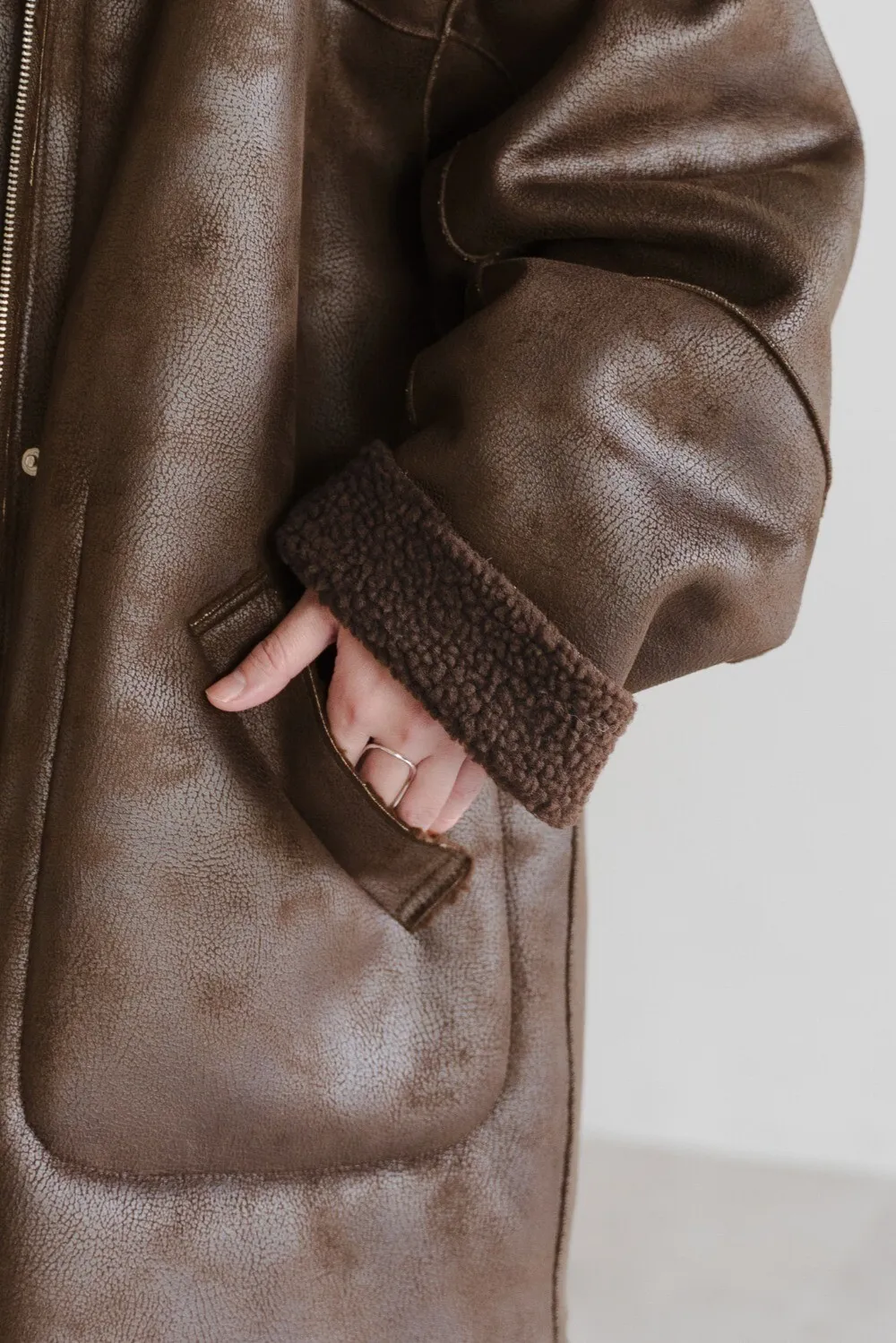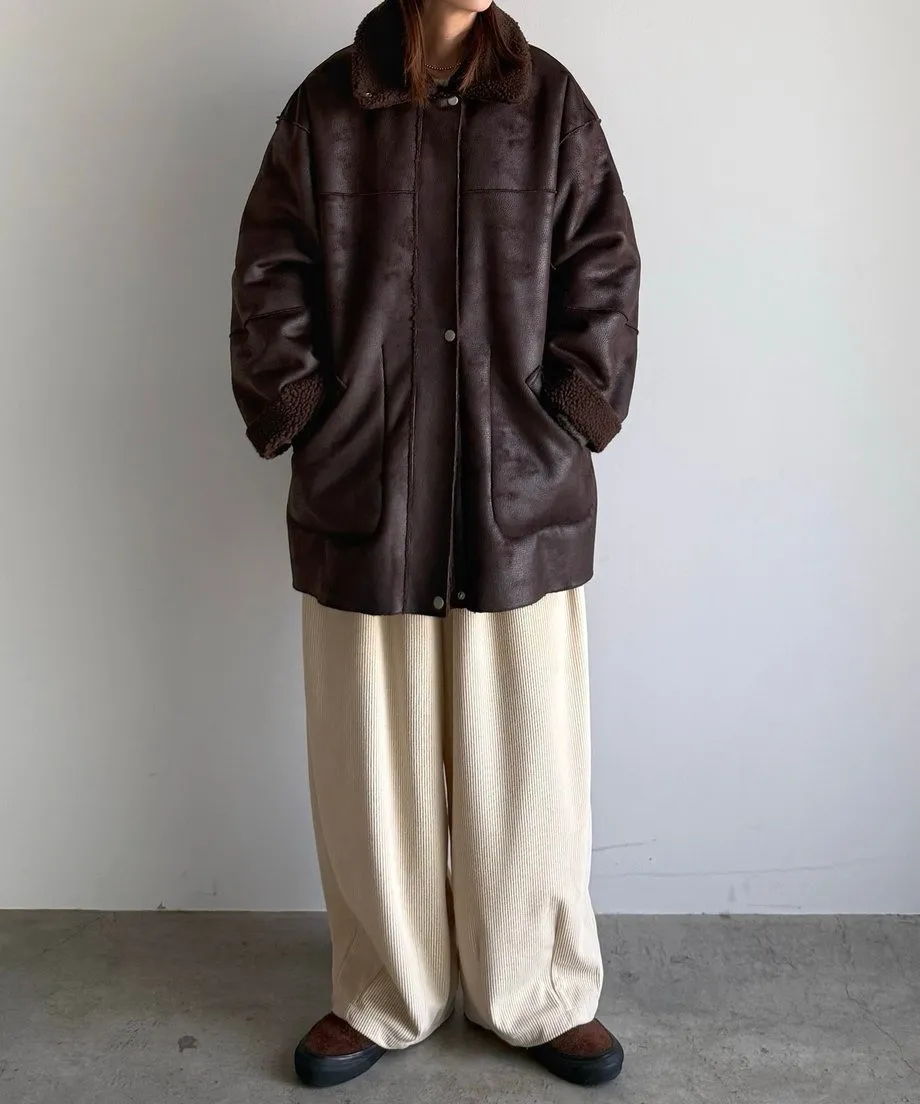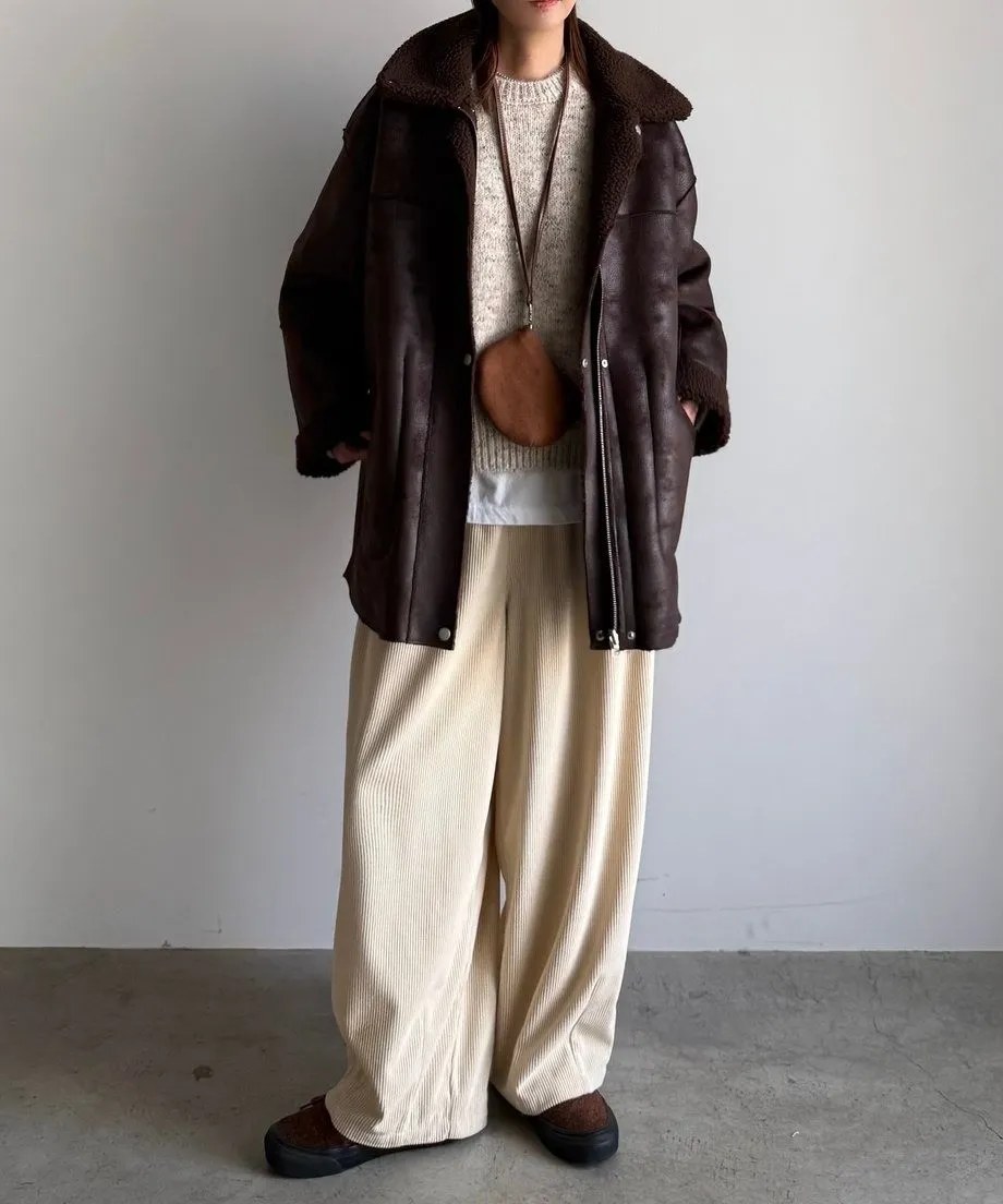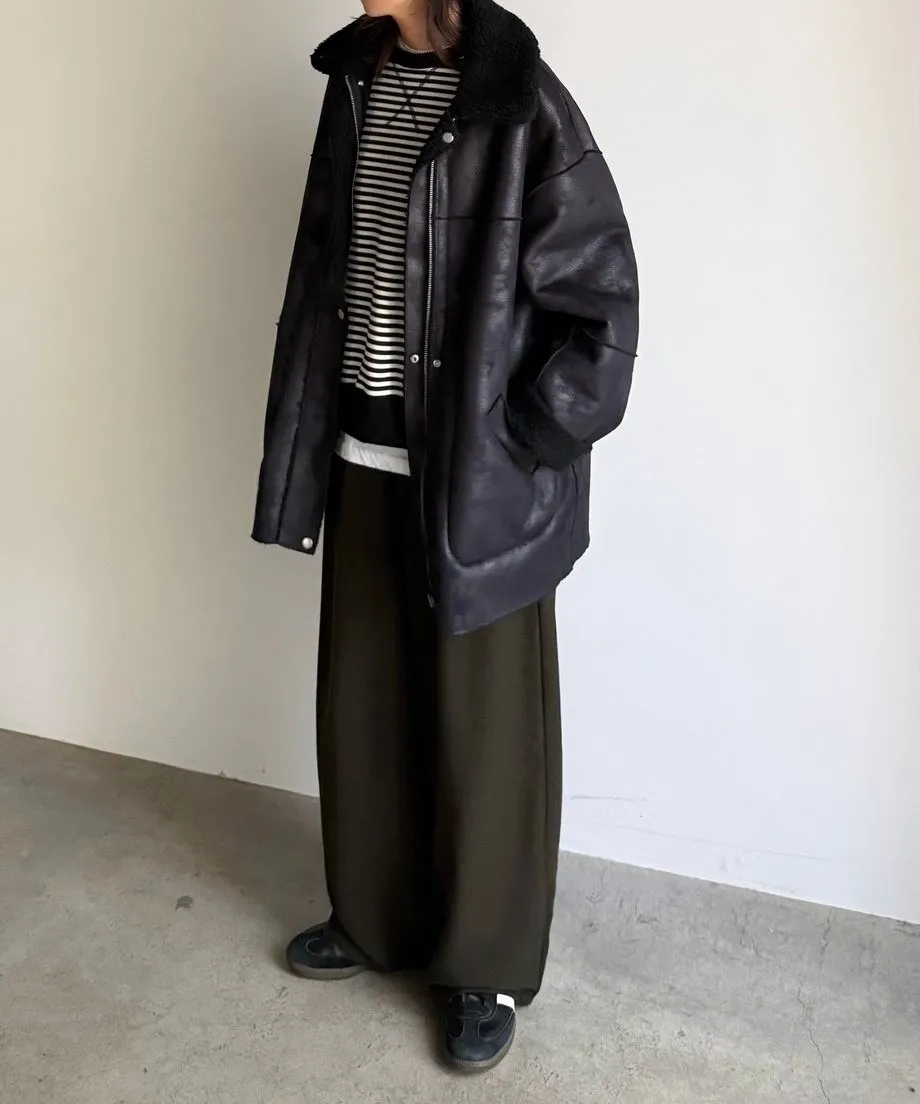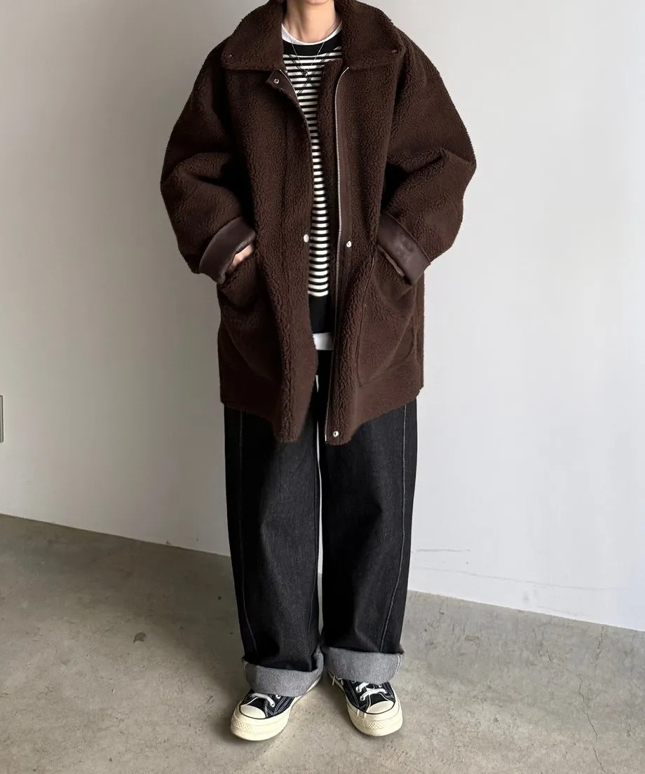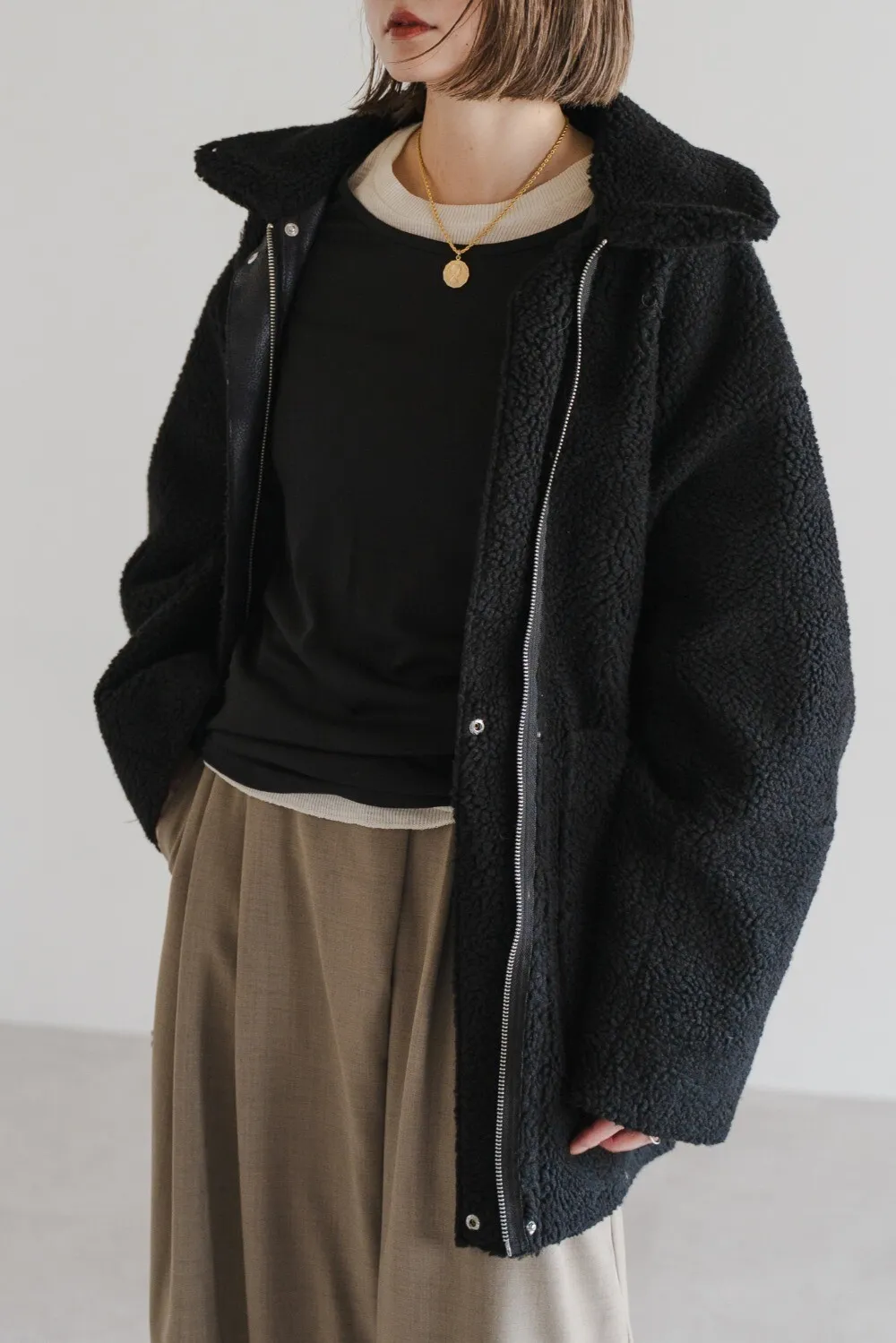 這款外套採用雙面設計,一面是仿羊羔絨,另一面是柔軟皮革,讓您輕鬆打造不同風格。