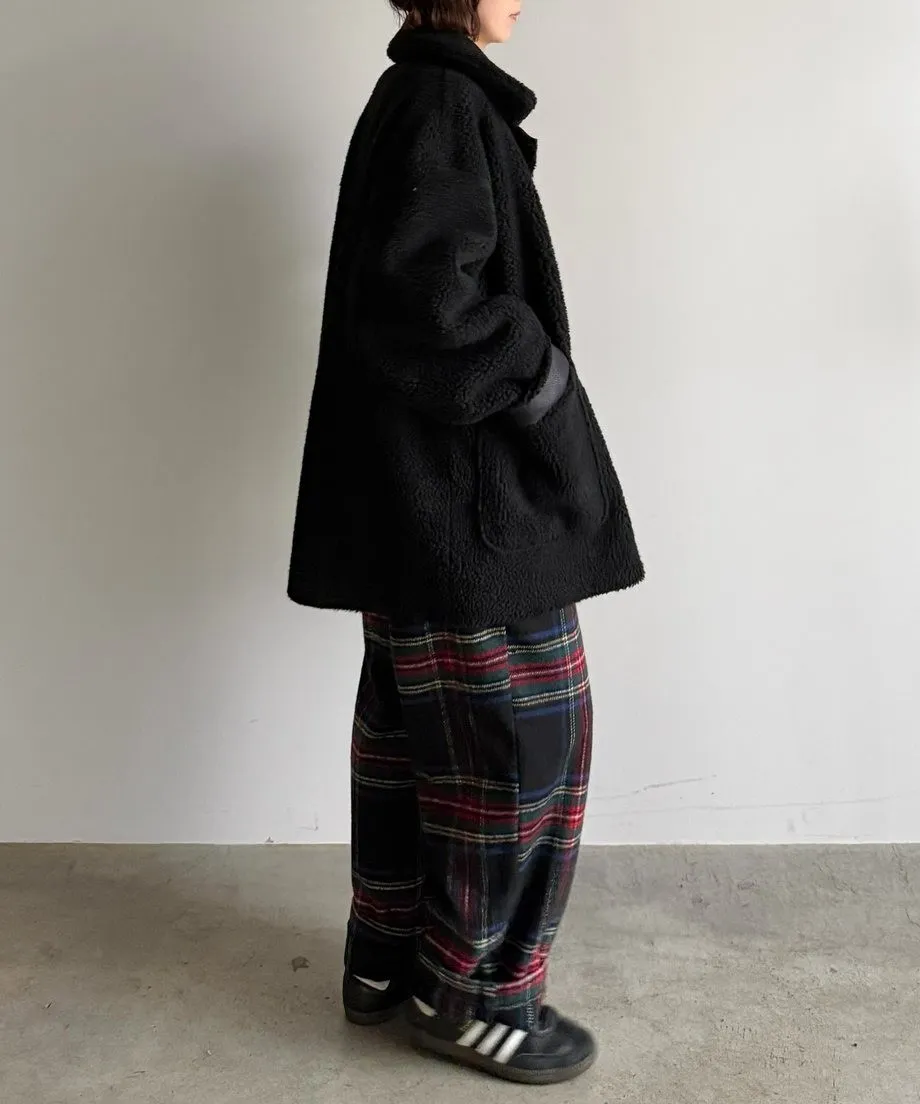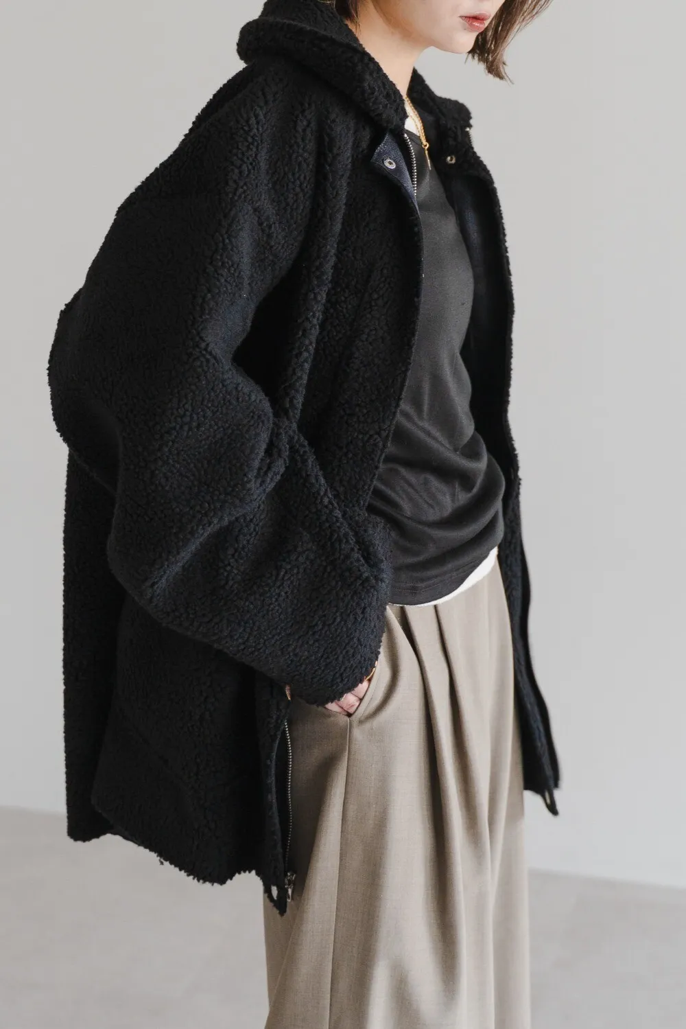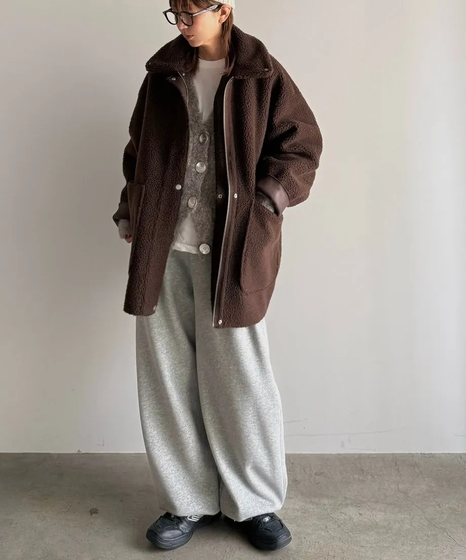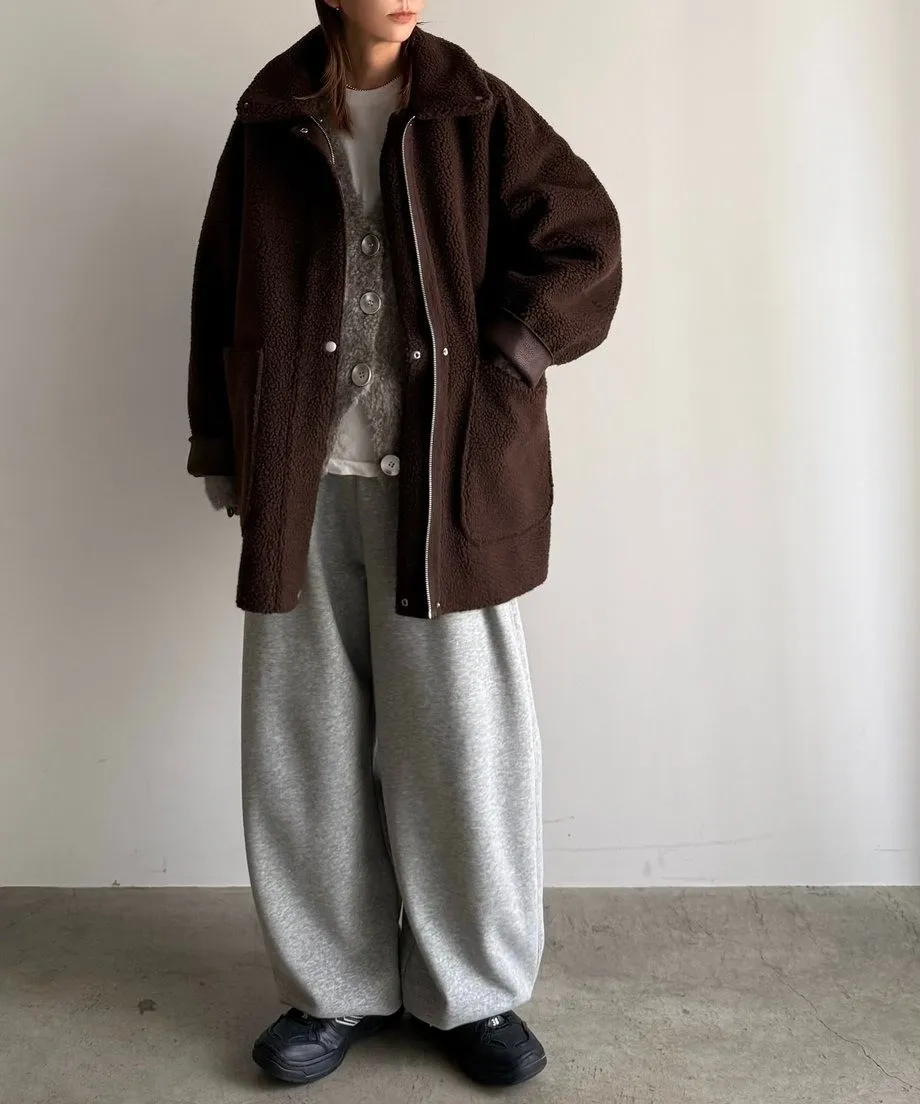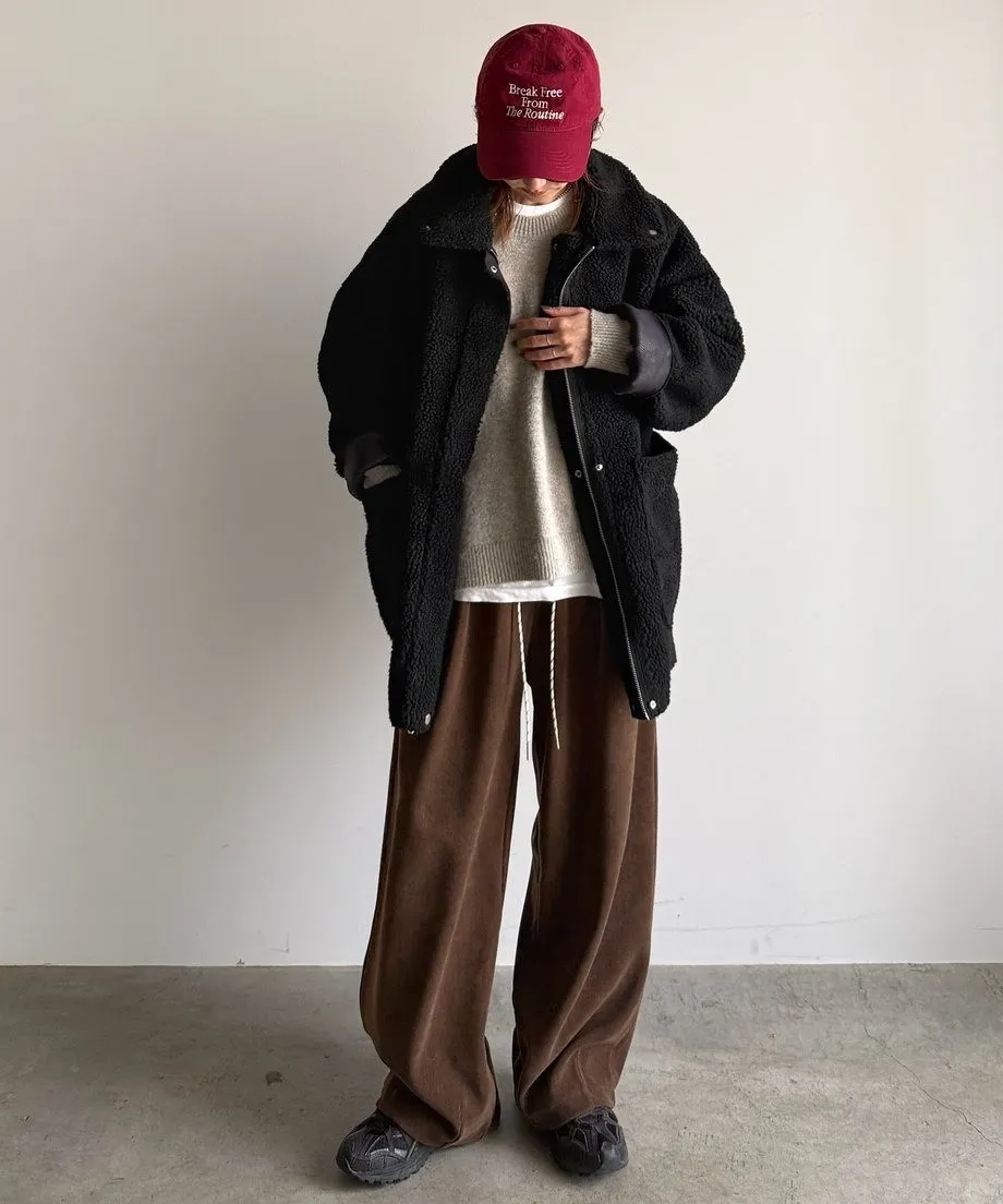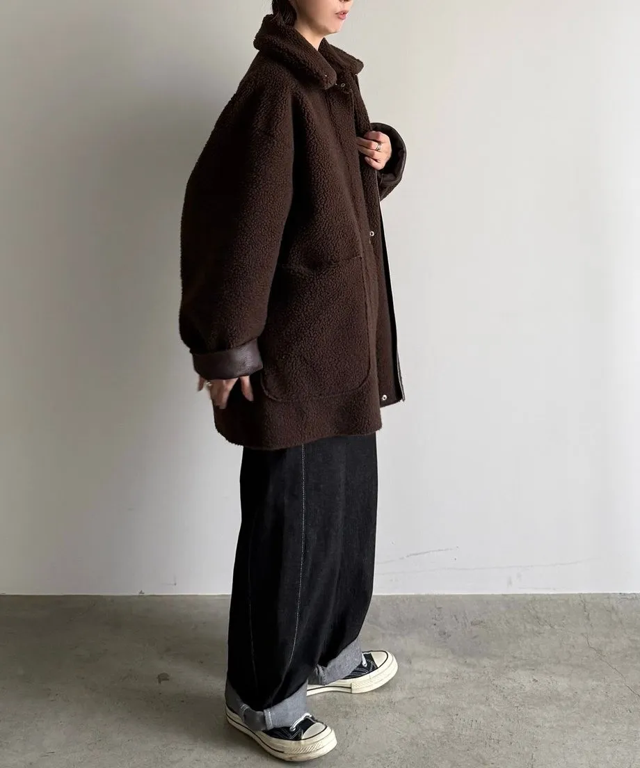 領口和袖口的雙面折疊絨布料增添時尚氣息,更凸顯了仿羊羔絨的質感。