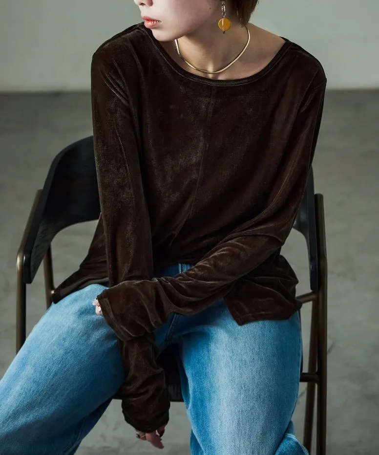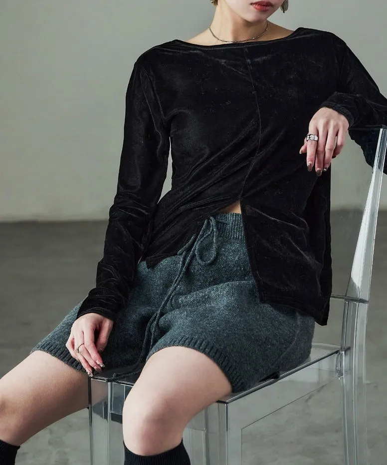 肌觸柔軟天鵝絲絨面料前後2WAY上衣