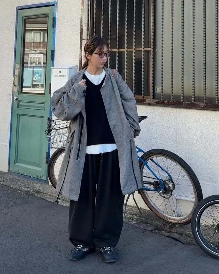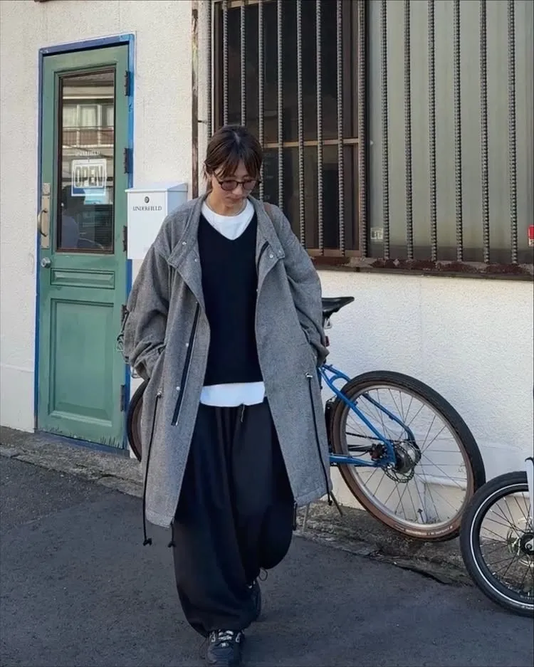 寬鬆的長袖設計,即使內搭厚實的連帽衫或針織衫,也不會顯得臃腫。