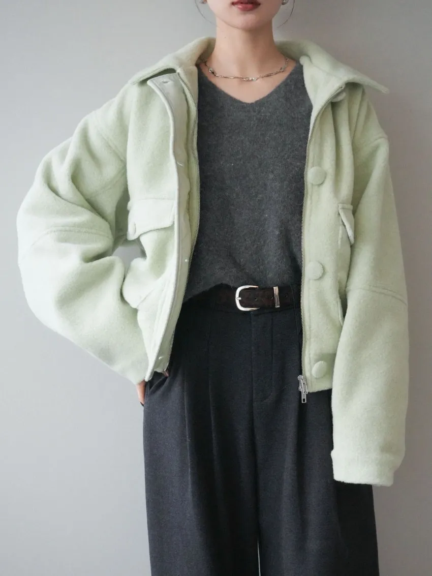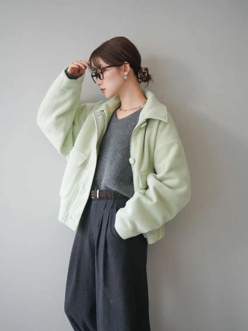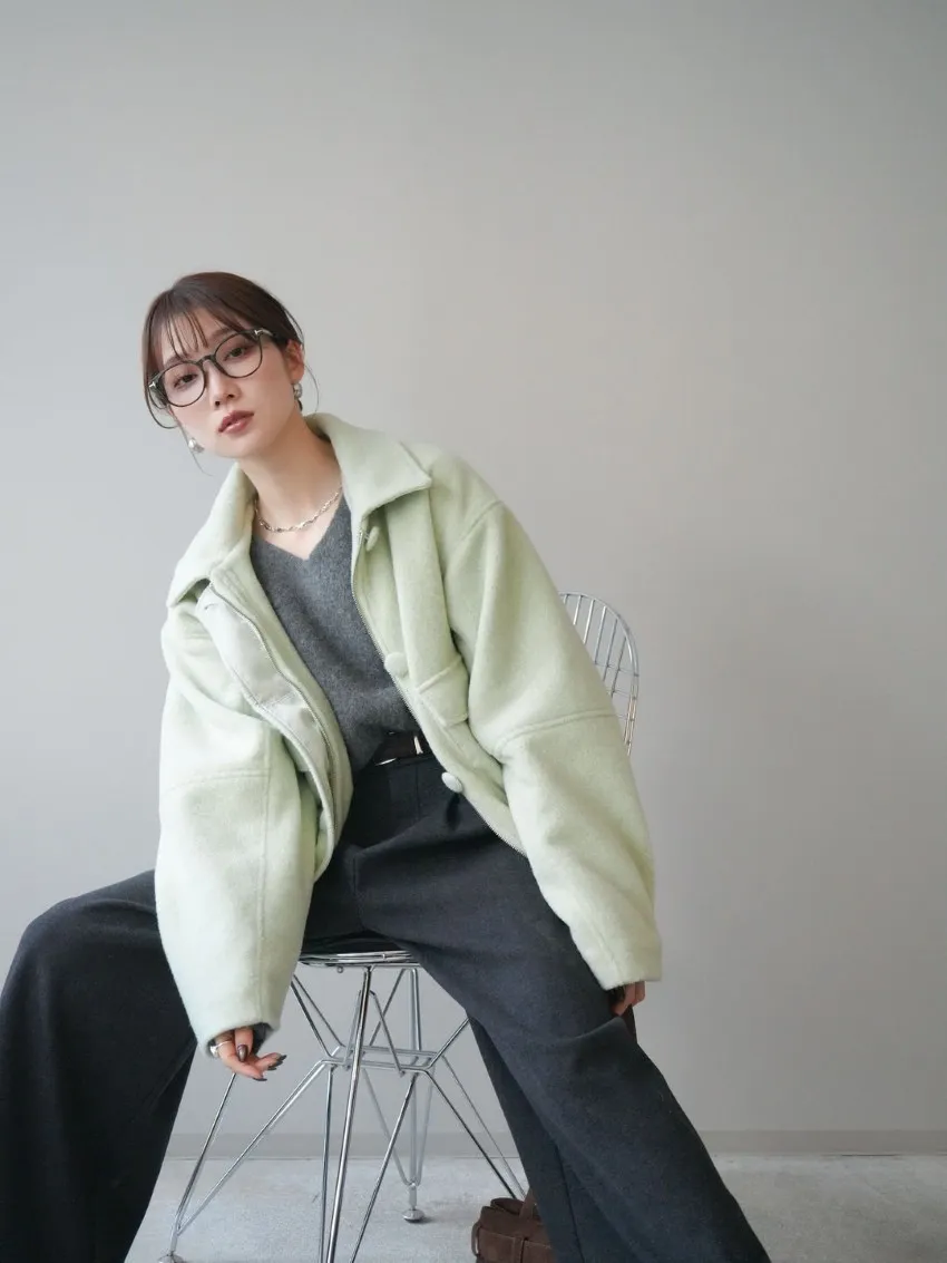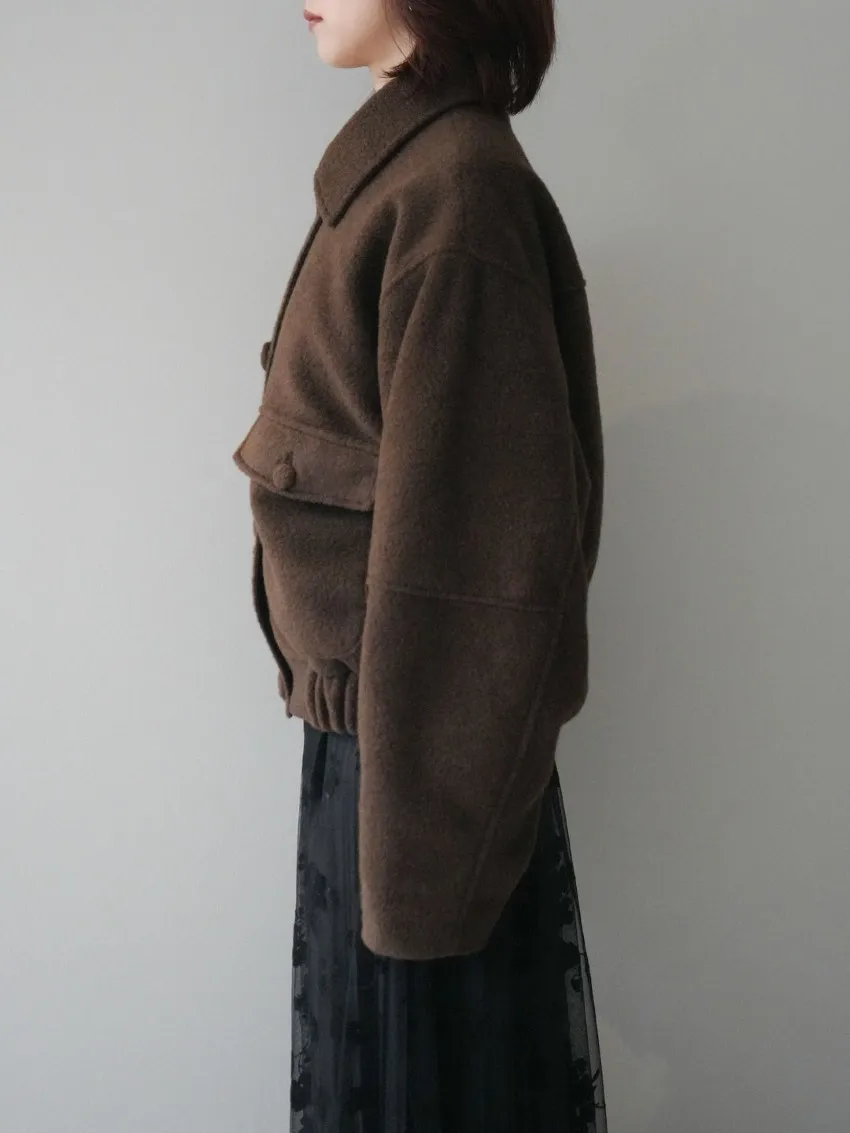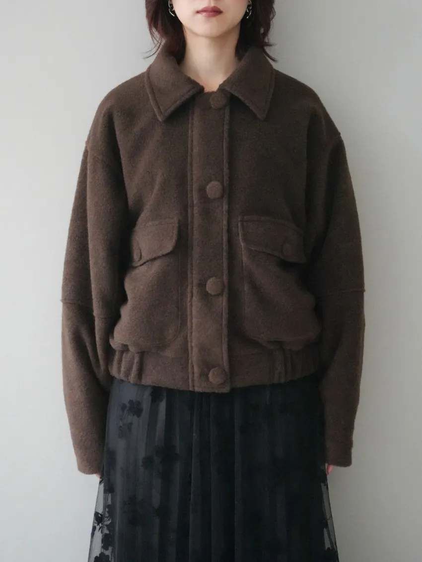 SALE雪國感壓縮羊毛觸感大圓鈕釦夾克短大衣