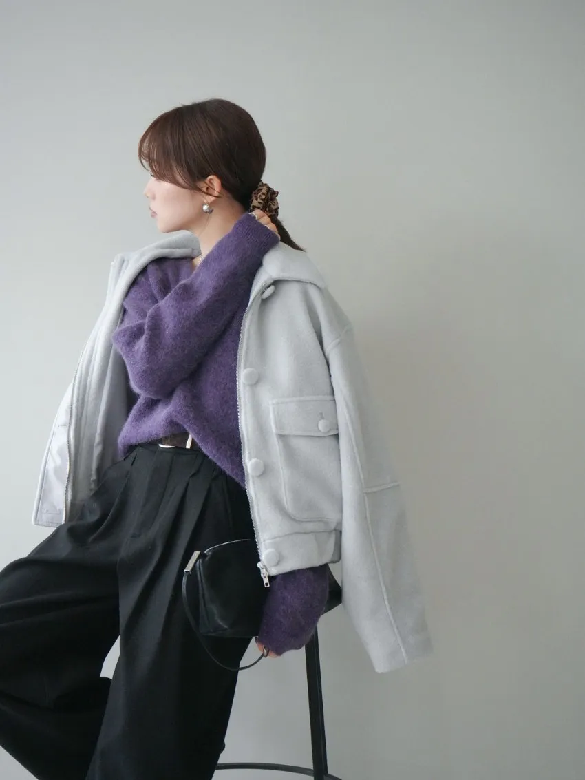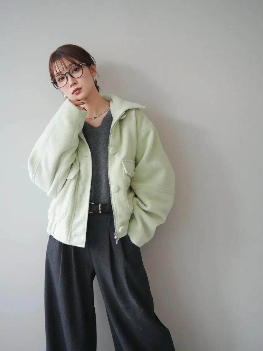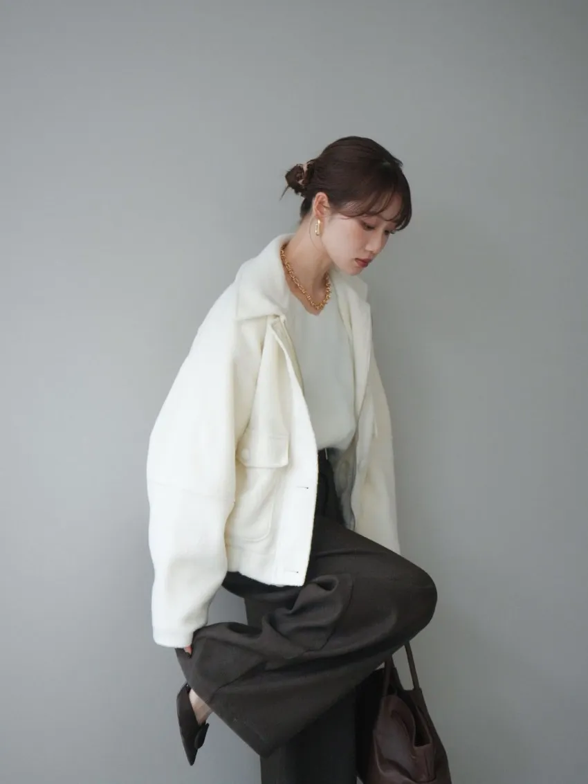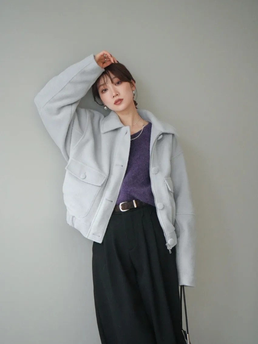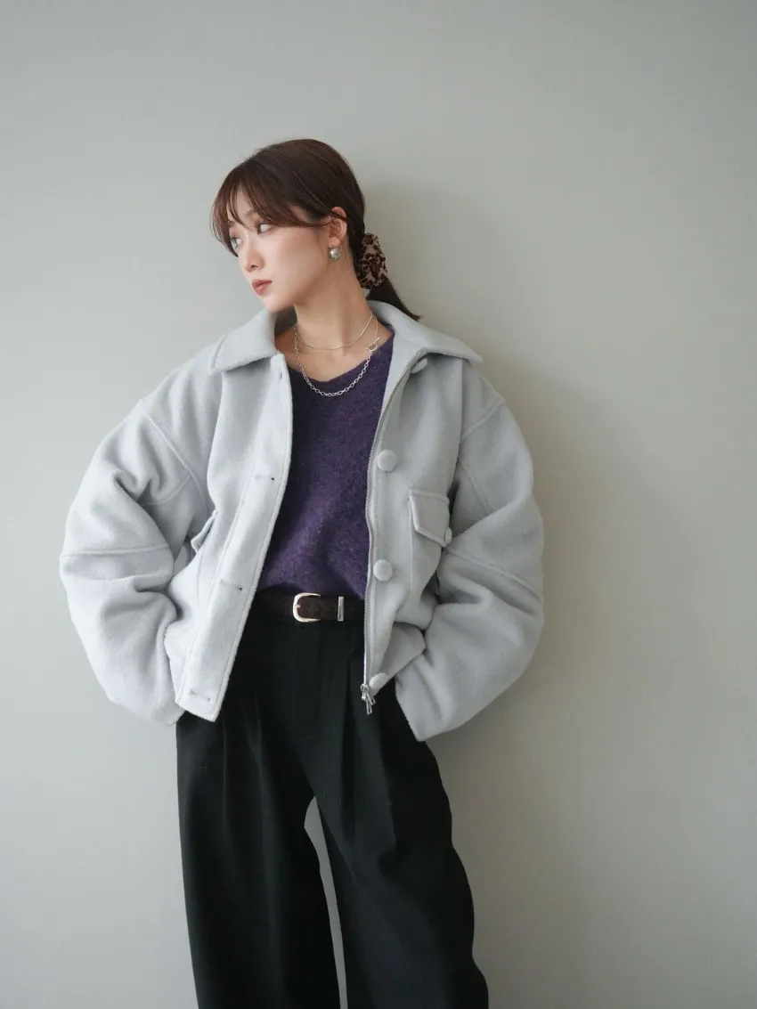 SALE雪國感壓縮羊毛觸感大圓鈕釦夾克短大衣