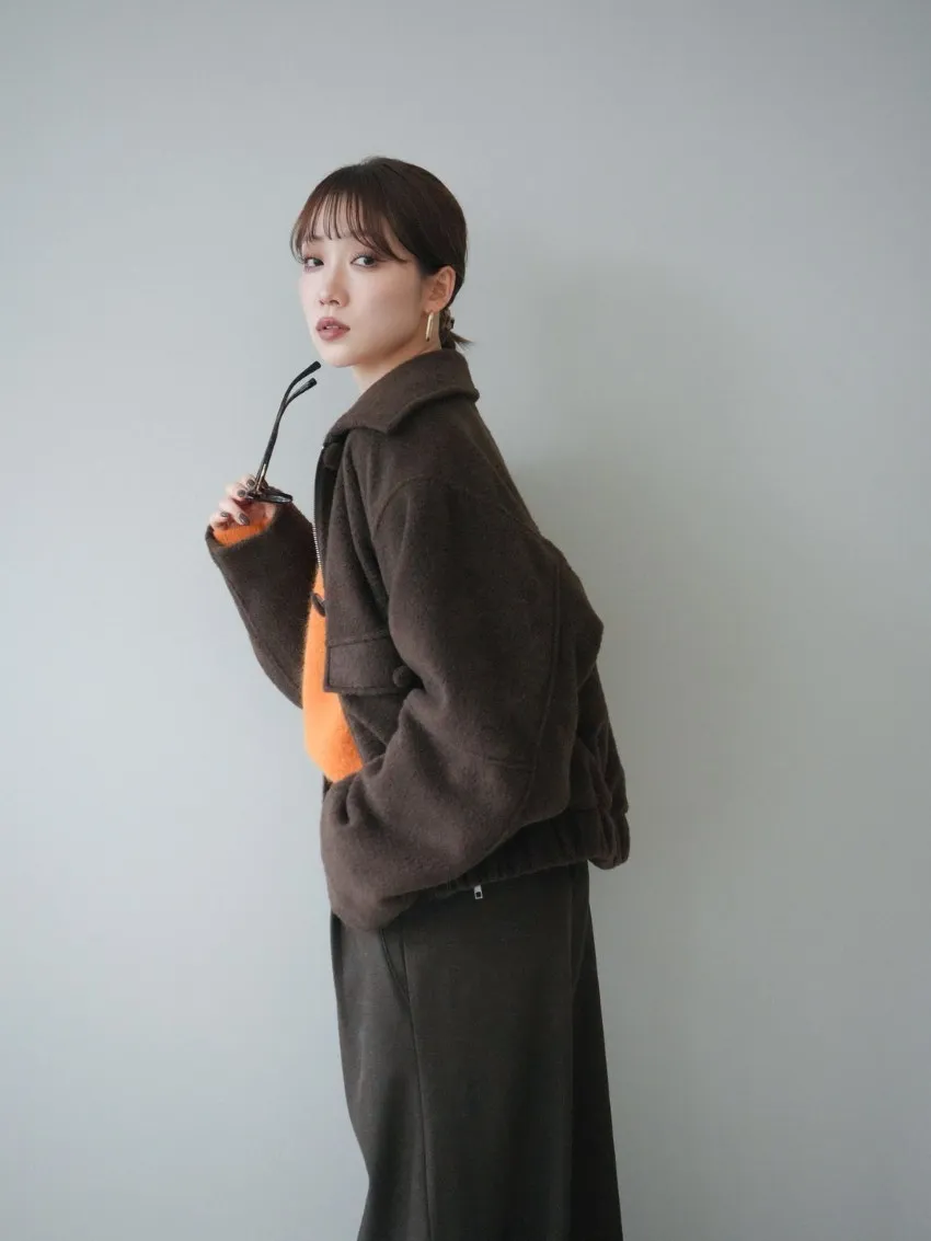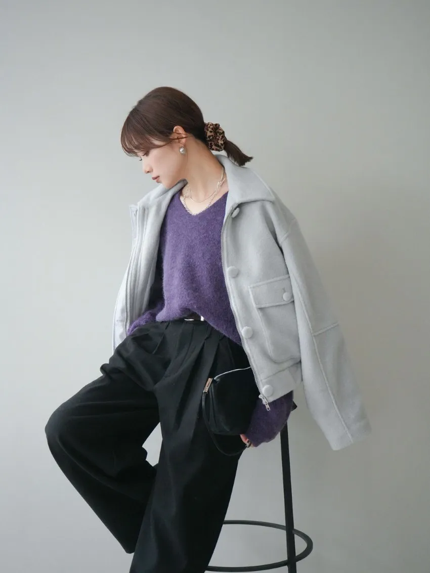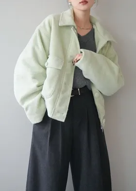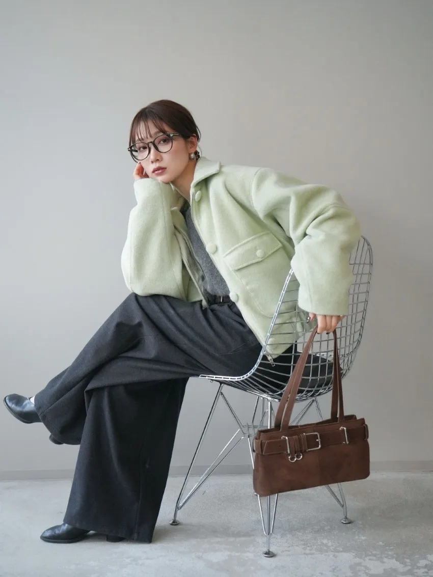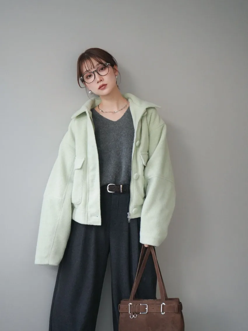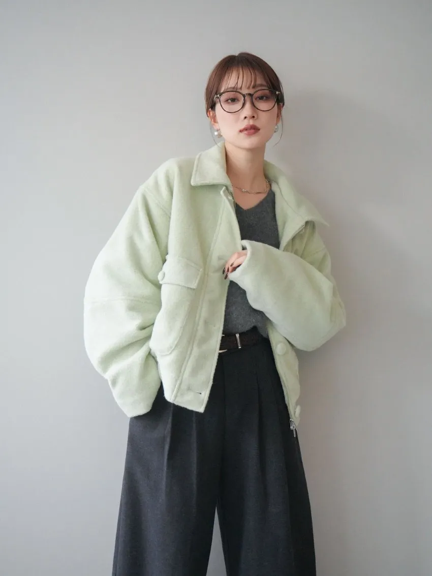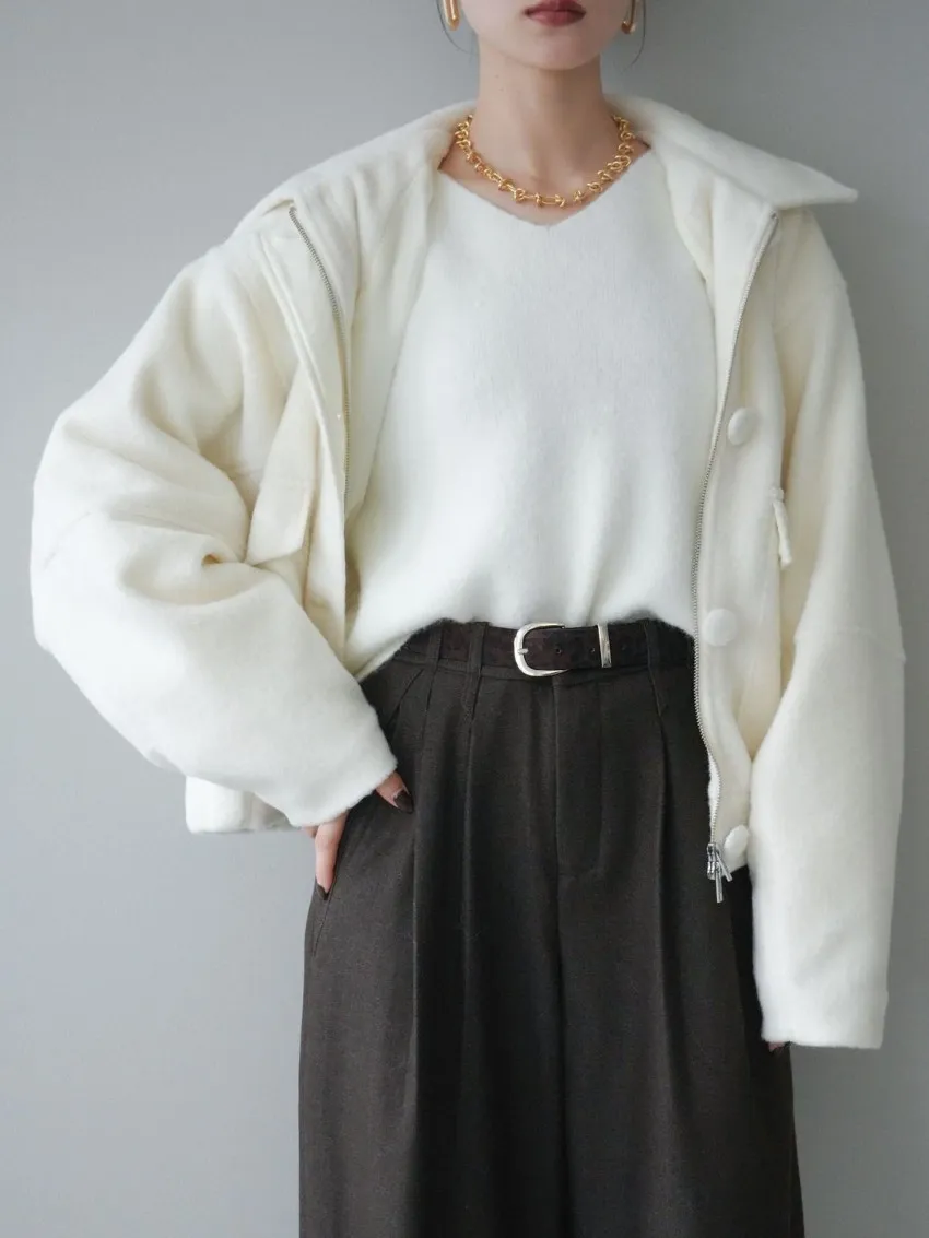 SALE雪國感壓縮羊毛觸感大圓鈕釦夾克短大衣