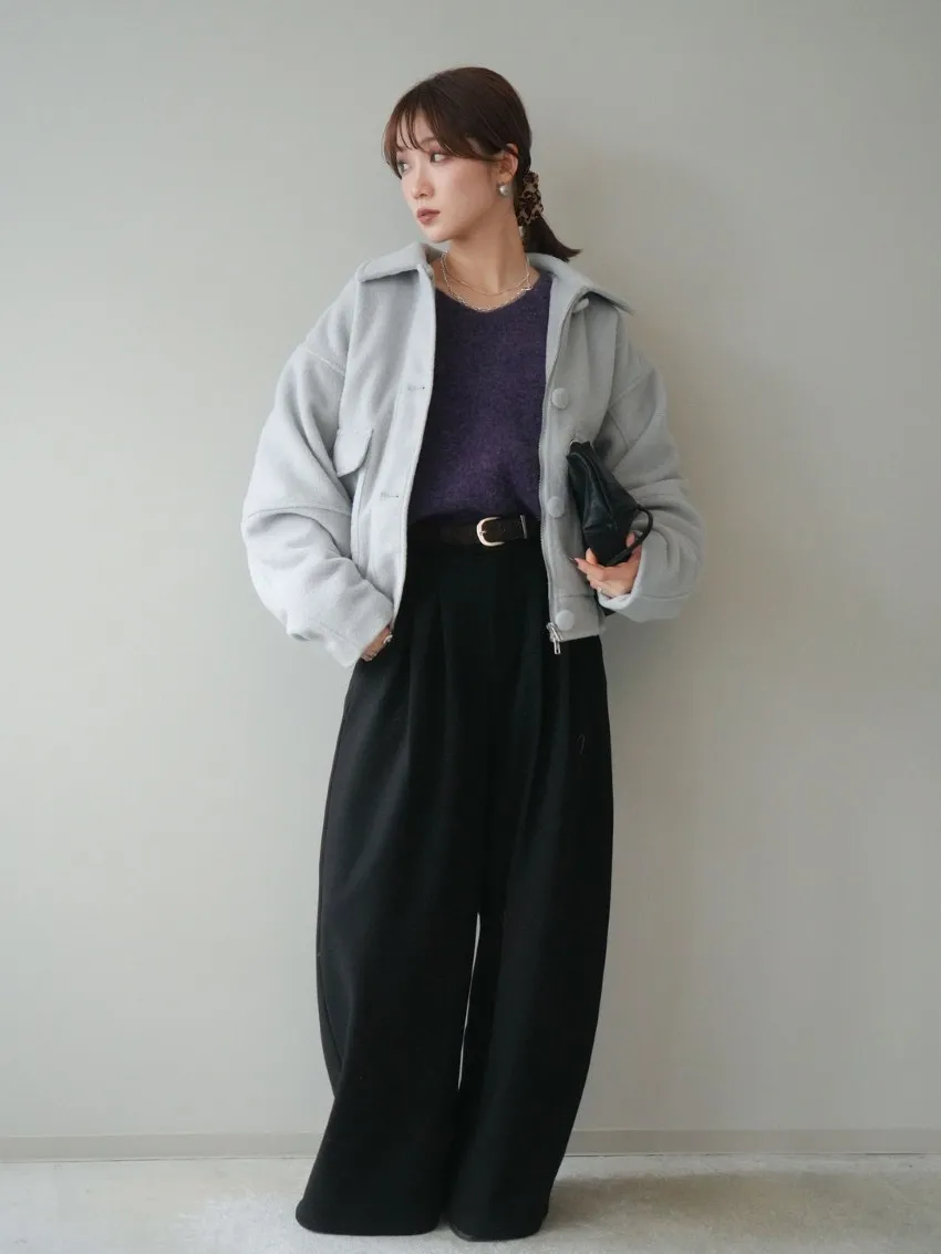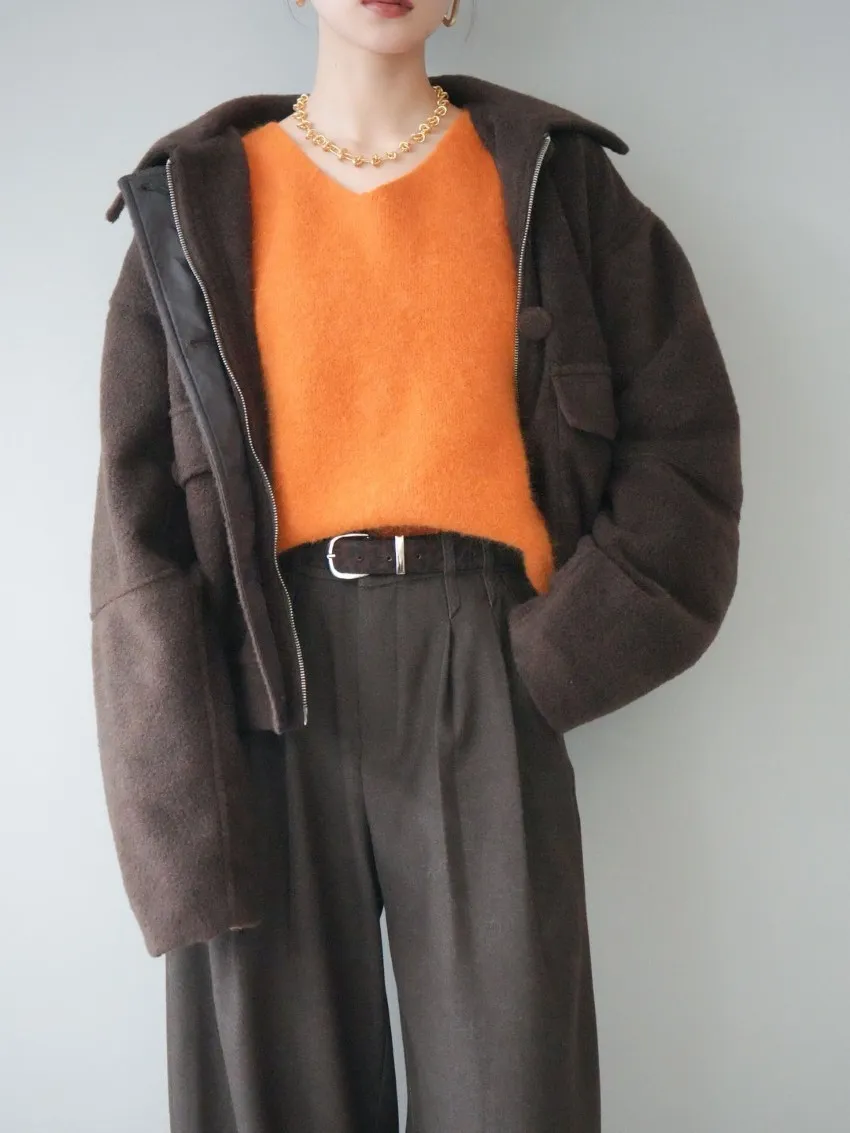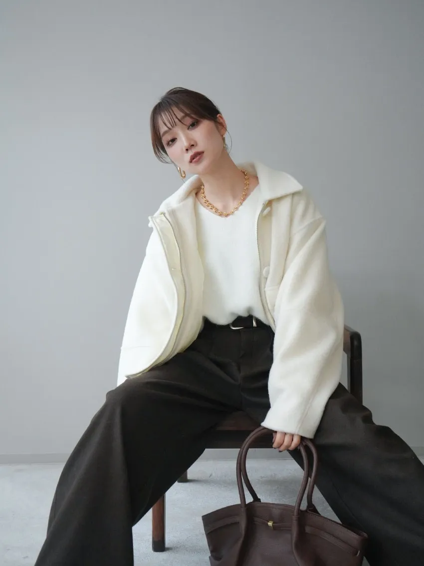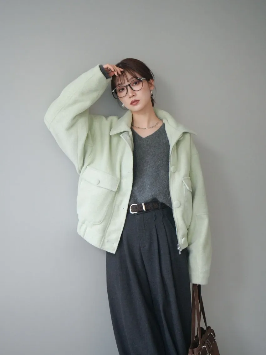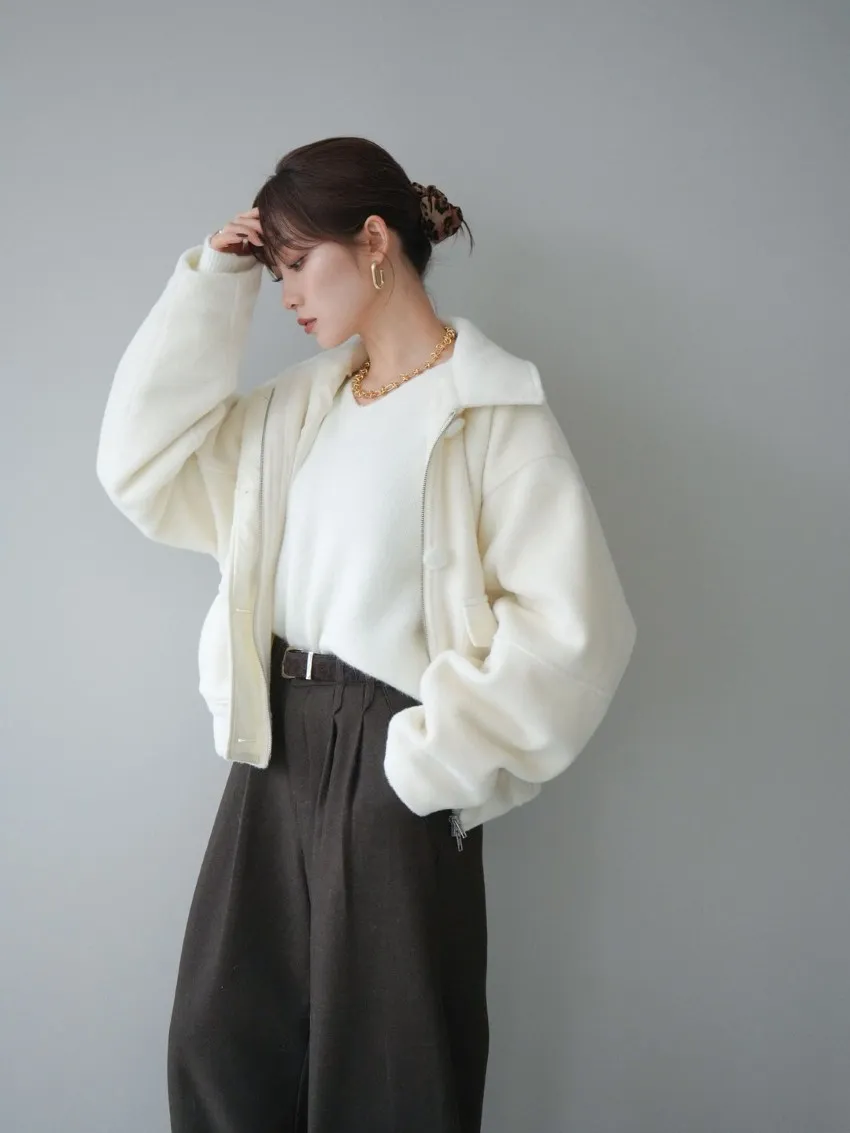 SALE雪國感壓縮羊毛觸感大圓鈕釦夾克短大衣