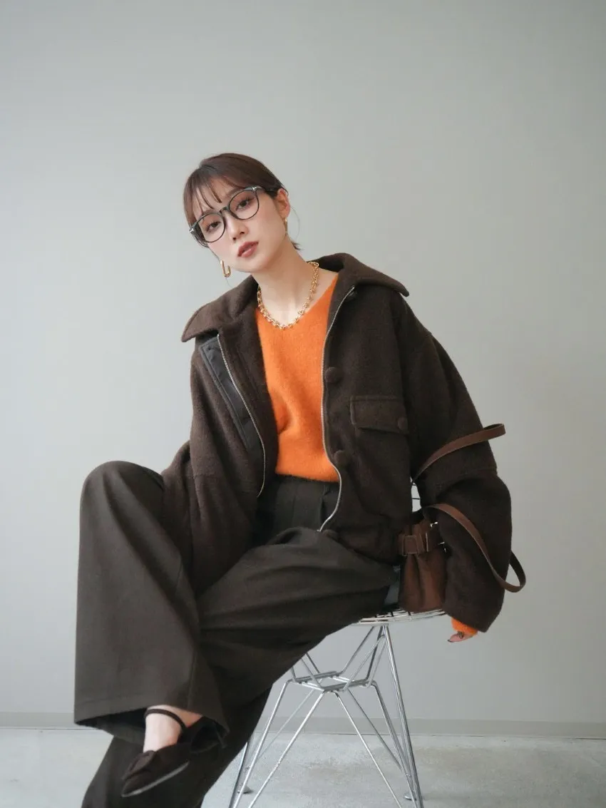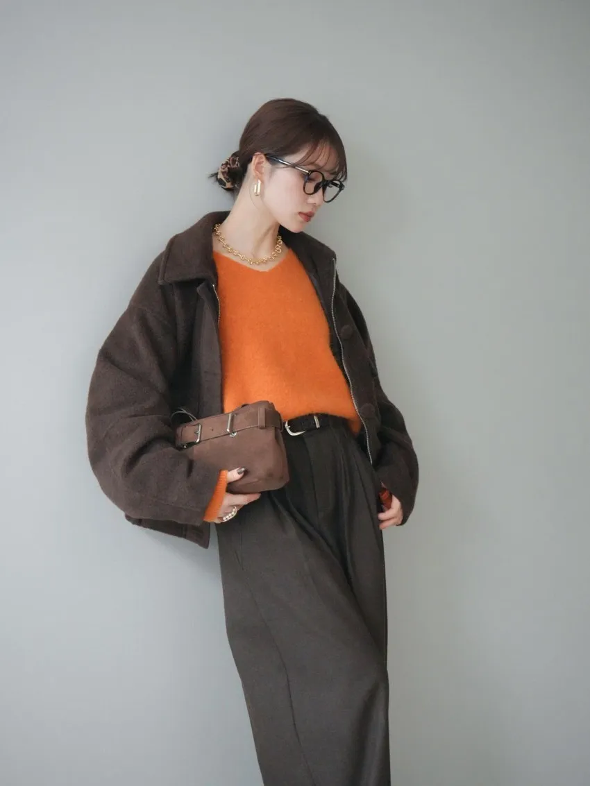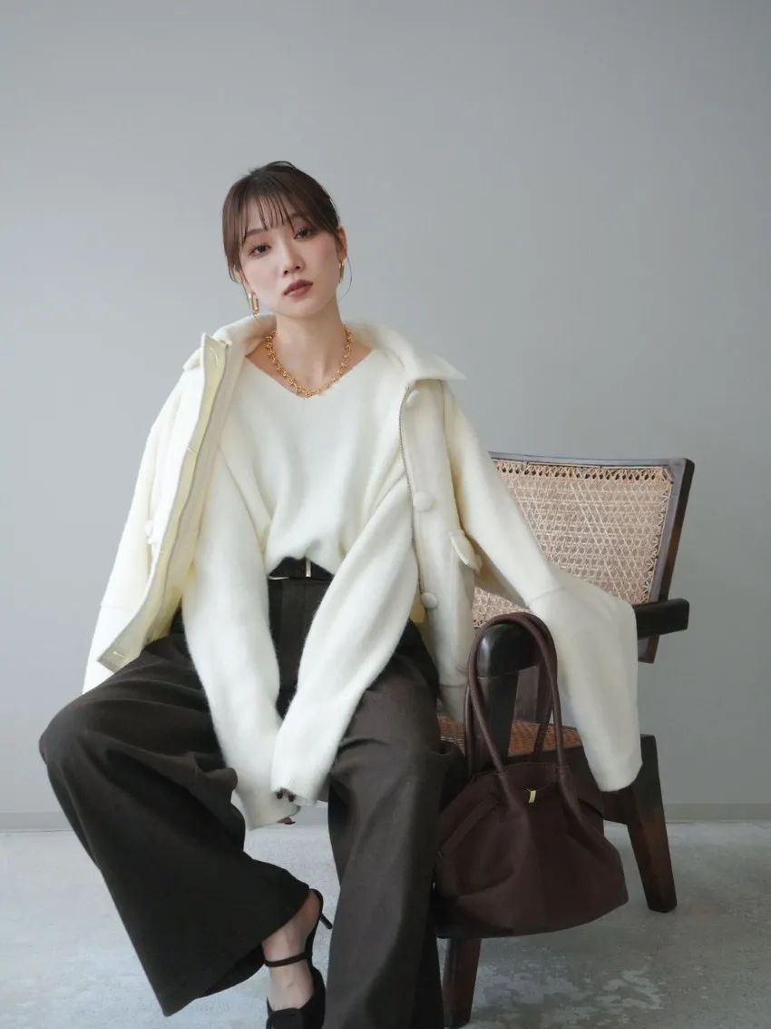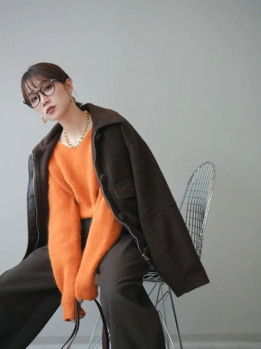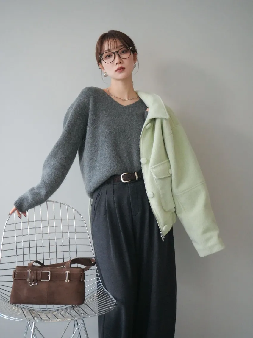 SALE雪國感壓縮羊毛觸感大圓鈕釦夾克短大衣