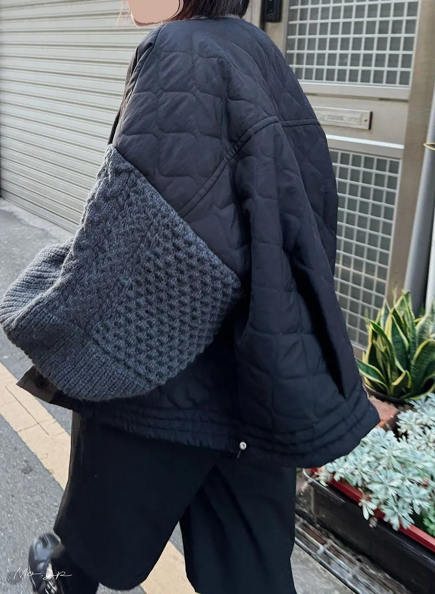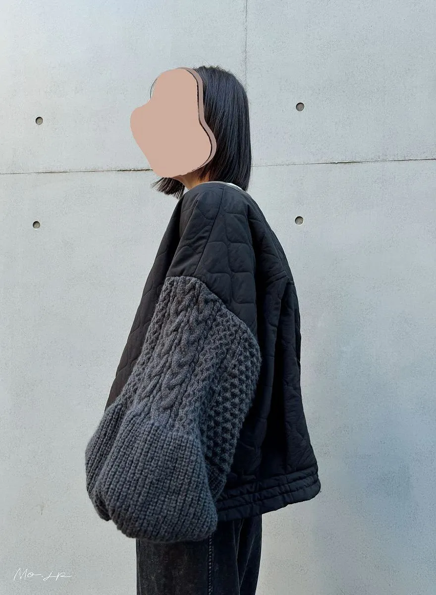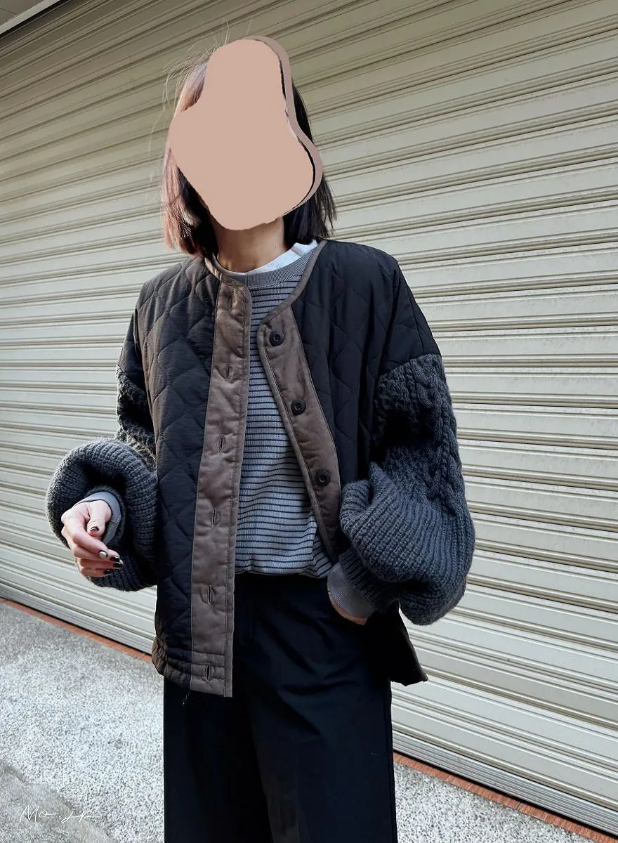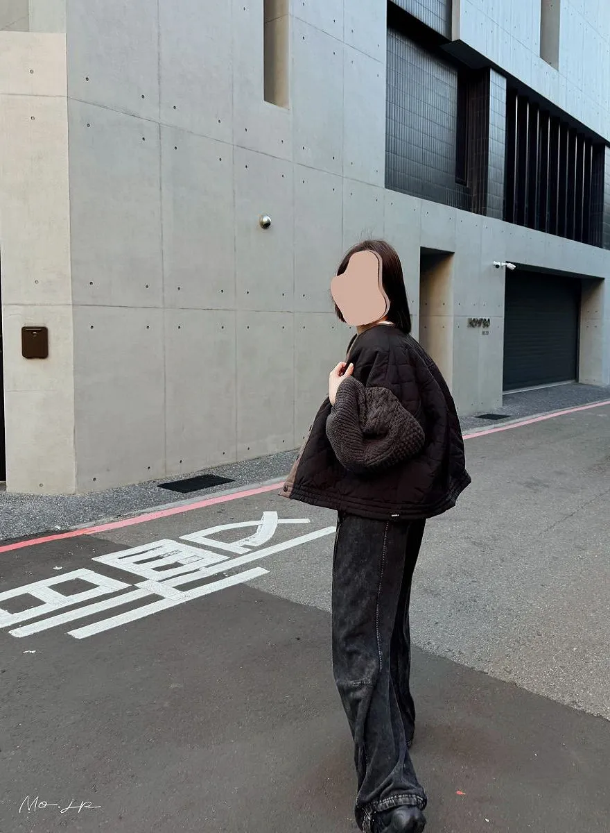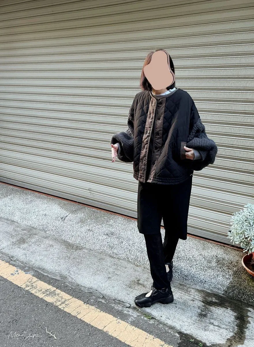 厚實手勾麻花針織拼接立體立體絎縫大衣